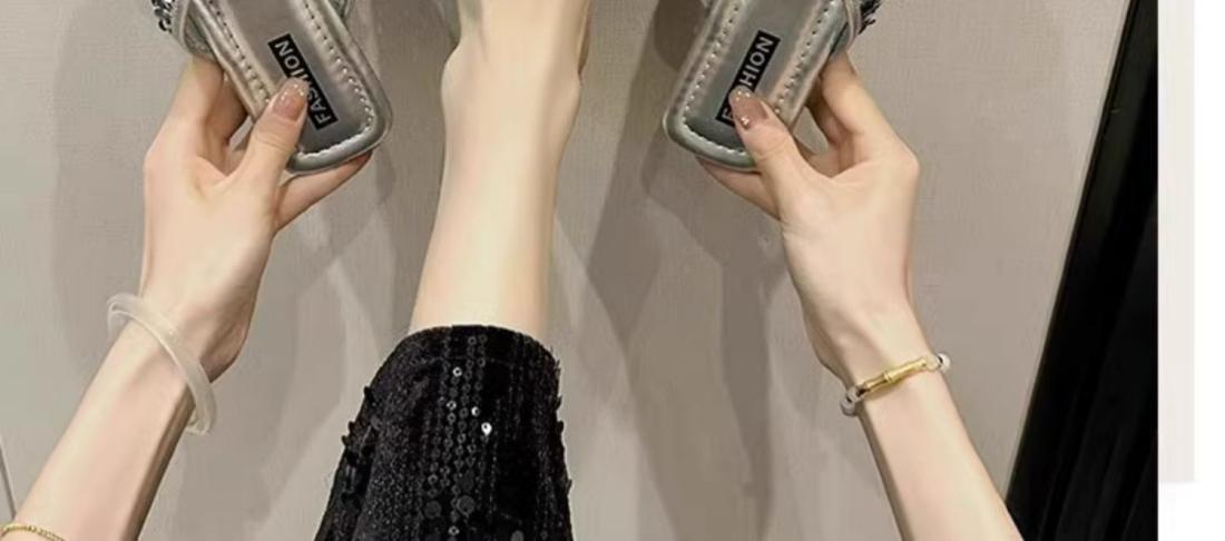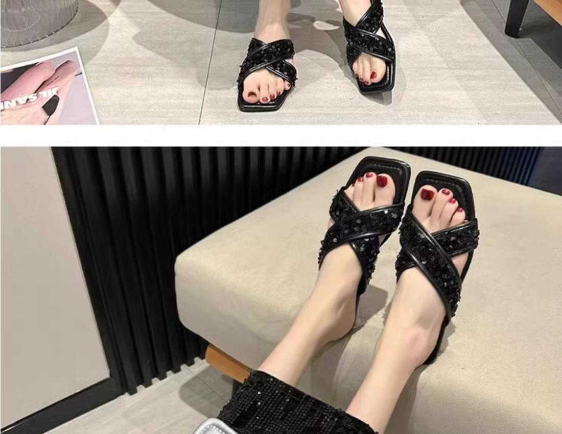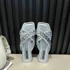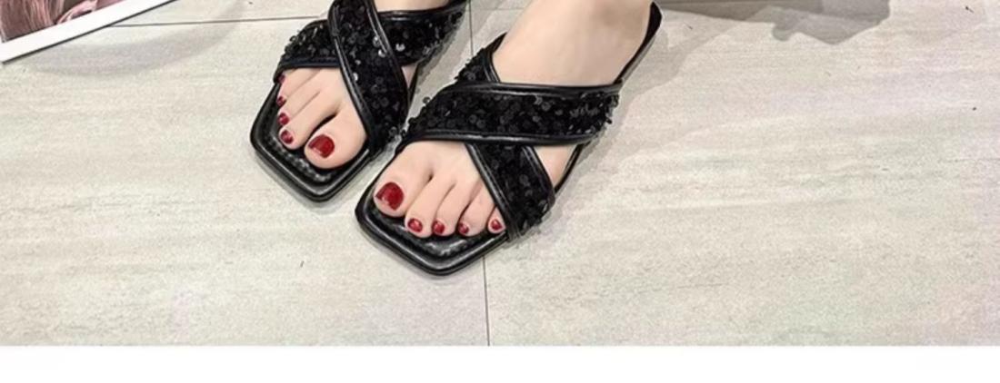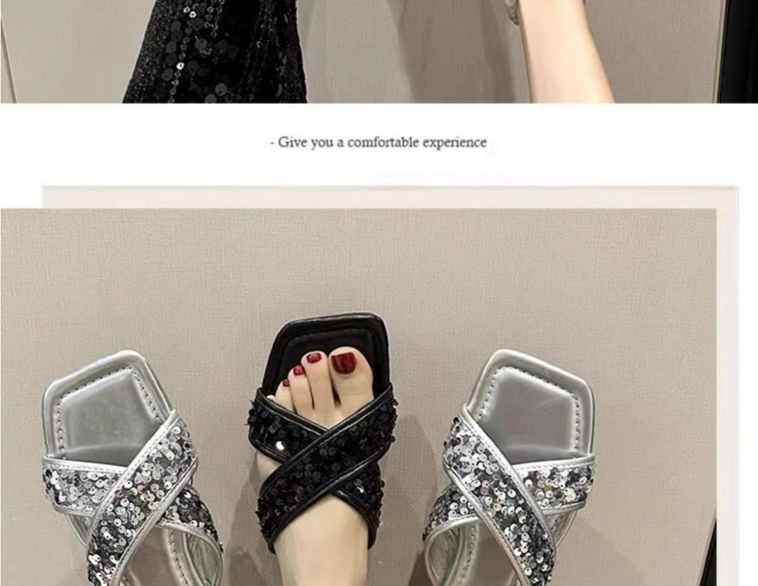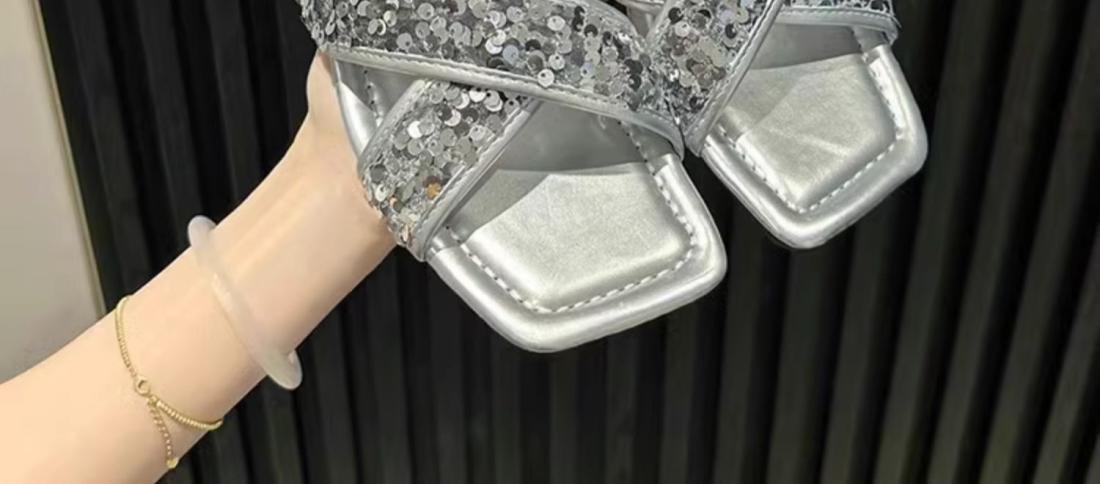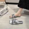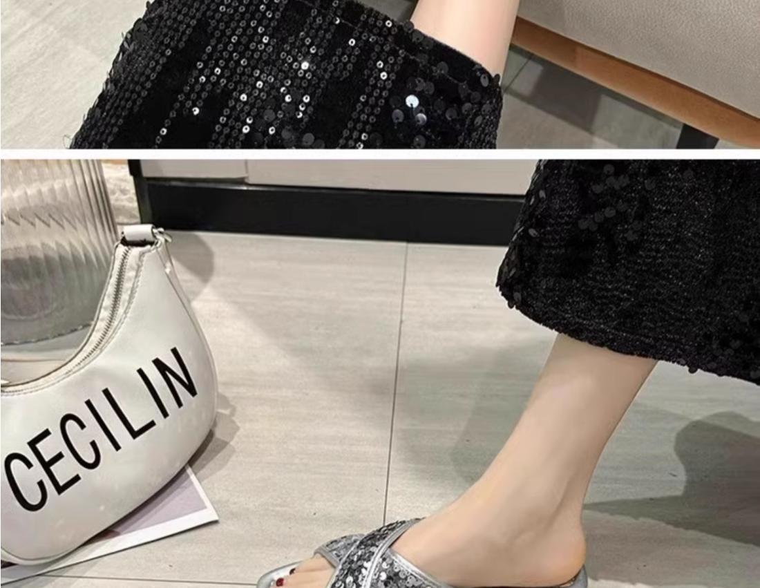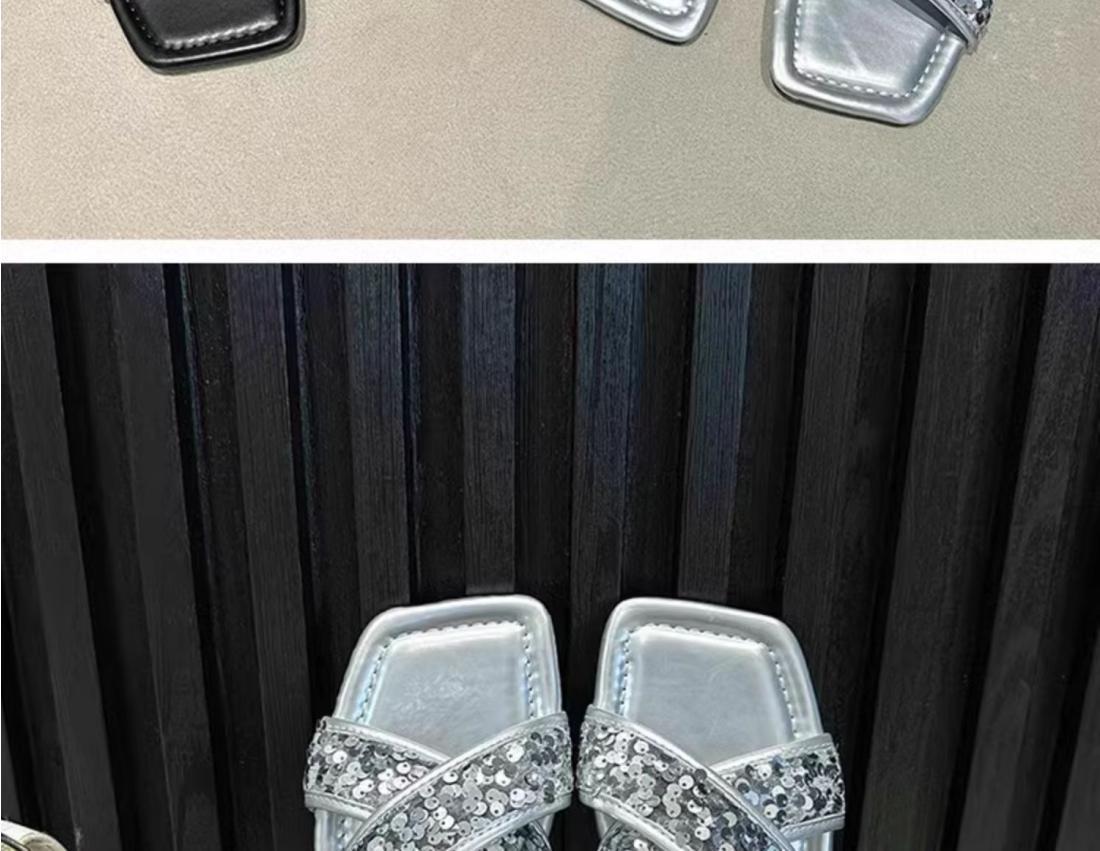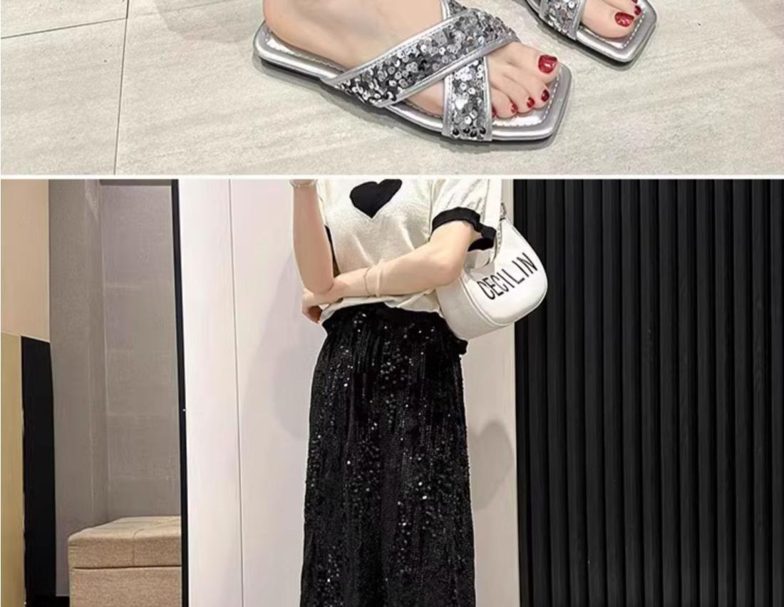 Pantuflas Cruzadas de Estilo Francés para Mujer 2025 Nuevas Verano Exterior Lentejuelas Slip-On Planas Sandalias de Playa