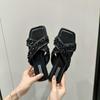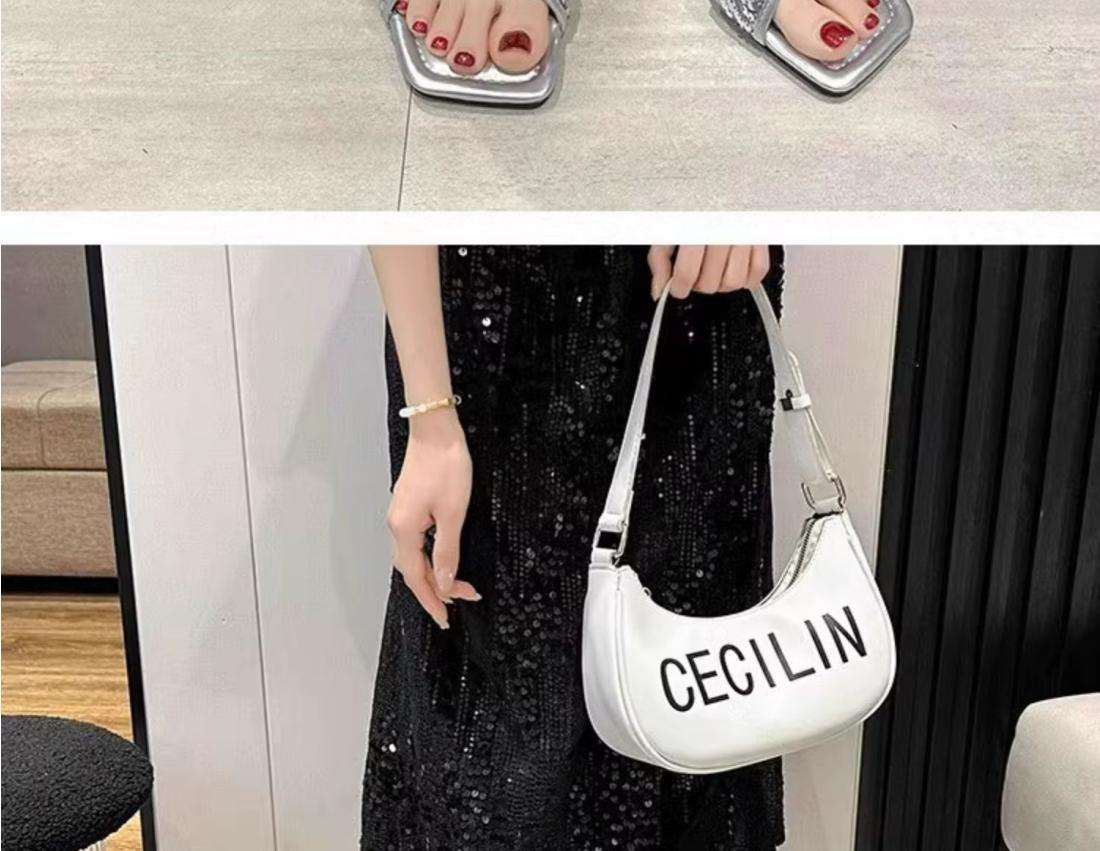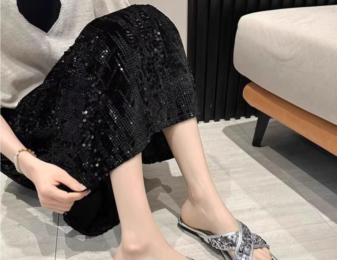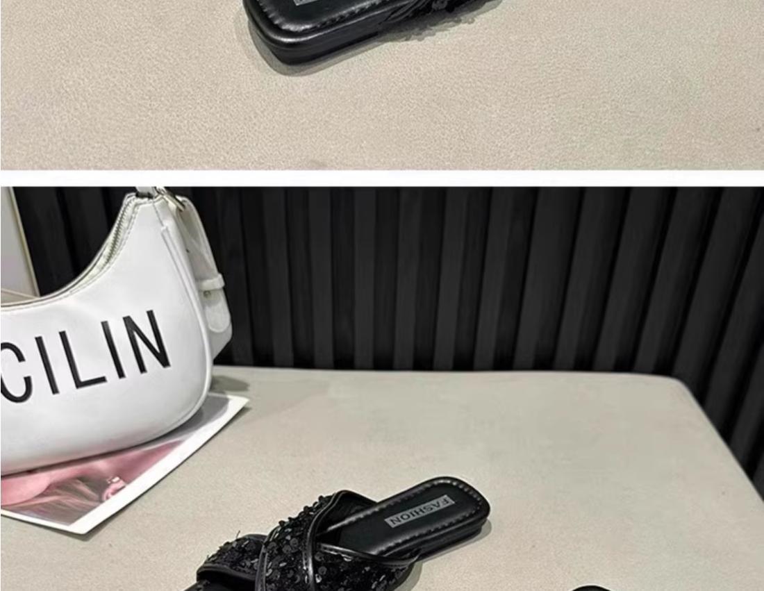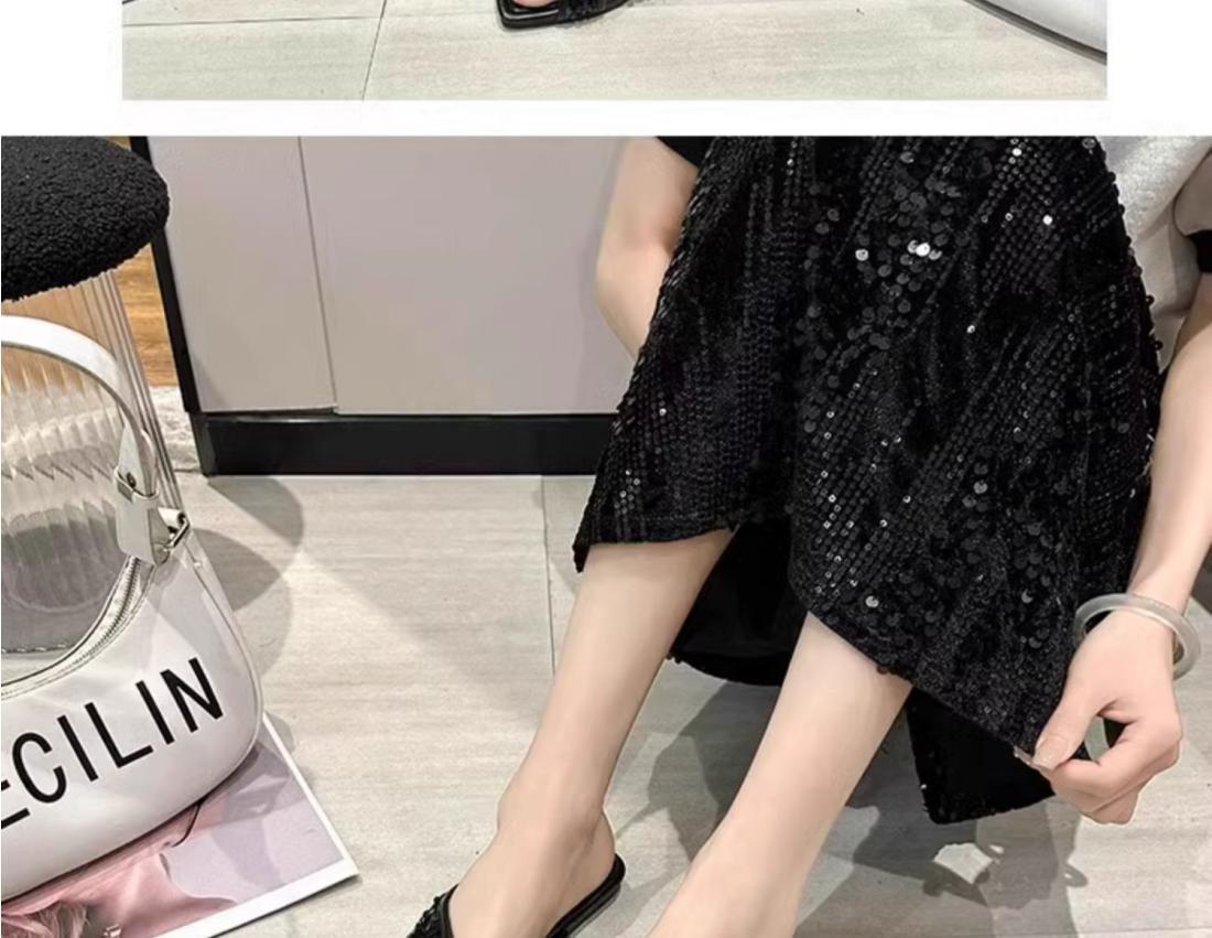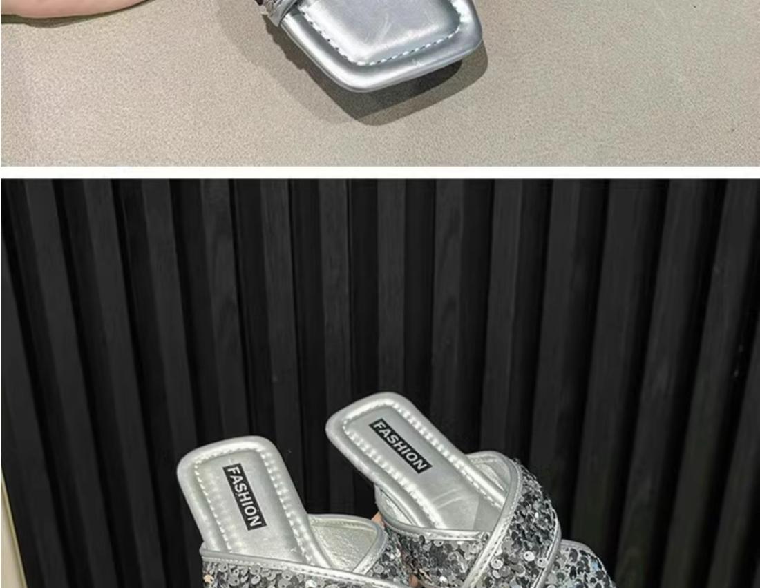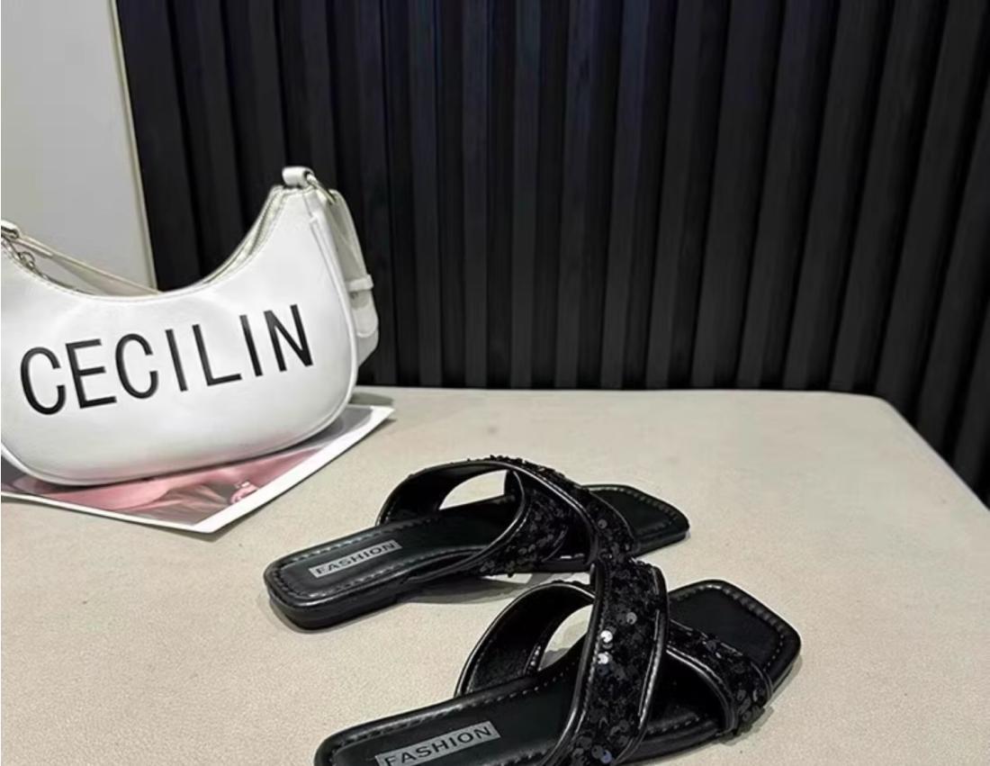 Pantuflas Cruzadas de Estilo Francés para Mujer 2025 Nuevas Verano Exterior Lentejuelas Slip-On Planas Sandalias de Playa