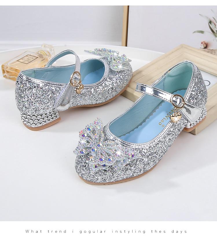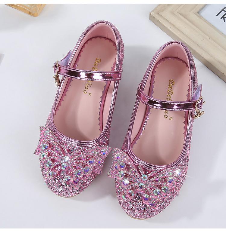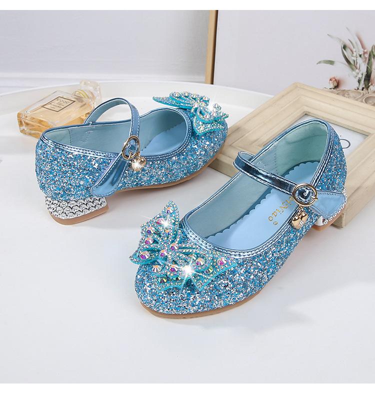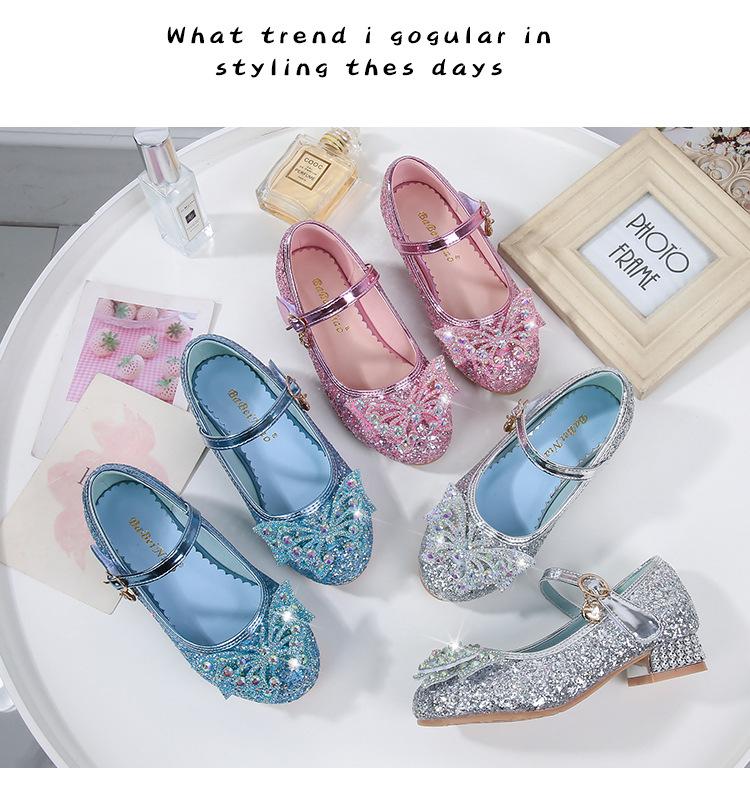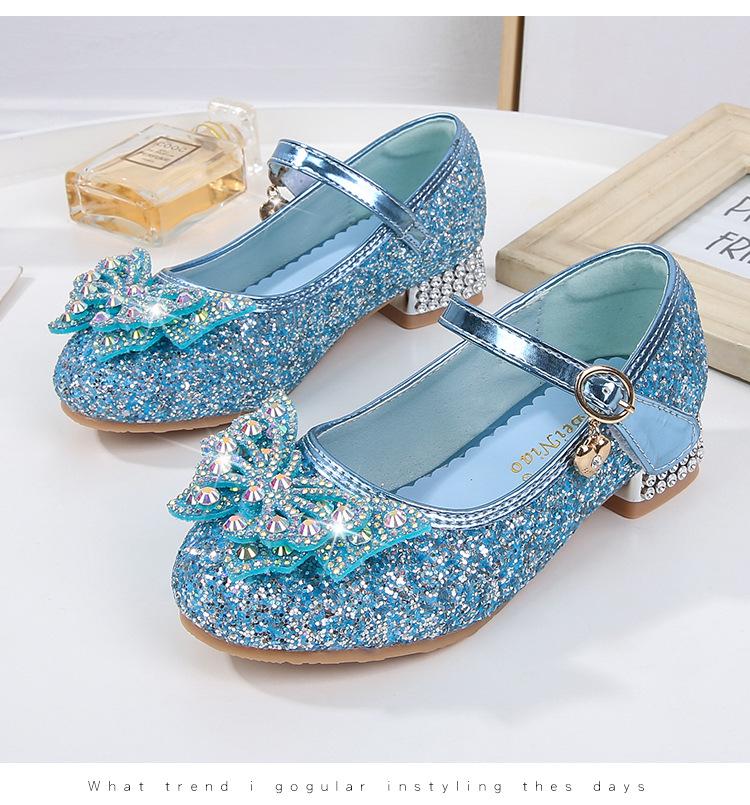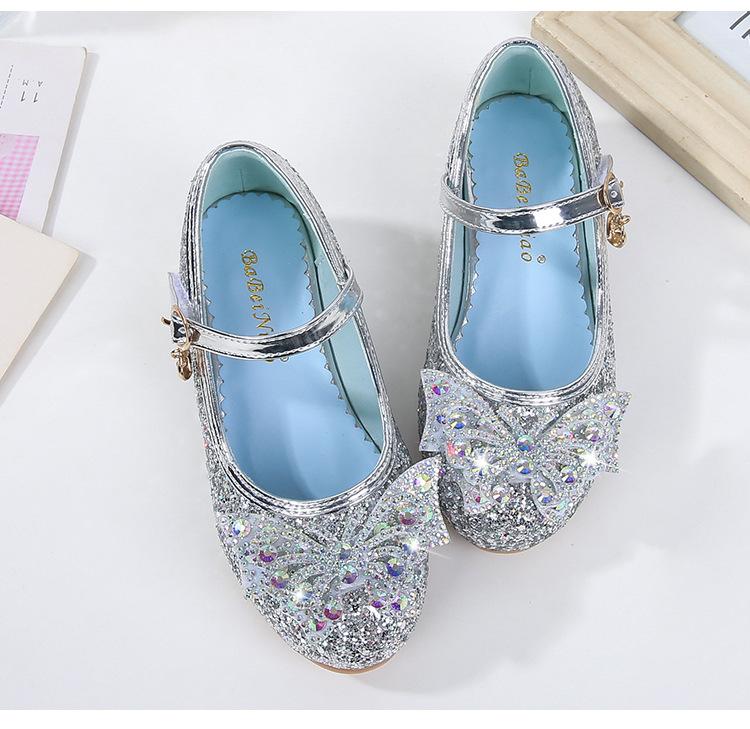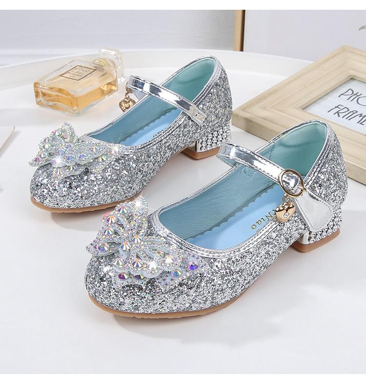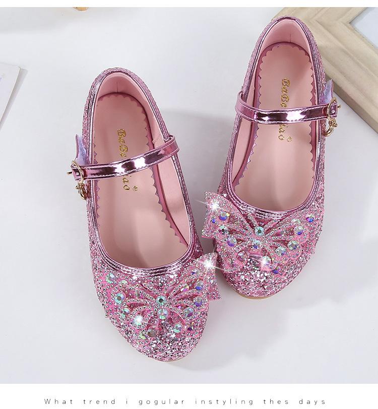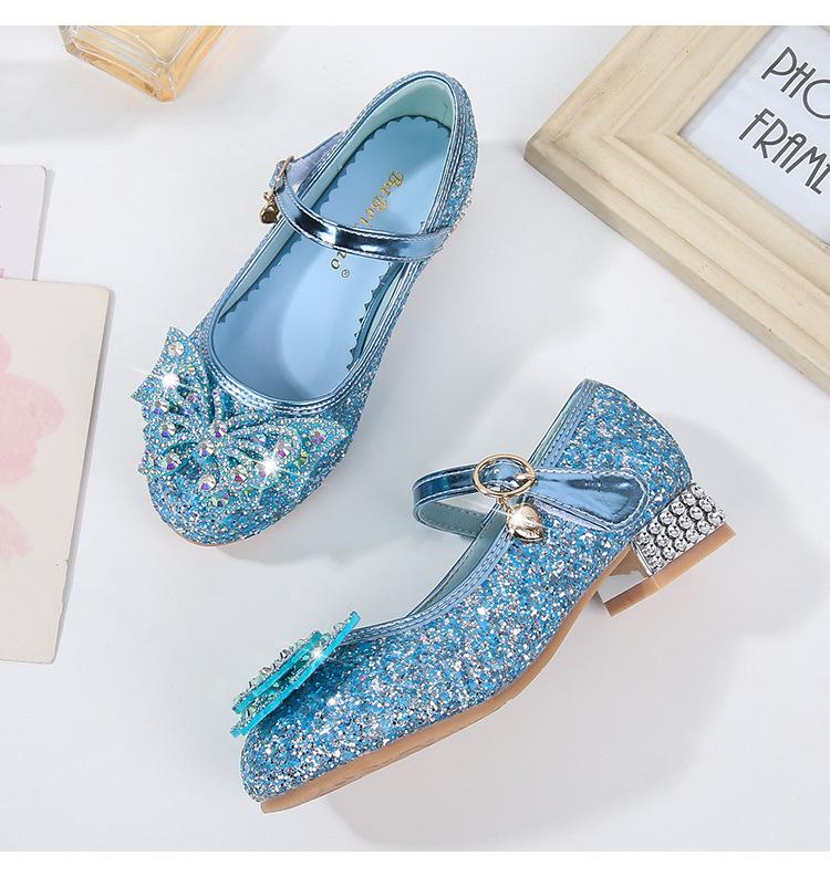 Suministro directo de fábrica de nuevos zapatos de cuero para niñas, zapatos de princesa con dibujos de copos de nieve, zapatos para niños con lentejuelas de cristal, zapatos para niños