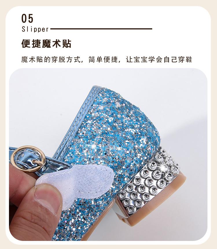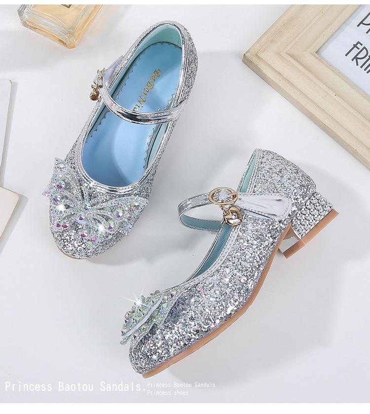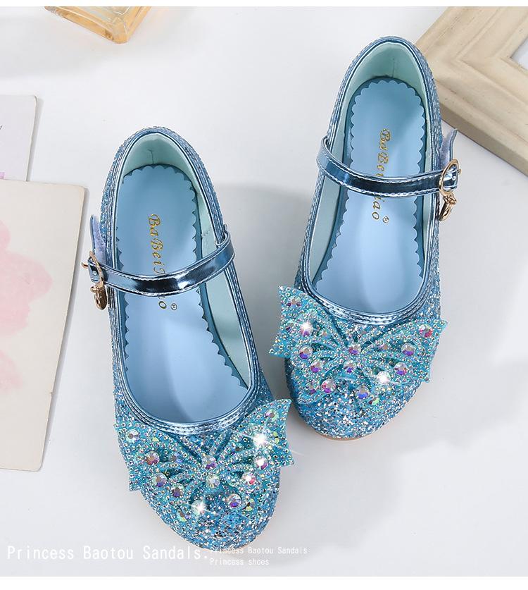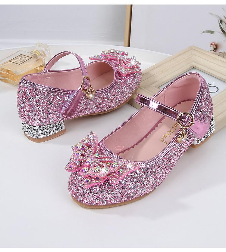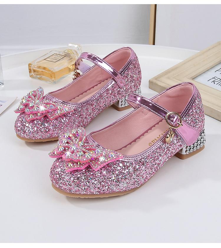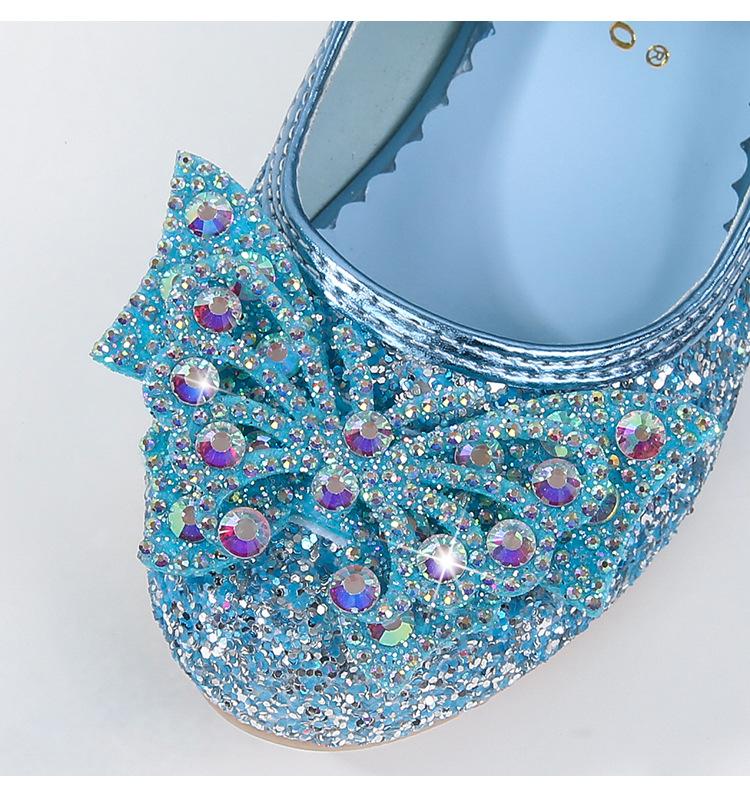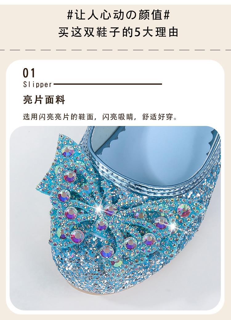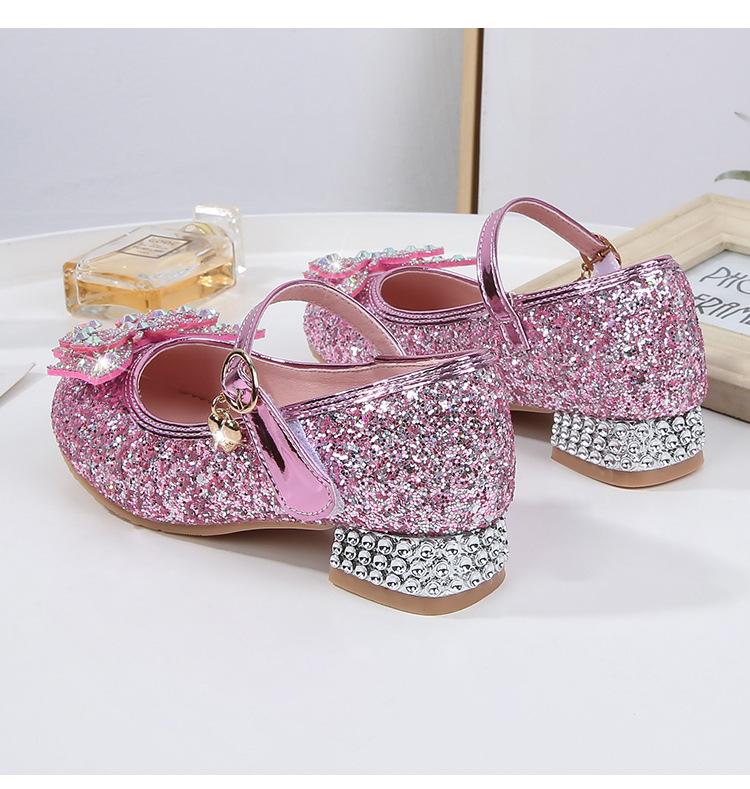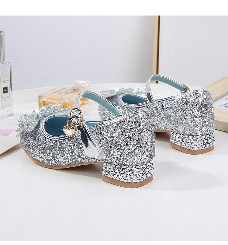 Suministro directo de fábrica de nuevos zapatos de cuero para niñas, zapatos de princesa con dibujos de copos de nieve, zapatos para niños con lentejuelas de cristal, zapatos para niños