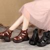 Nuevas sandalias de cuña de cuero suave de estilo étnico retro de primavera y verano, sandalias de mujer con plataforma impermeable, tacón alto, sandalias romanas con punta abierta