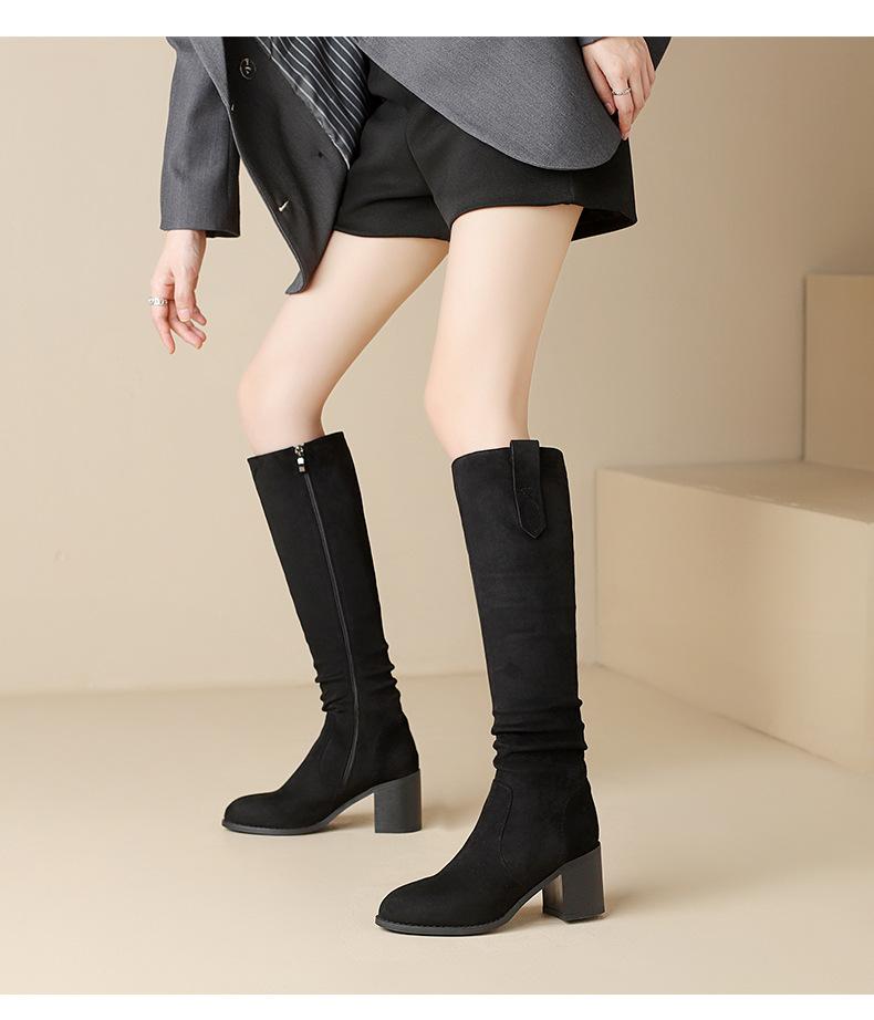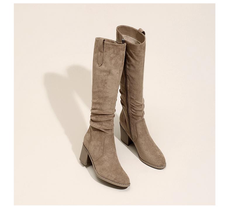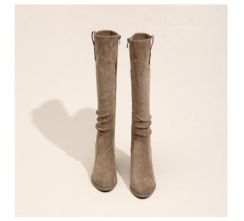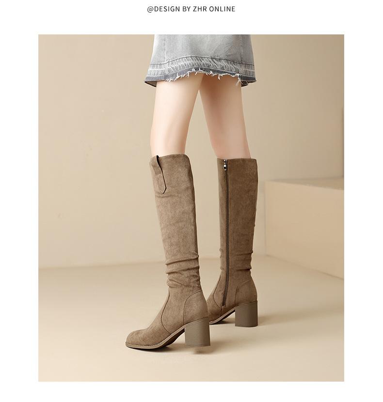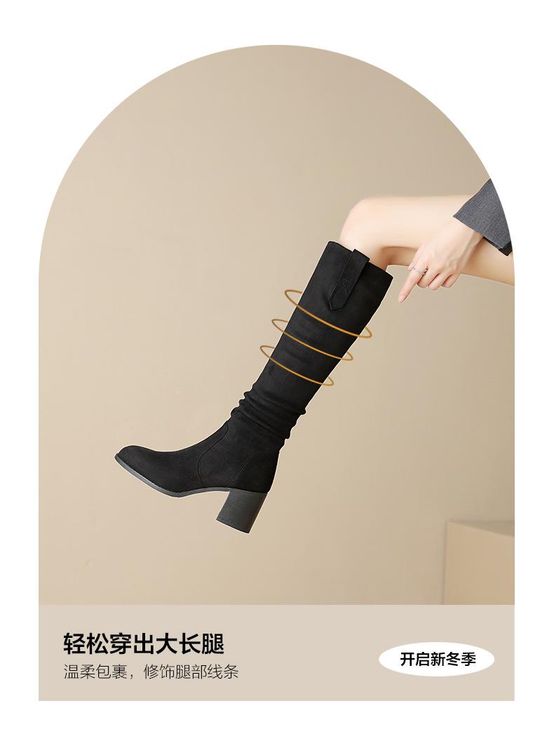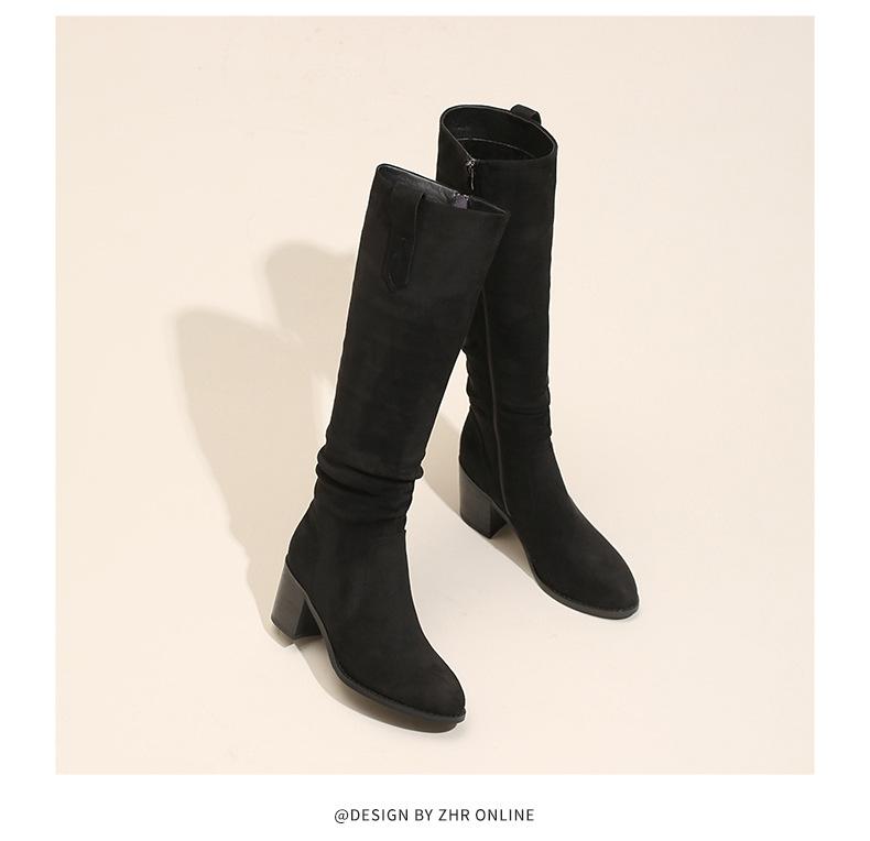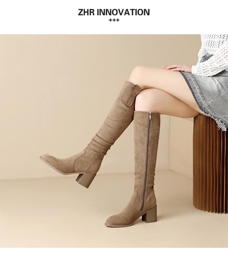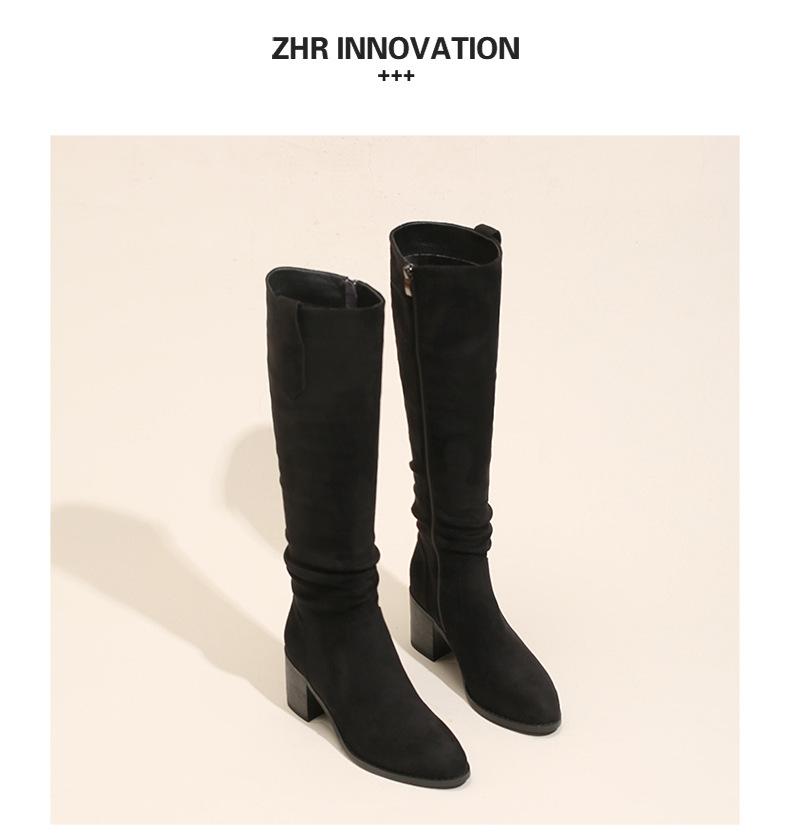 Botas largas ZHR para mujer 2023 otoño e invierno nuevas casuales versátiles modernas retro puntiagudas de gamuza botas de moda para mujer