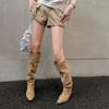 Comercio Exterior Amazon Moda Europea y Americana Otoño e Invierno Botas de Gamuza Adelgazantes Botas para Mujer Tacón Alto Grueso Cremallera Caña Alta Sobre la Rodilla