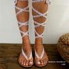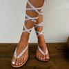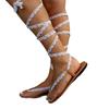 Deseo Sandalias planas con cordones y correa al tobillo de comercio exterior europeo y americano para mujer, chanclas de exterior ligeras para playa, ebay