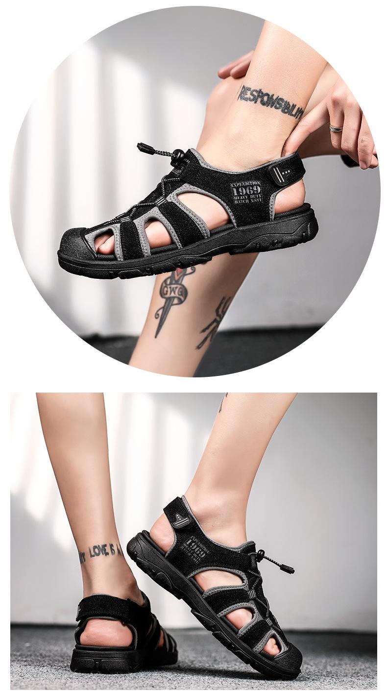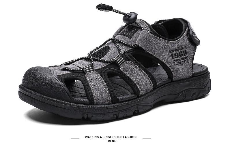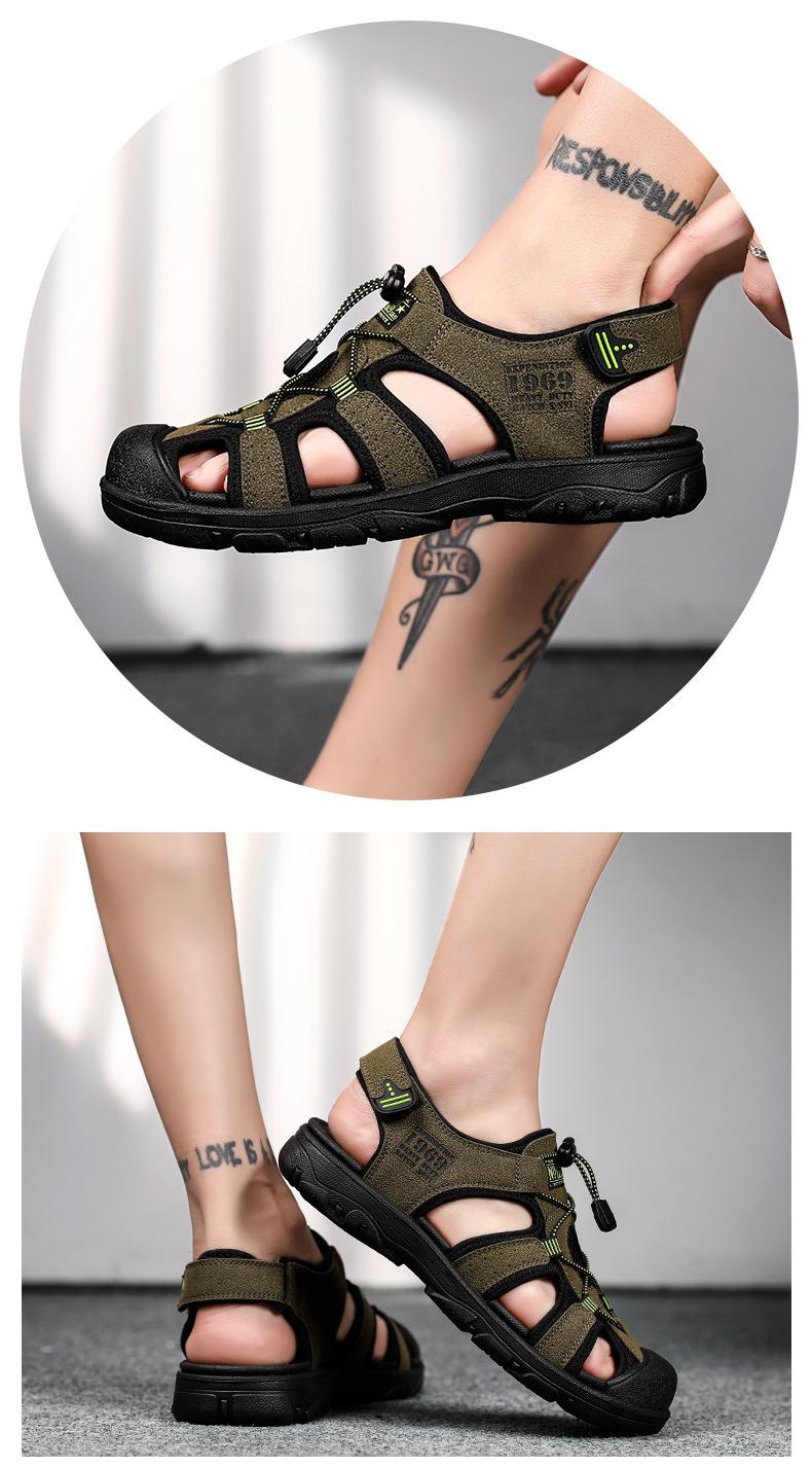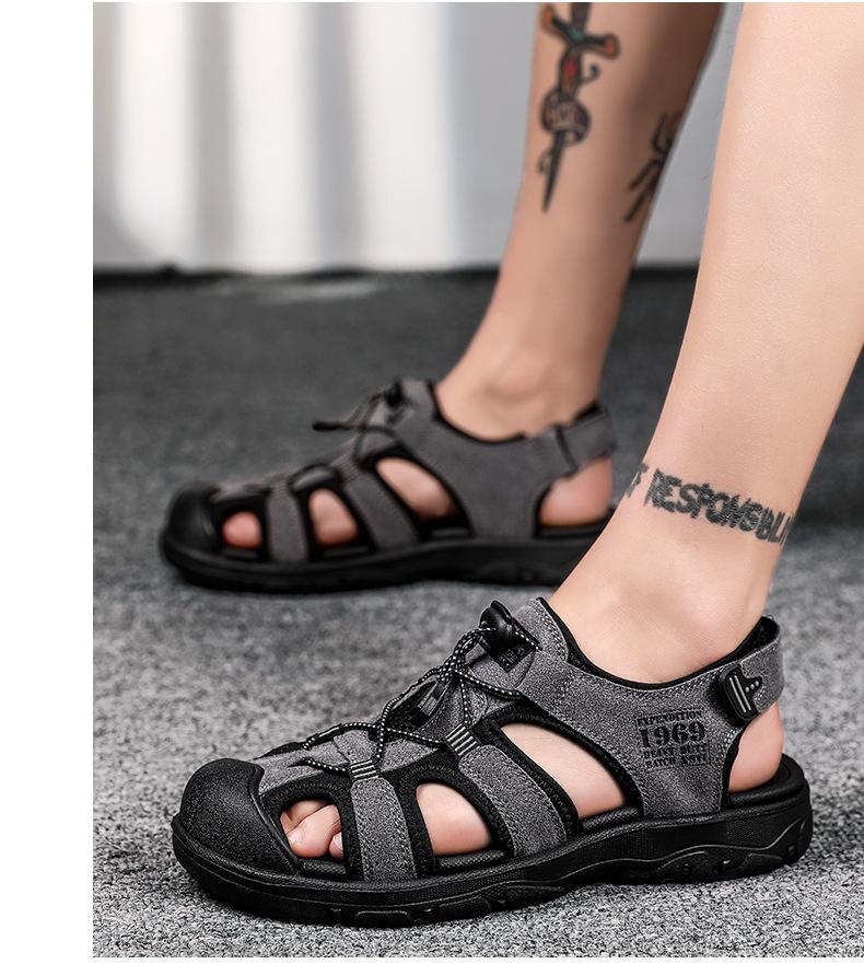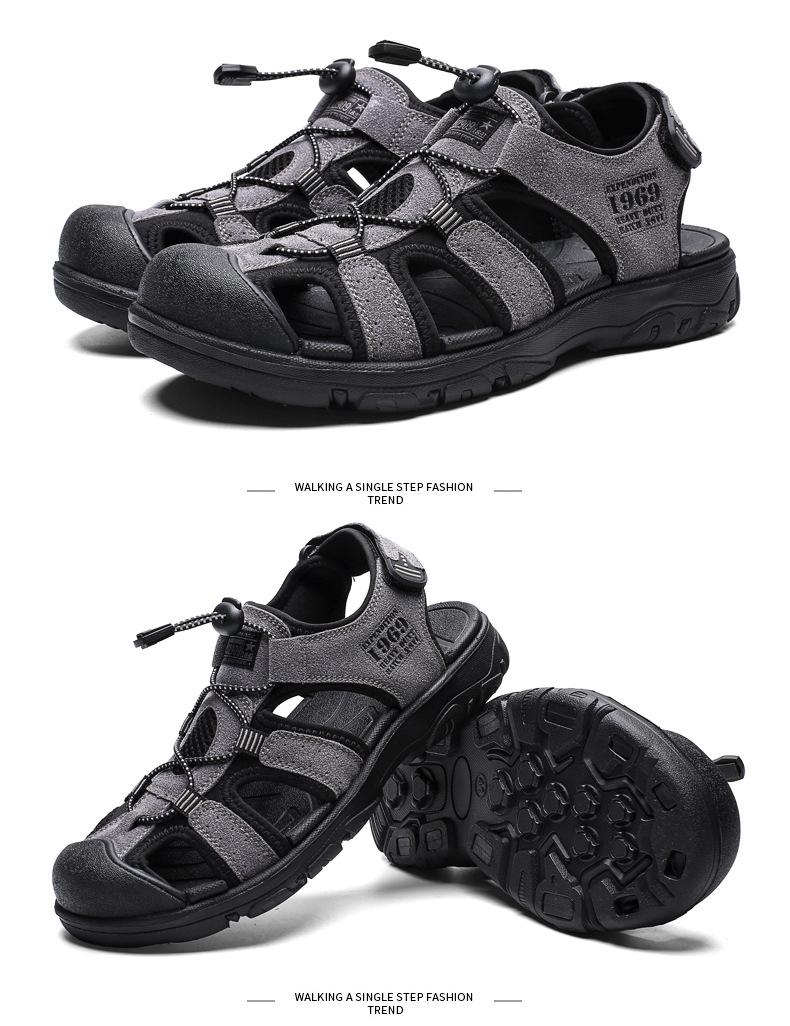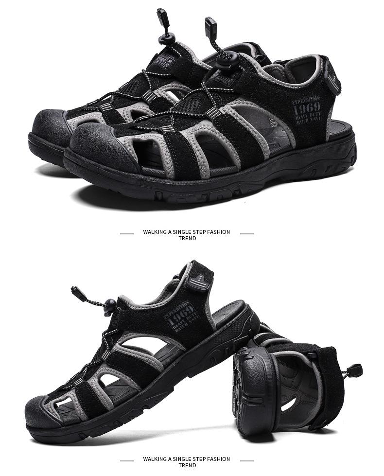 2024 Nuevos Zapatos de Playa para Montañismo al Aire Libre para Hombre Sandalias Casuales Suaves de Suela Gruesa Antideslizantes Sandalias Baotou de Cuero Genuino para Cabello