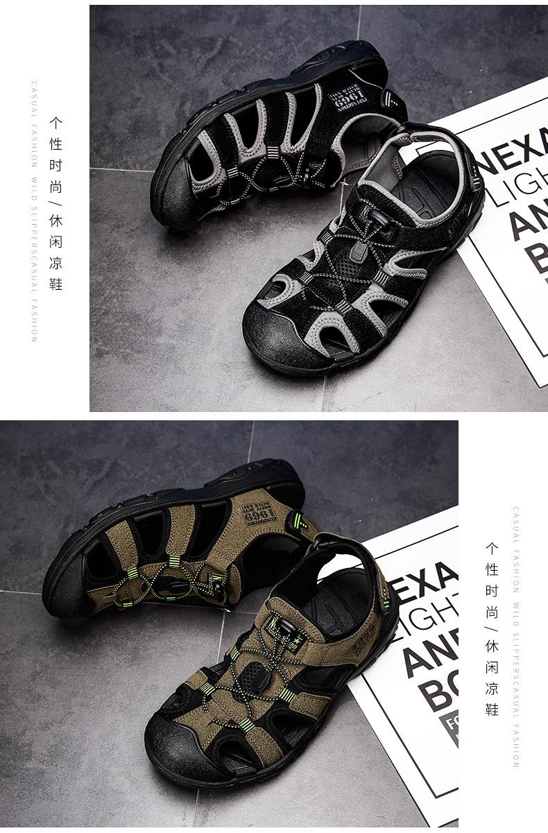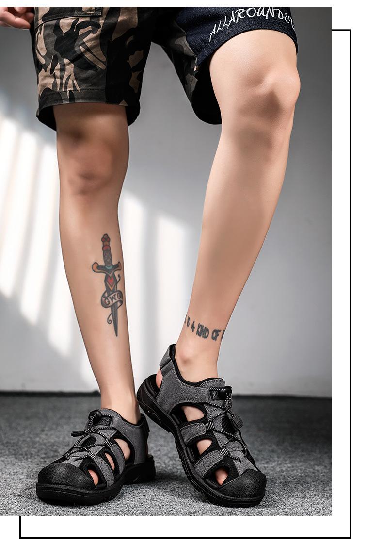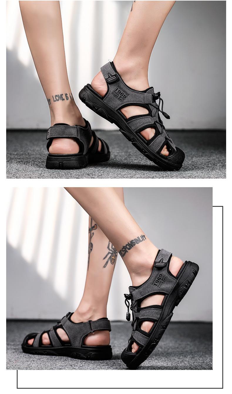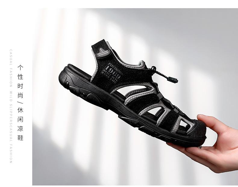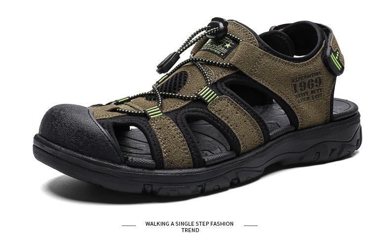 2024 Nuevos Zapatos de Playa para Montañismo al Aire Libre para Hombre Sandalias Casuales Suaves de Suela Gruesa Antideslizantes Sandalias Baotou de Cuero Genuino para Cabello