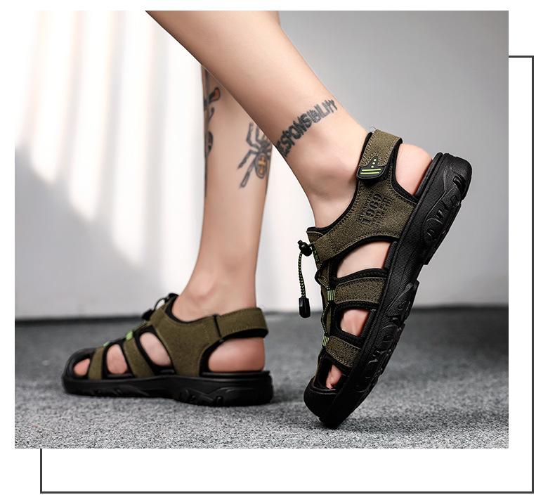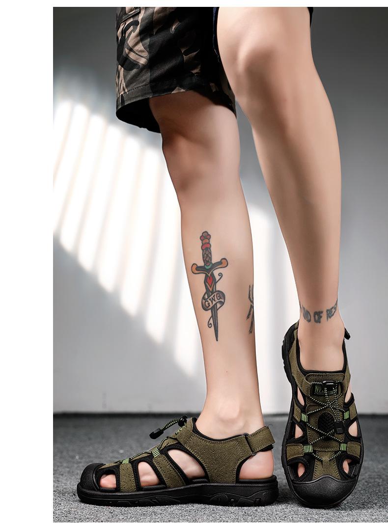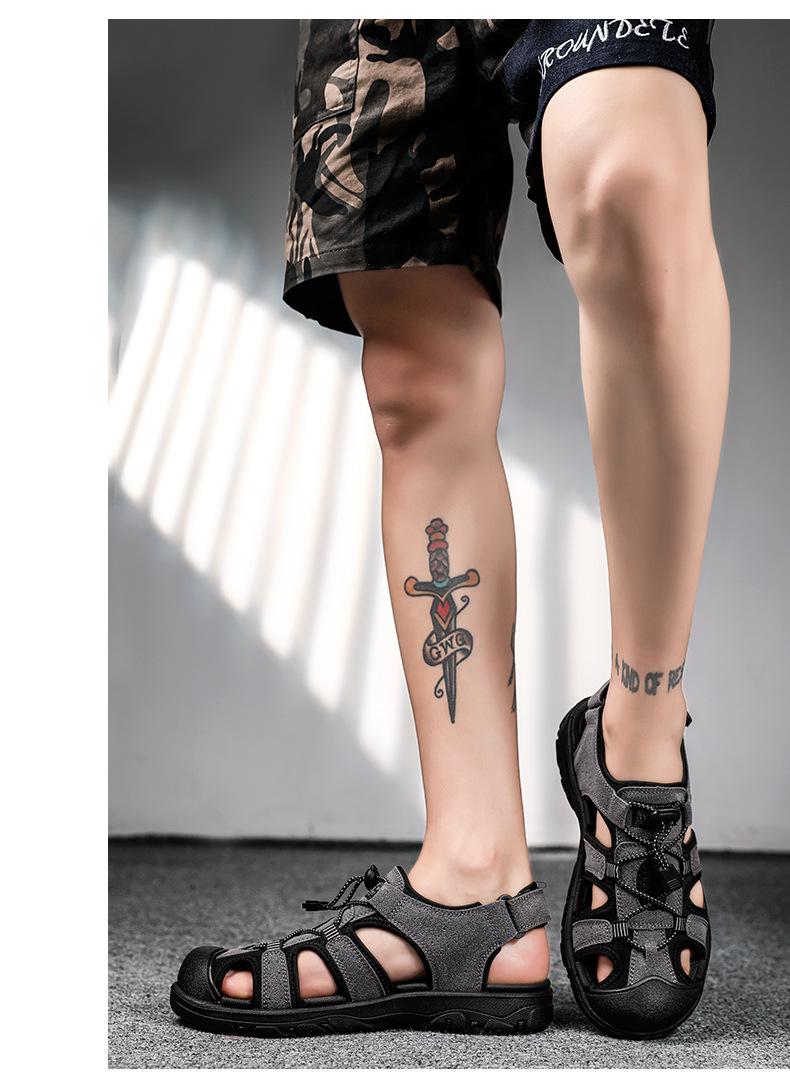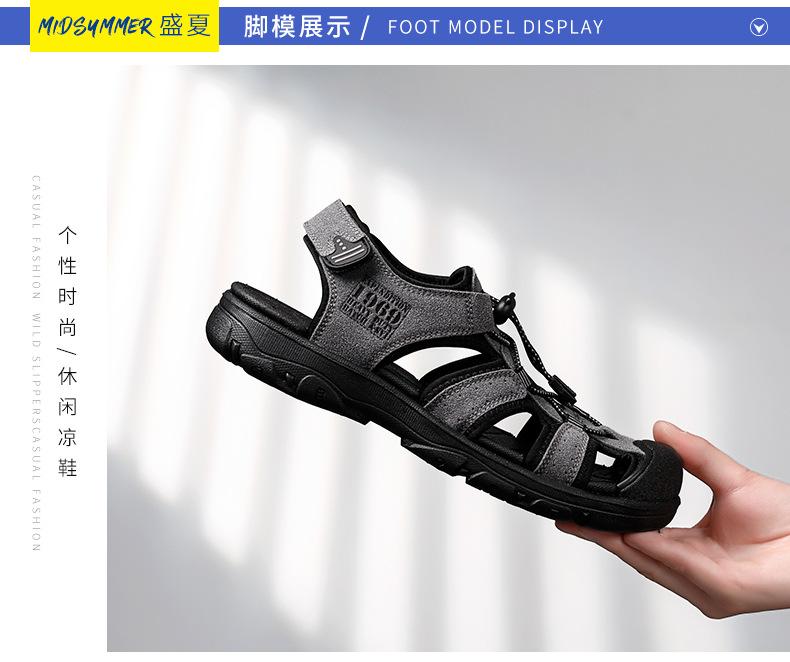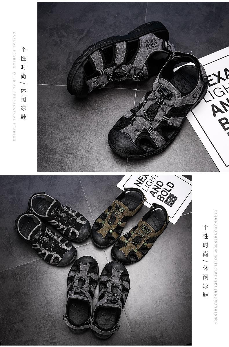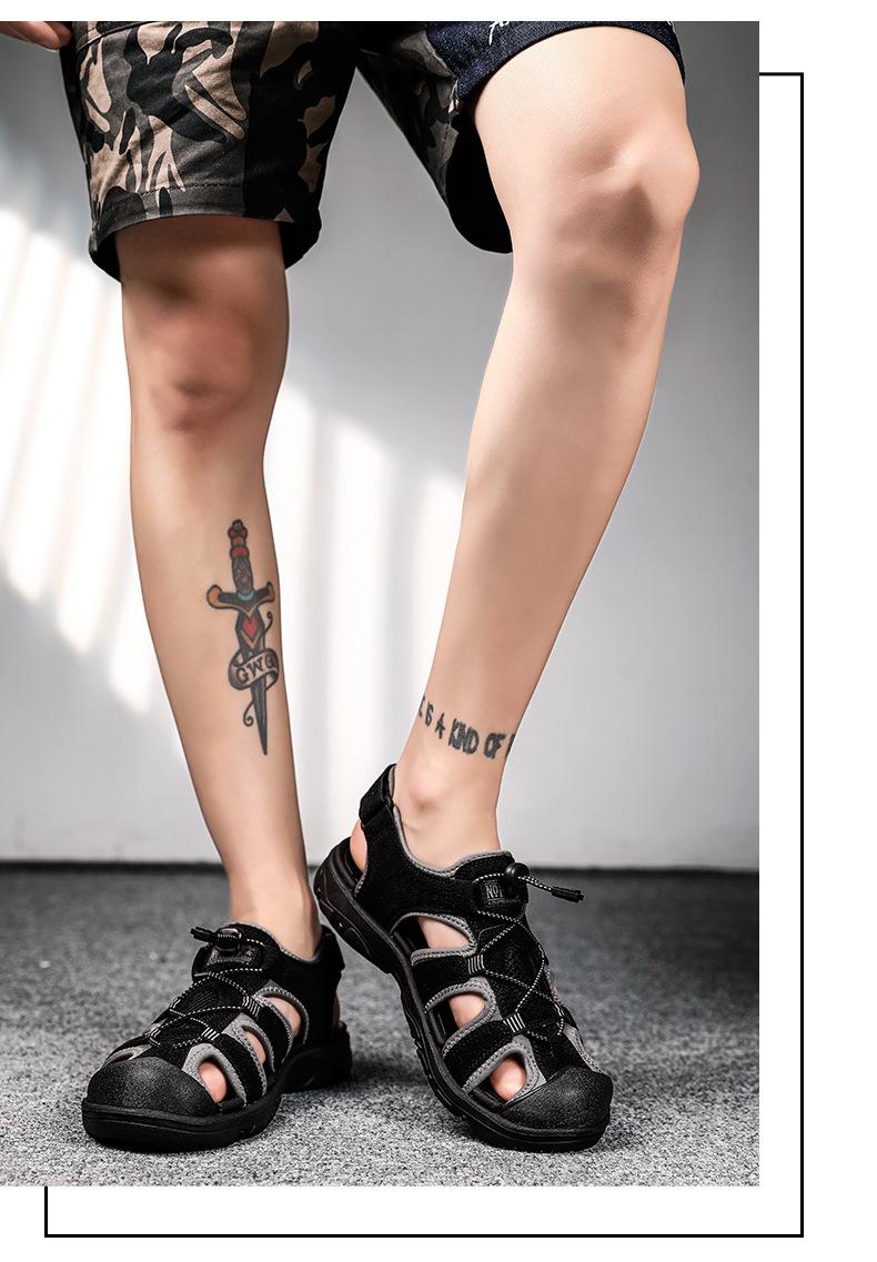 2024 Nuevos Zapatos de Playa para Montañismo al Aire Libre para Hombre Sandalias Casuales Suaves de Suela Gruesa Antideslizantes Sandalias Baotou de Cuero Genuino para Cabello
