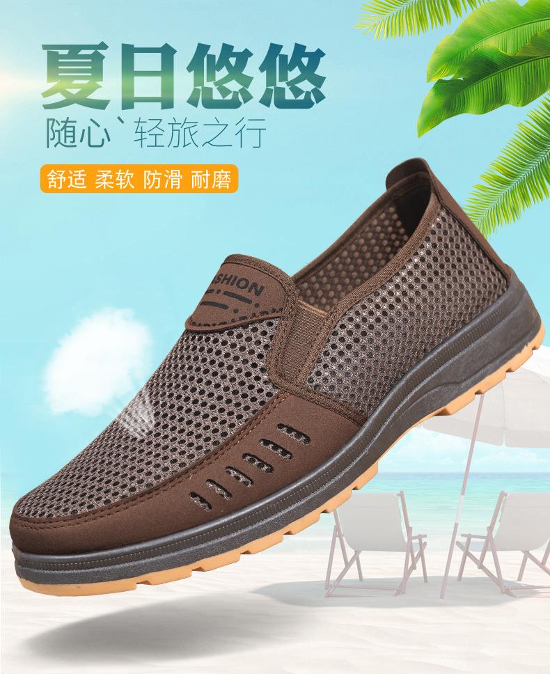 Zapatos de hombre de talla grande de comercio exterior, zapatos de verano de tela antigua de Beijing para hombre, zapatos casuales transpirables para papá, zapatos de hombre mayor, zapatos de malla sin cordones