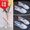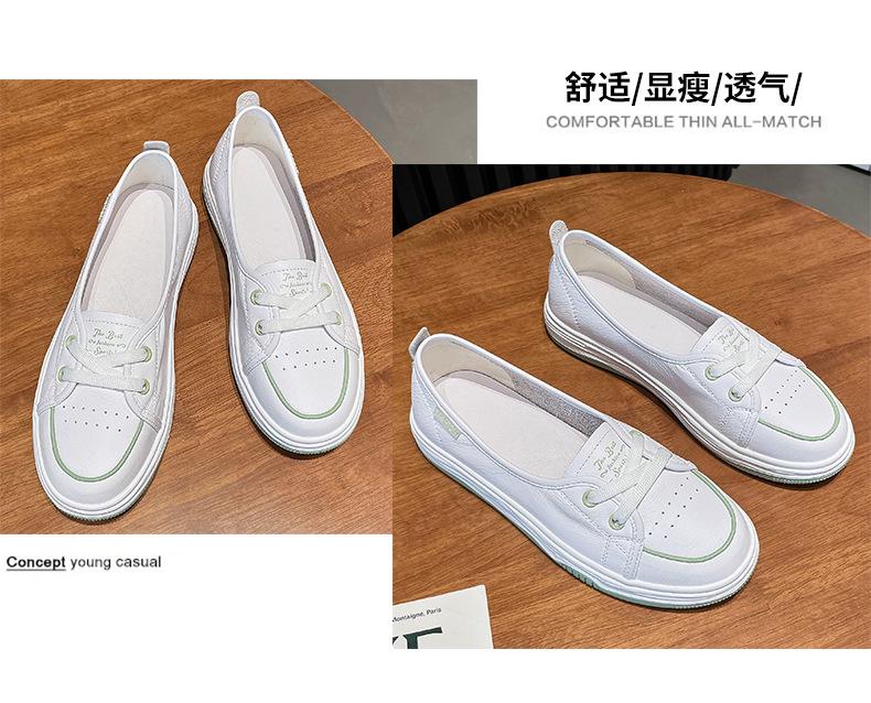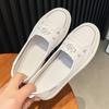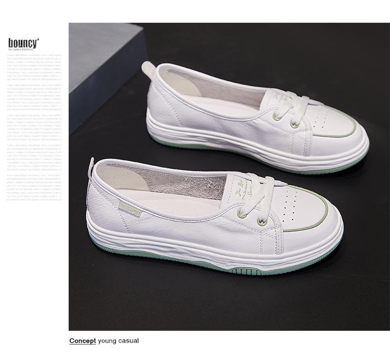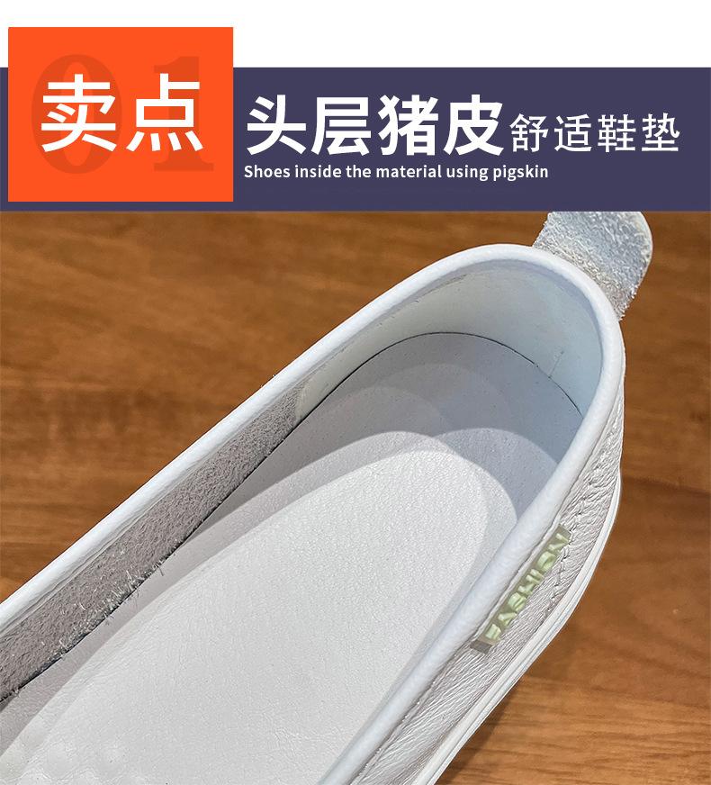 Zapatos Blancos de Cuero Genuino de Boca Baja de Piel de Vaca de Primera Capa para Mujer Verano Transpirables 2025 Nuevos Zapatos Casuales de Mujer Bailarinas Bailarinas Delgadas para Mujer