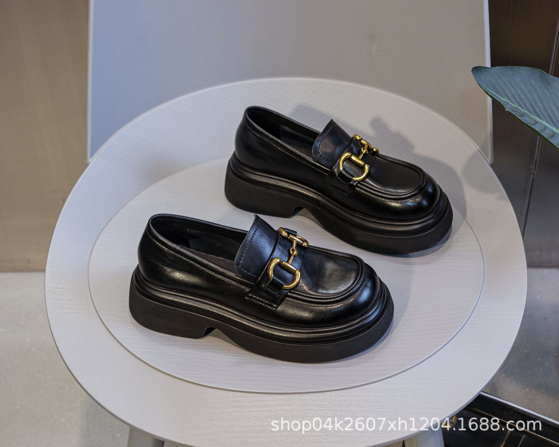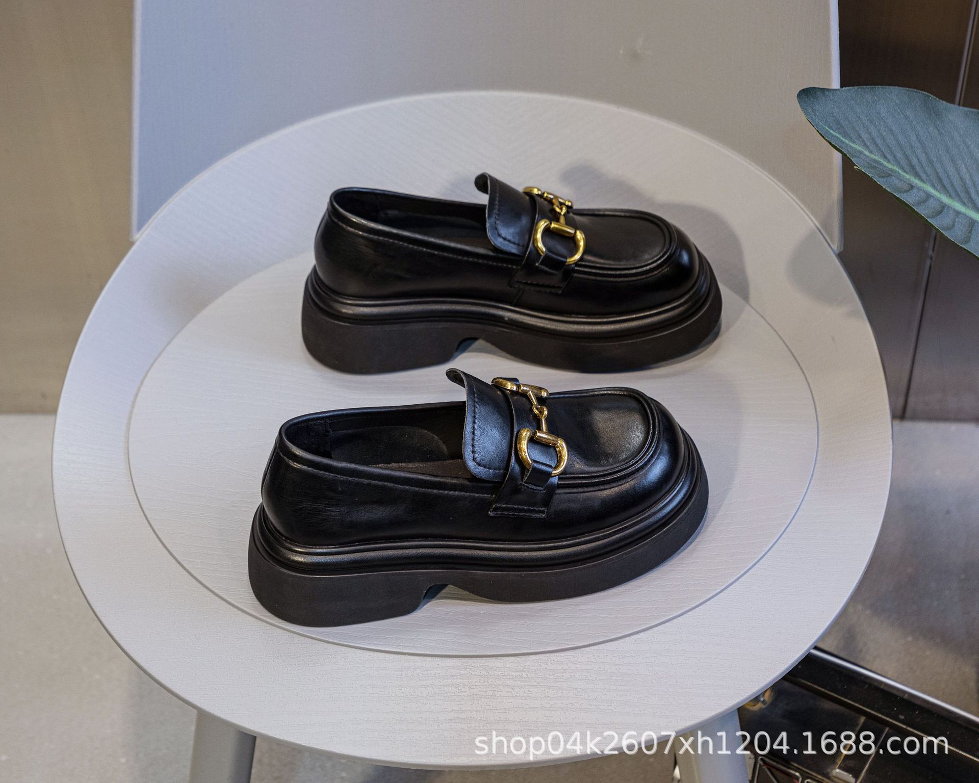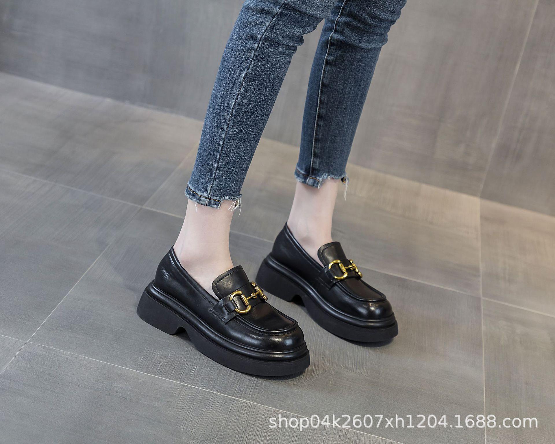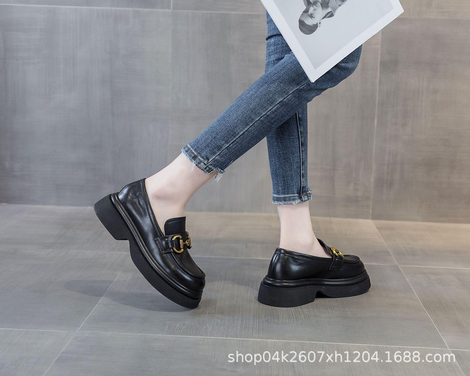 Mocasines para Mujer Verano 2025 Nuevos Verano Suela Gruesa Estilo Británico Zapatos de Cuero Pequeños Simples y de Alta Gama Zapatos Versátiles para Mujer