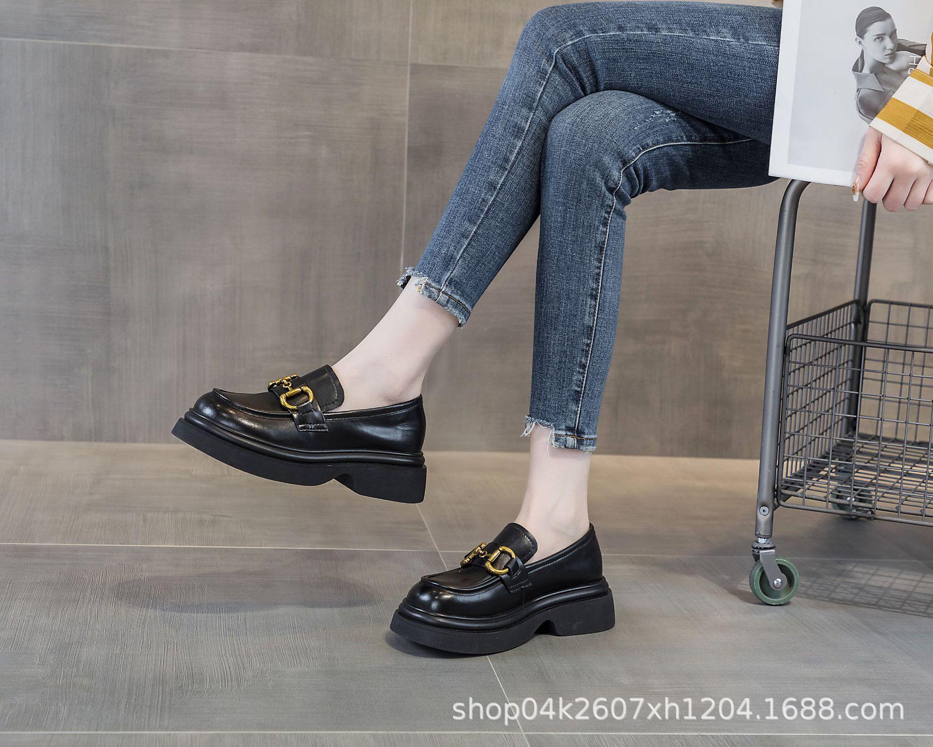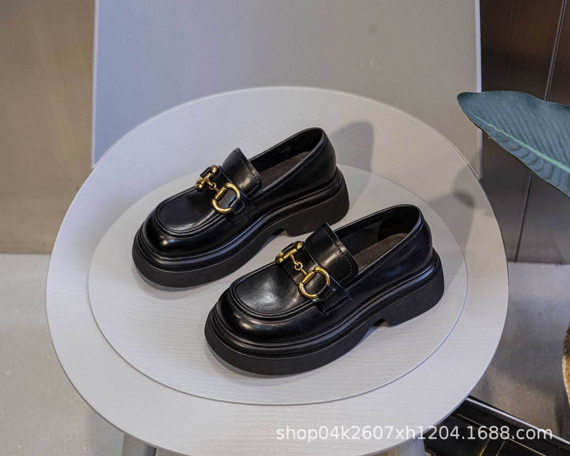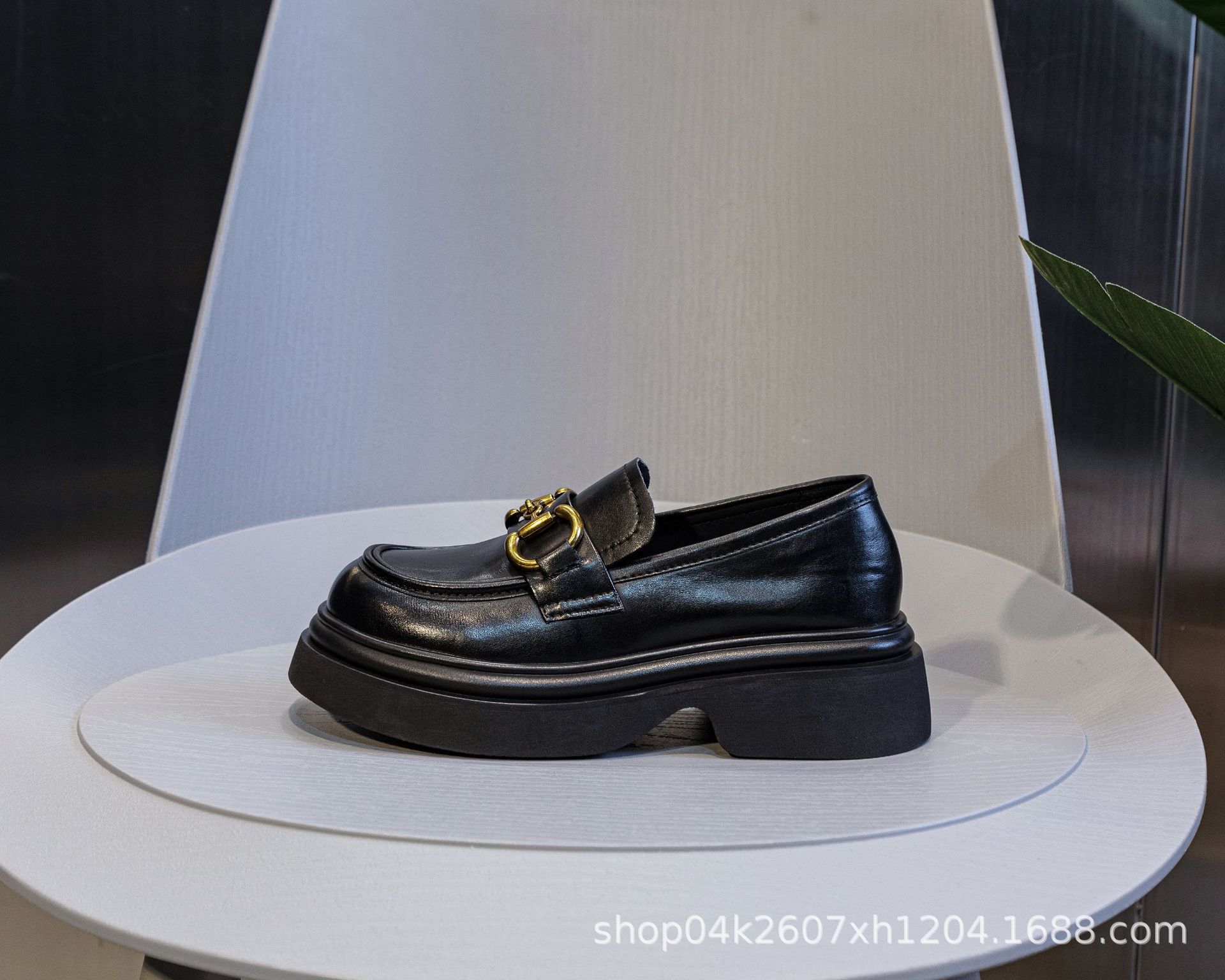 Mocasines para Mujer Verano 2025 Nuevos Verano Suela Gruesa Estilo Británico Zapatos de Cuero Pequeños Simples y de Alta Gama Zapatos Versátiles para Mujer