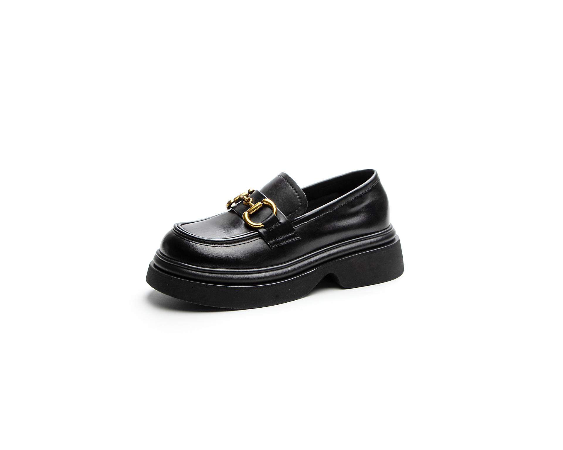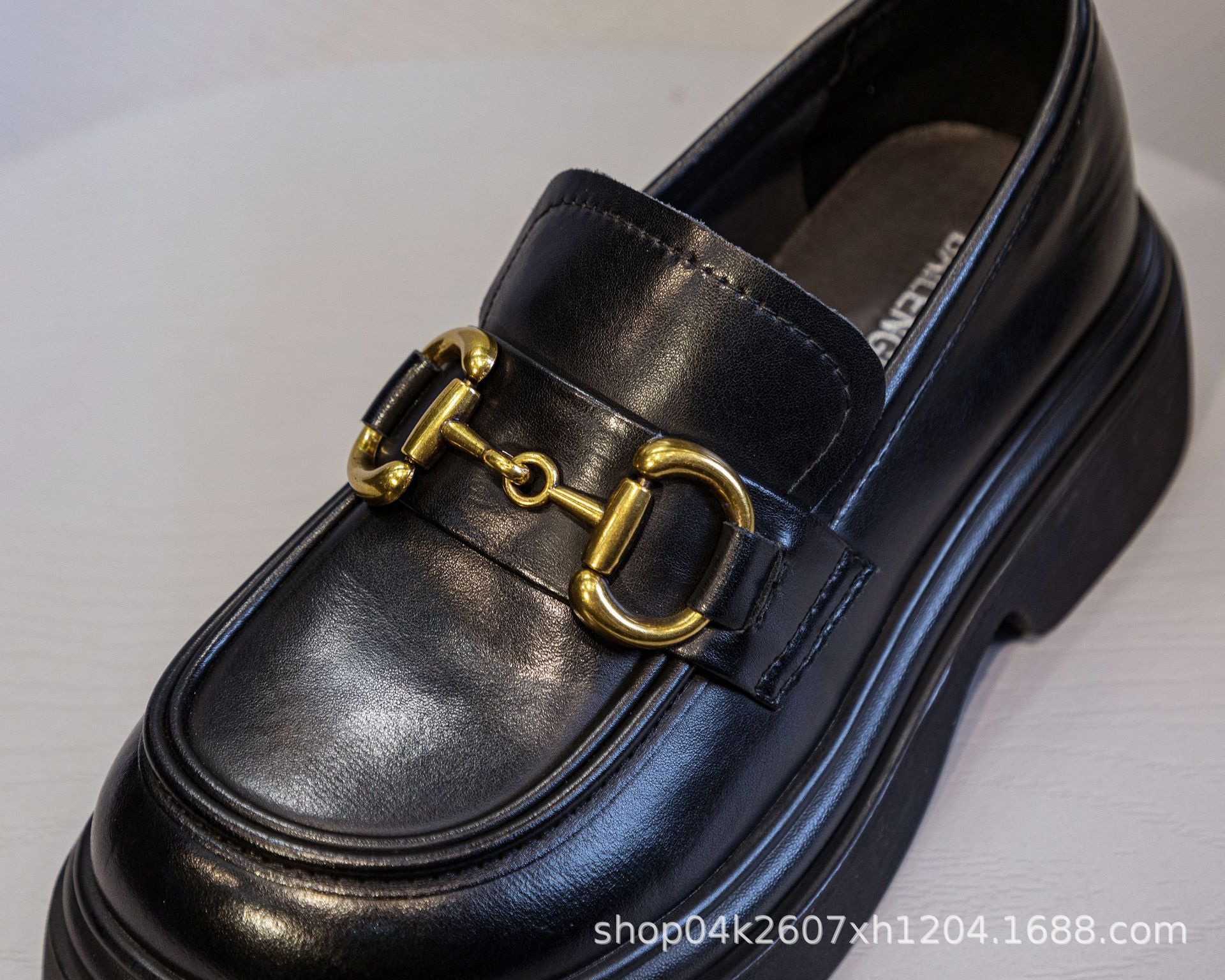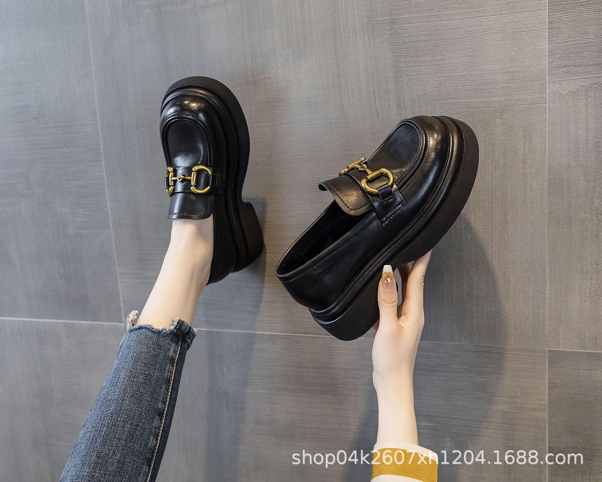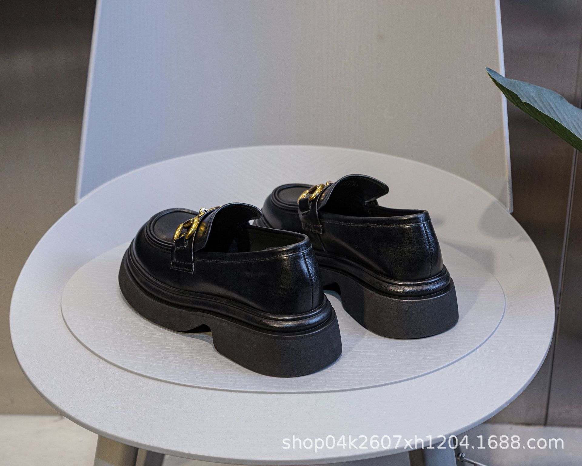 Mocasines para Mujer Verano 2025 Nuevos Verano Suela Gruesa Estilo Británico Zapatos de Cuero Pequeños Simples y de Alta Gama Zapatos Versátiles para Mujer