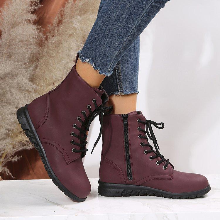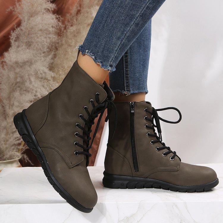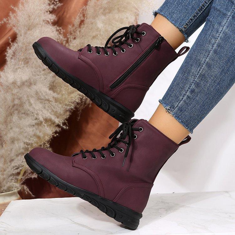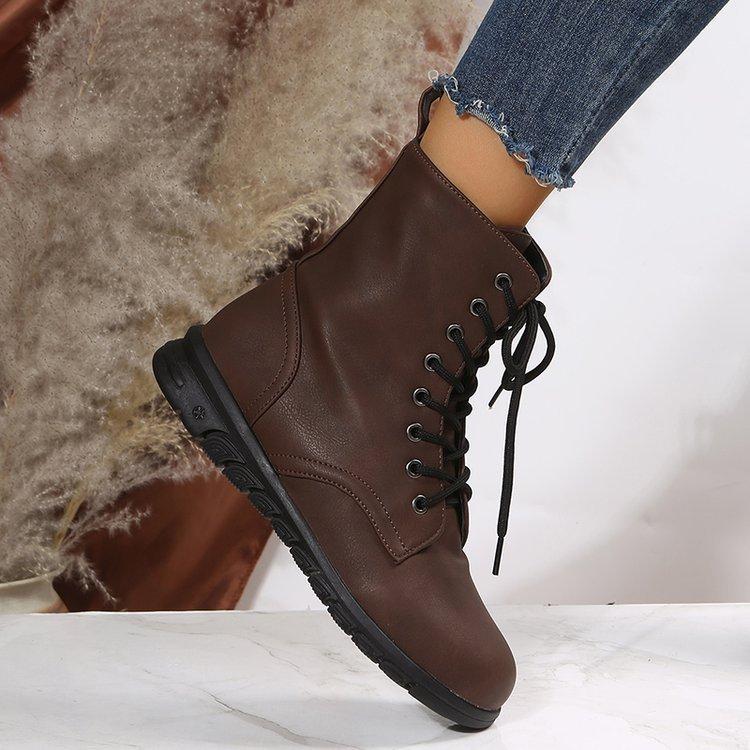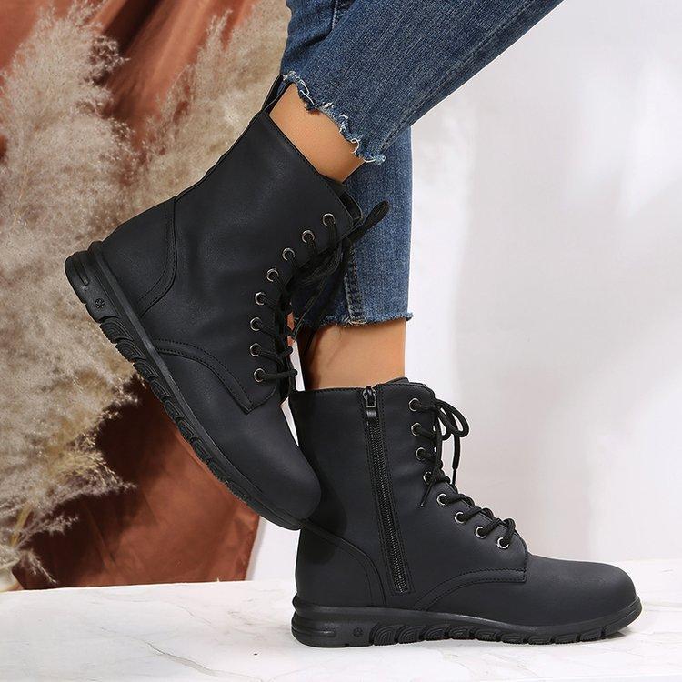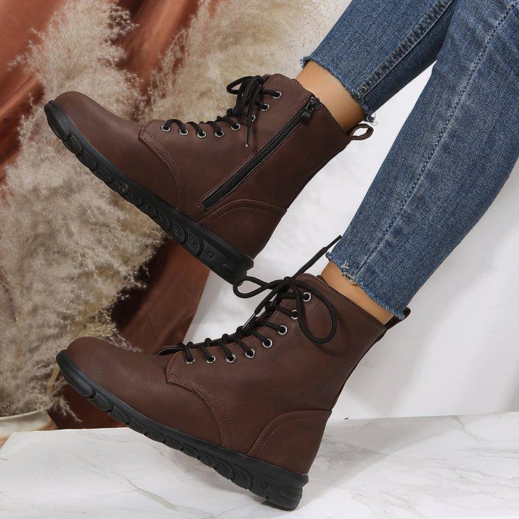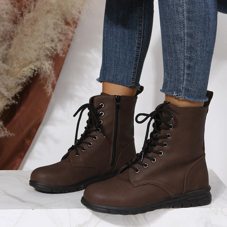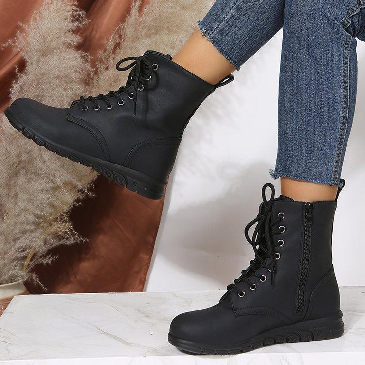 Botas Martin retro de cabeza redonda plana para mujer, de comercio exterior europeo y americano, con cordones delanteros, de color liso, finas, de cuero, talla grande, Amazon