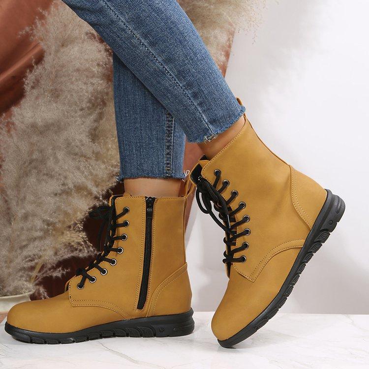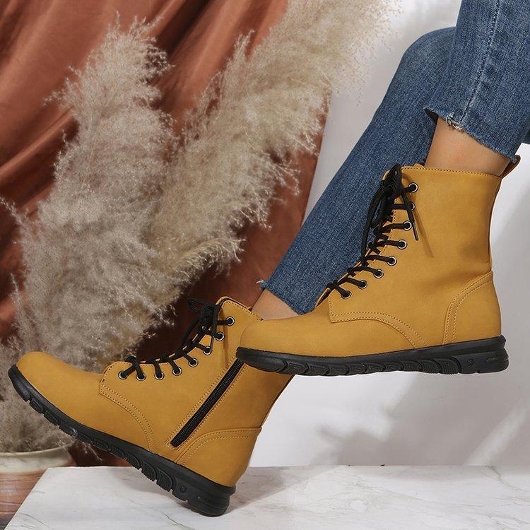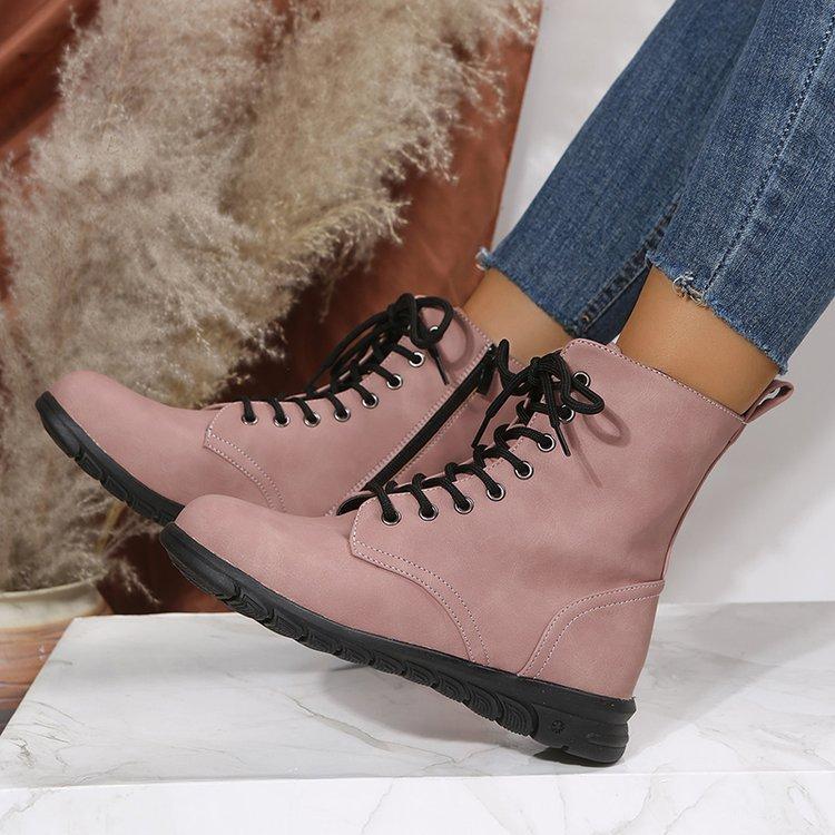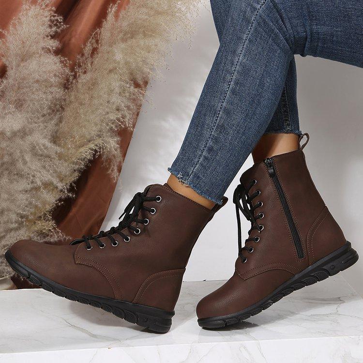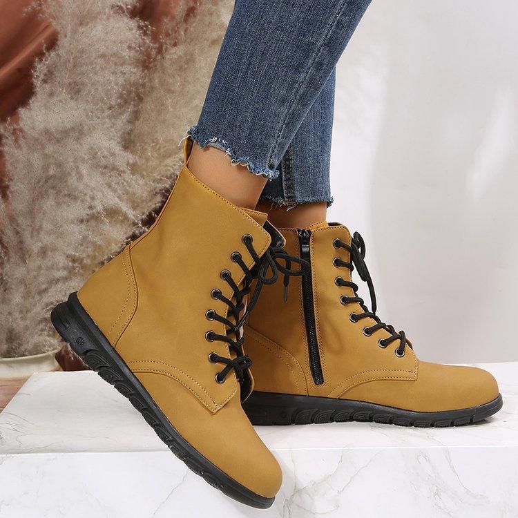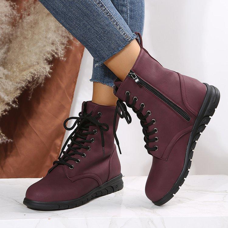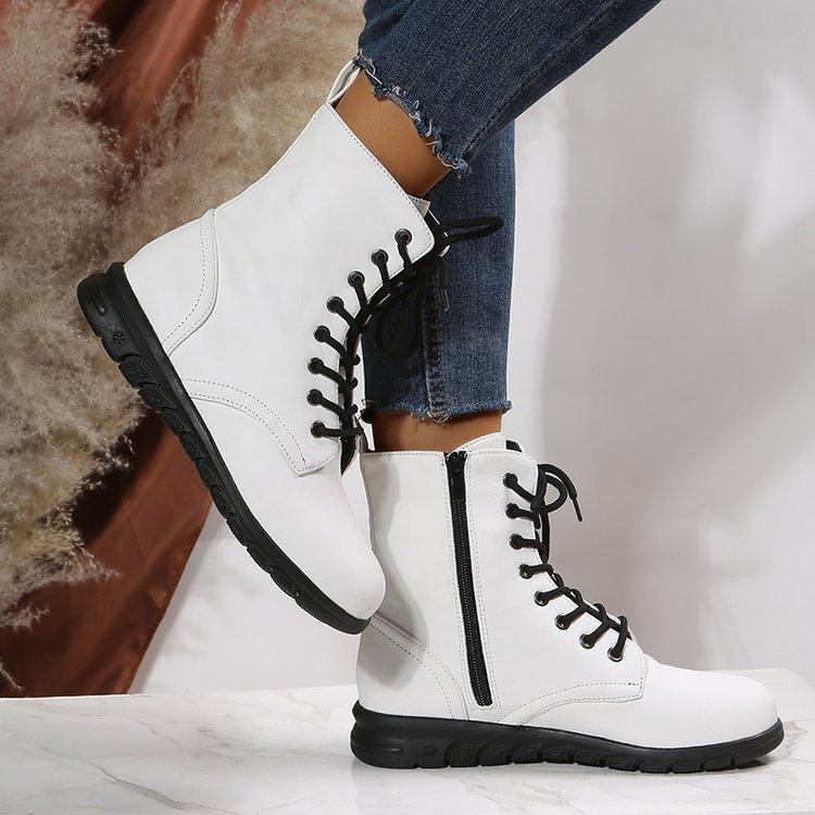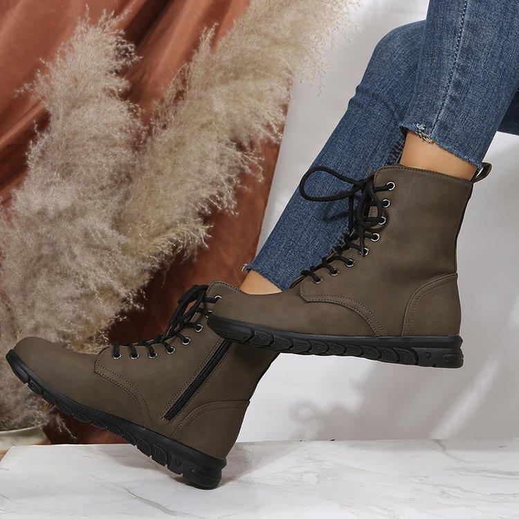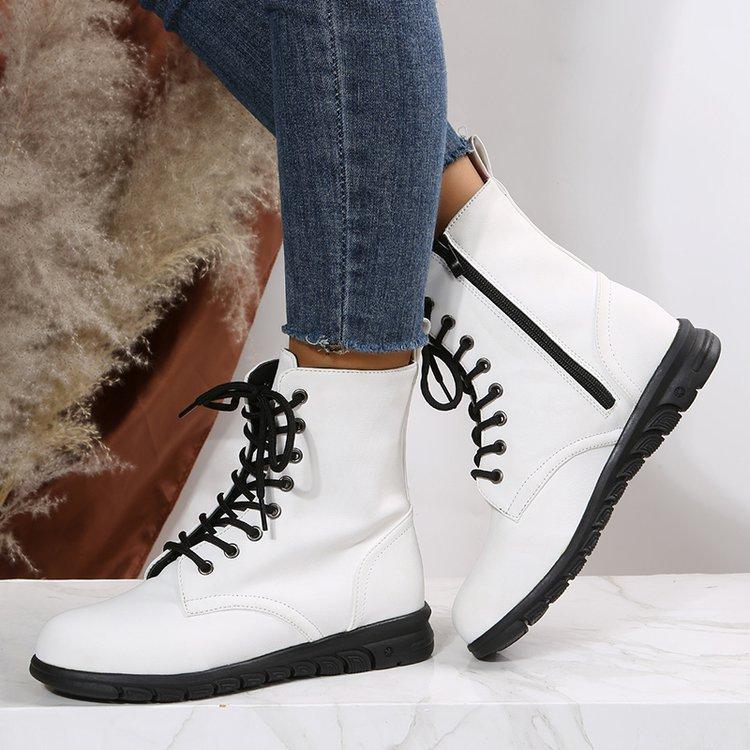Botas Martin retro de cabeza redonda plana para mujer, de comercio exterior europeo y americano, con cordones delanteros, de color liso, finas, de cuero, talla grande, Amazon