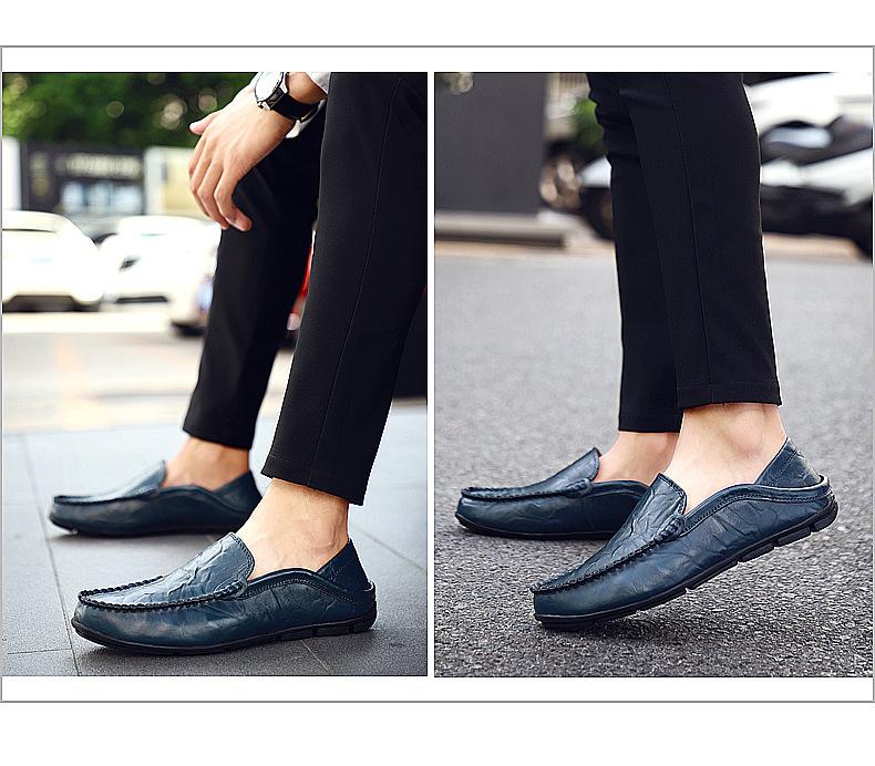 2023 Verano nuevos zapatos de guisantes de talla grande transfronterizos, zapatos de moda para perezosos, zapatos casuales de cuero transpirables para hombres europeos y americanos, al por mayor
