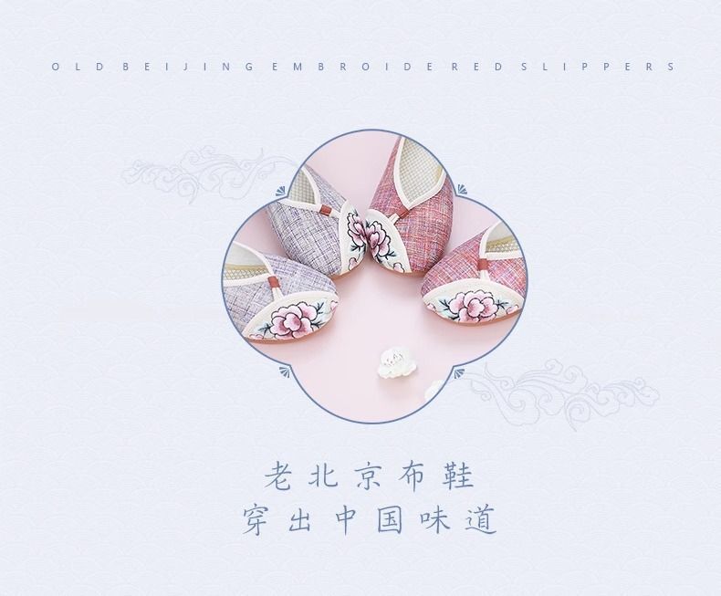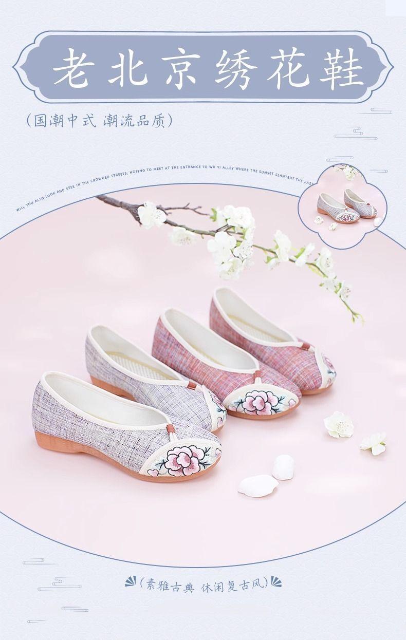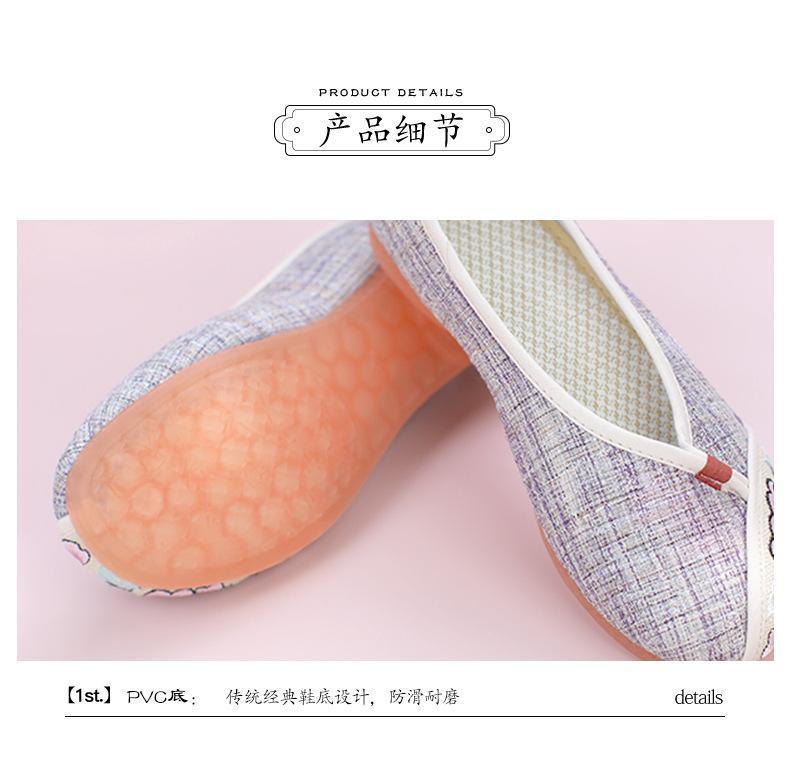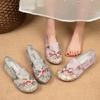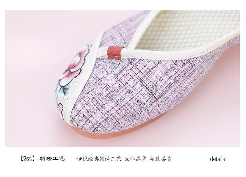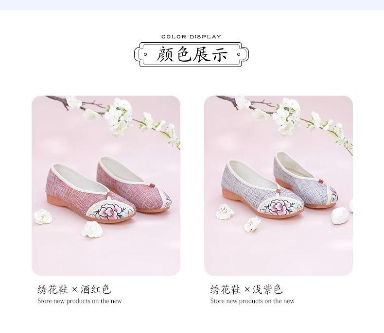 Zapatos de Tela Estilo Nuevo Viejo Beijing Suela Suave Transpirables Casuales Zapatos Planos para Mujer Zapatos Cheongsam Tradicionales Étnicos para Danza Zapatos Bordados para Mujer