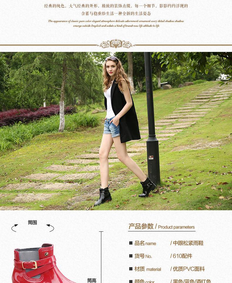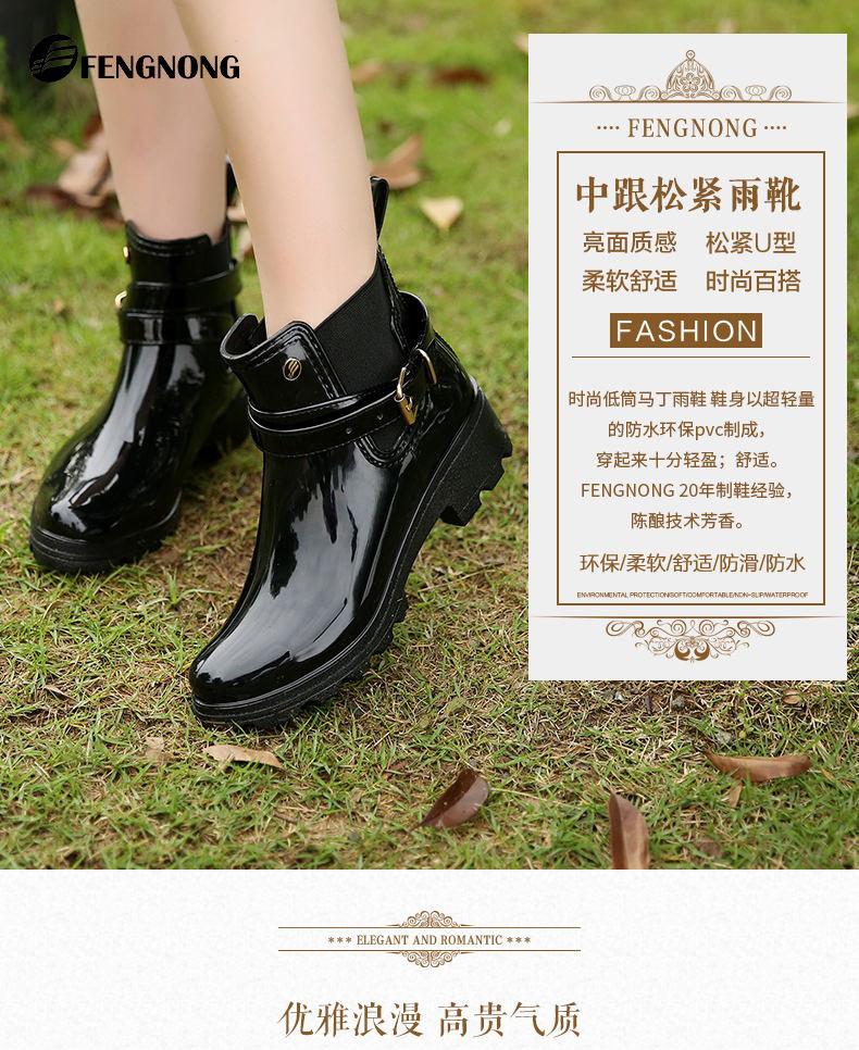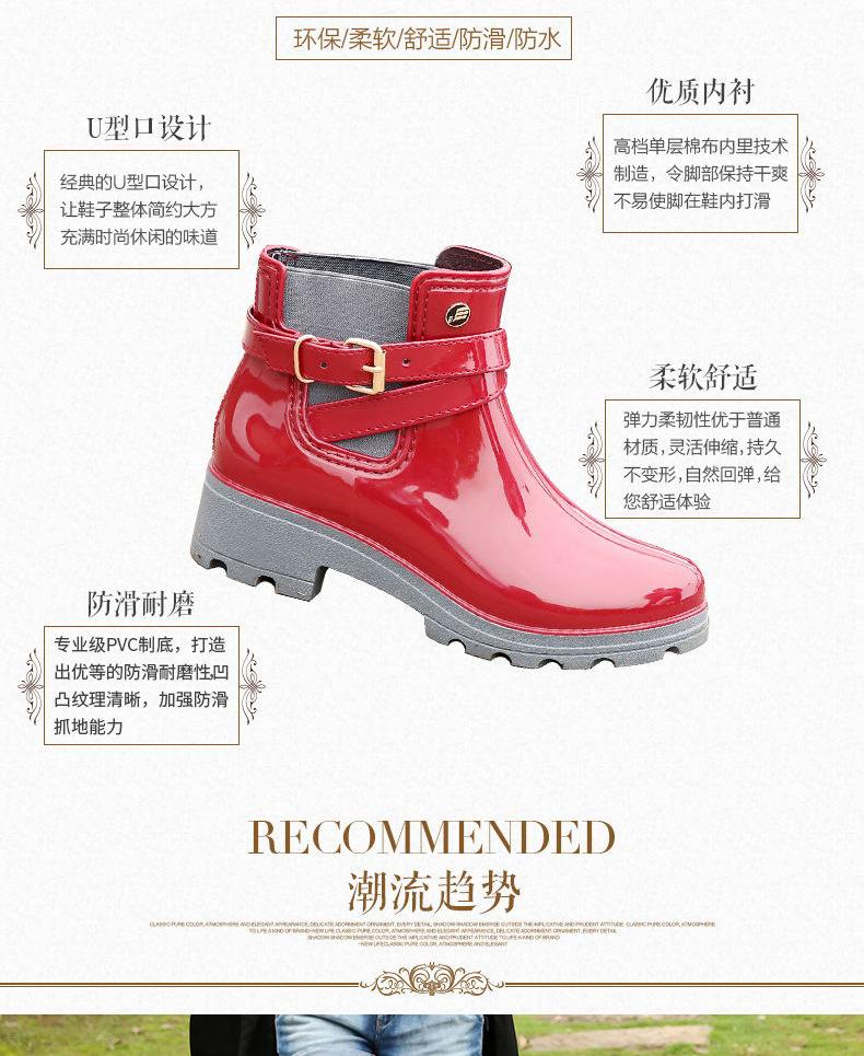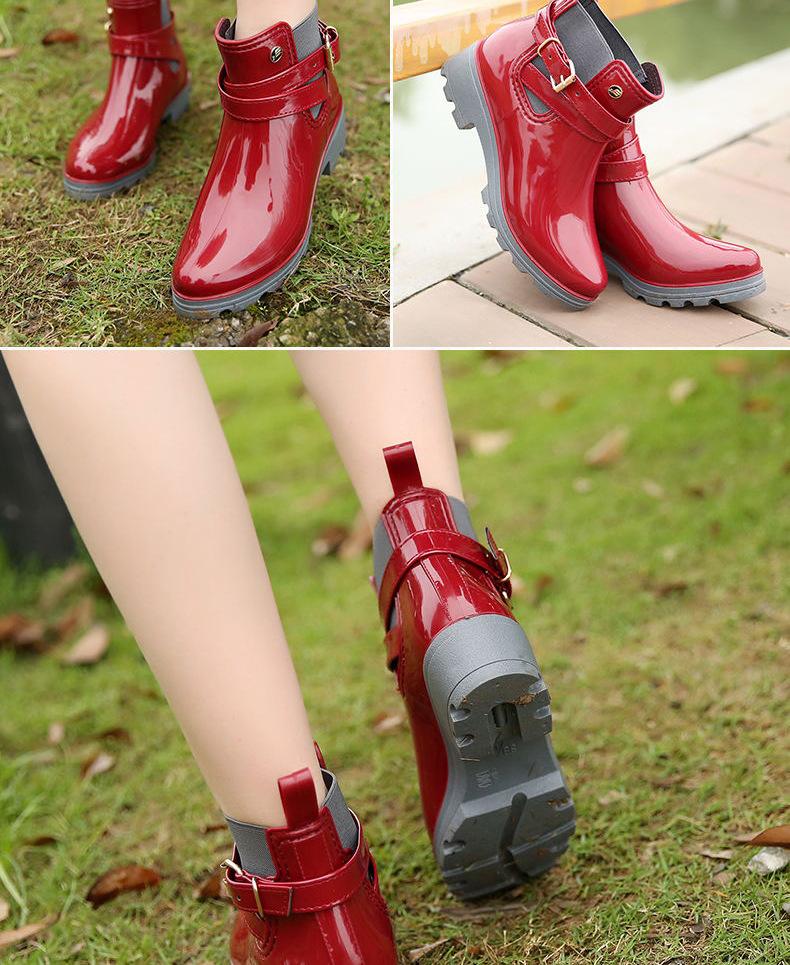 25 Años Nuevas Botas de Lluvia Nuevas Botas de Agua de PVC Brillante de Tubo Corto para Mujer Botas de Lluvia para Adulto en Forma de U con Botas de Goma Martin Elásticas