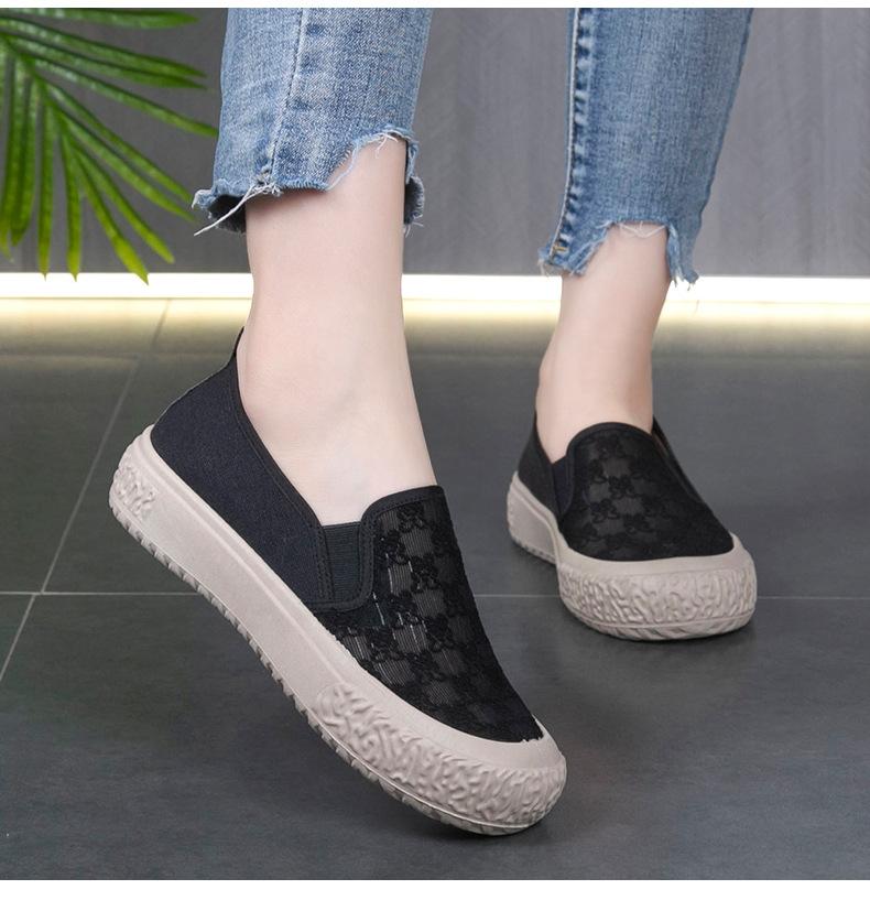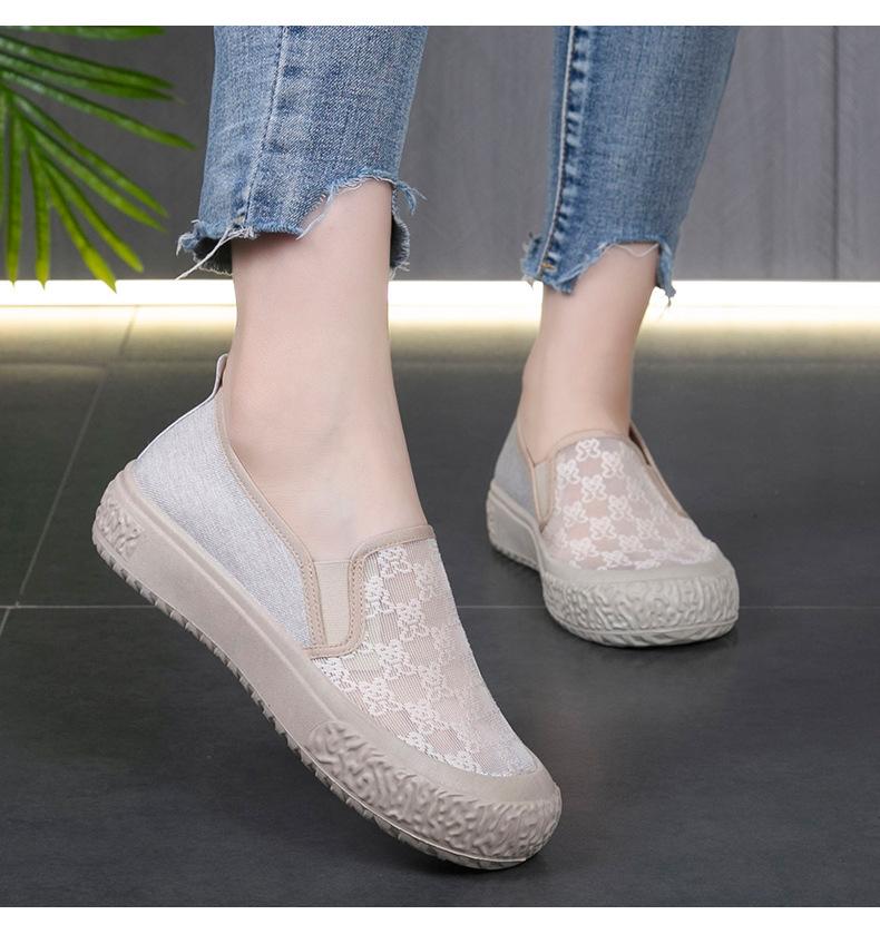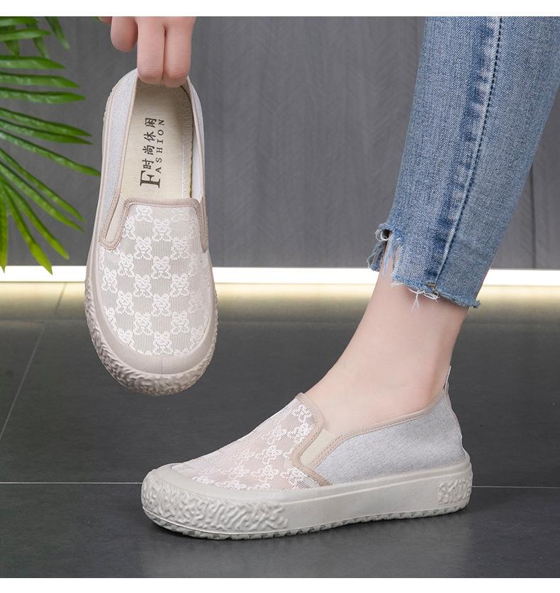 Zapatos de Malla de Suela Gruesa, Nuevos Zapatos Casuales de Primavera y Verano, Zapatos Casuales Bajos sin Cordones, Zapatos de Pescador Transpirables con Cordones para Estudiantes para Mujer