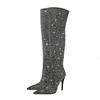 2024 comercio exterior nuevo pedrería puntiaguda tacón fino tacón súper alto cremallera lateral botas altas por encima de la rodilla moda talla grande botas de mujer