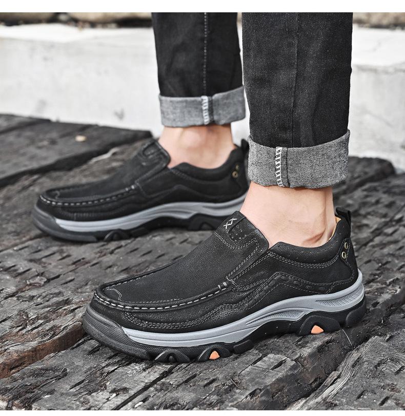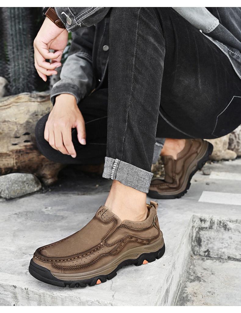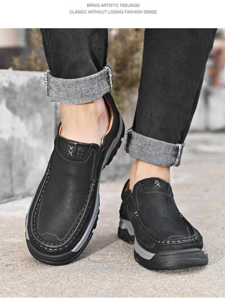Primavera y verano 2023 nuevos zapatos casuales de cuero para negocios al aire libre cuero de capa superior cosidos a mano explosiones mocasines para hombre