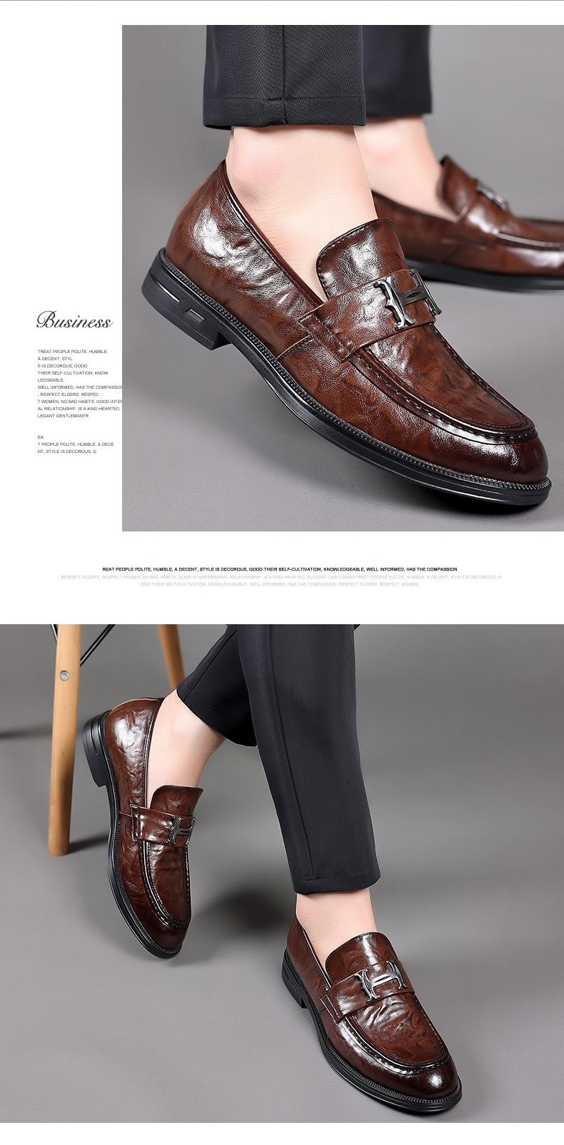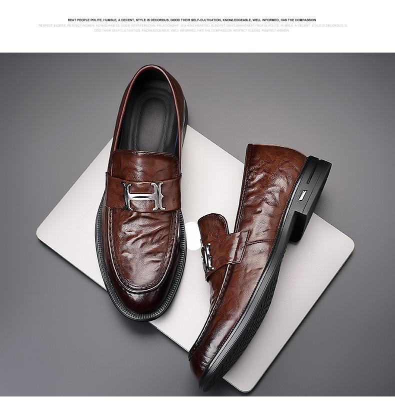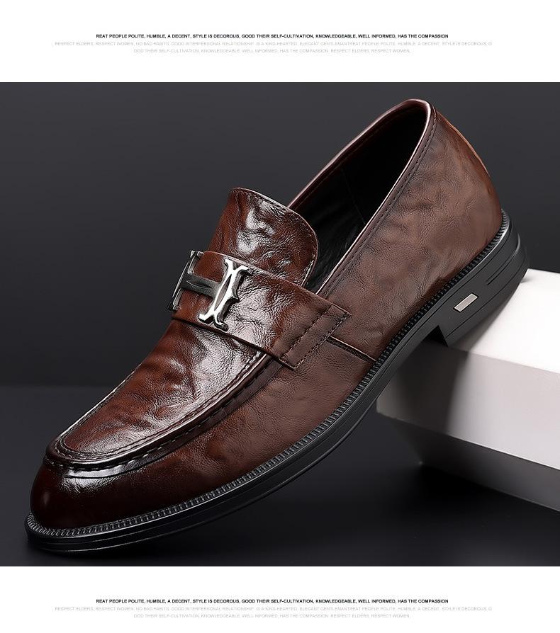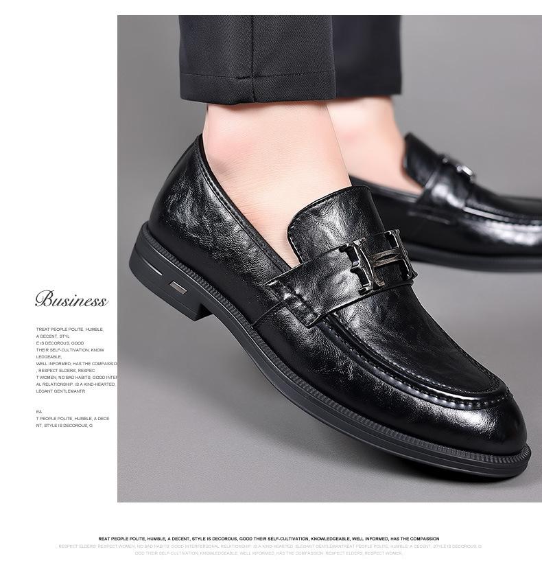 Primavera Nuevos Zapatos Casuales de Cuero para Hombre Cuero Genuino Piel de Vacuno Vestir Formal de Negocios Zapatos Slip-On Antideslizantes para Hombre Zapatos Planos