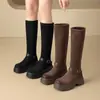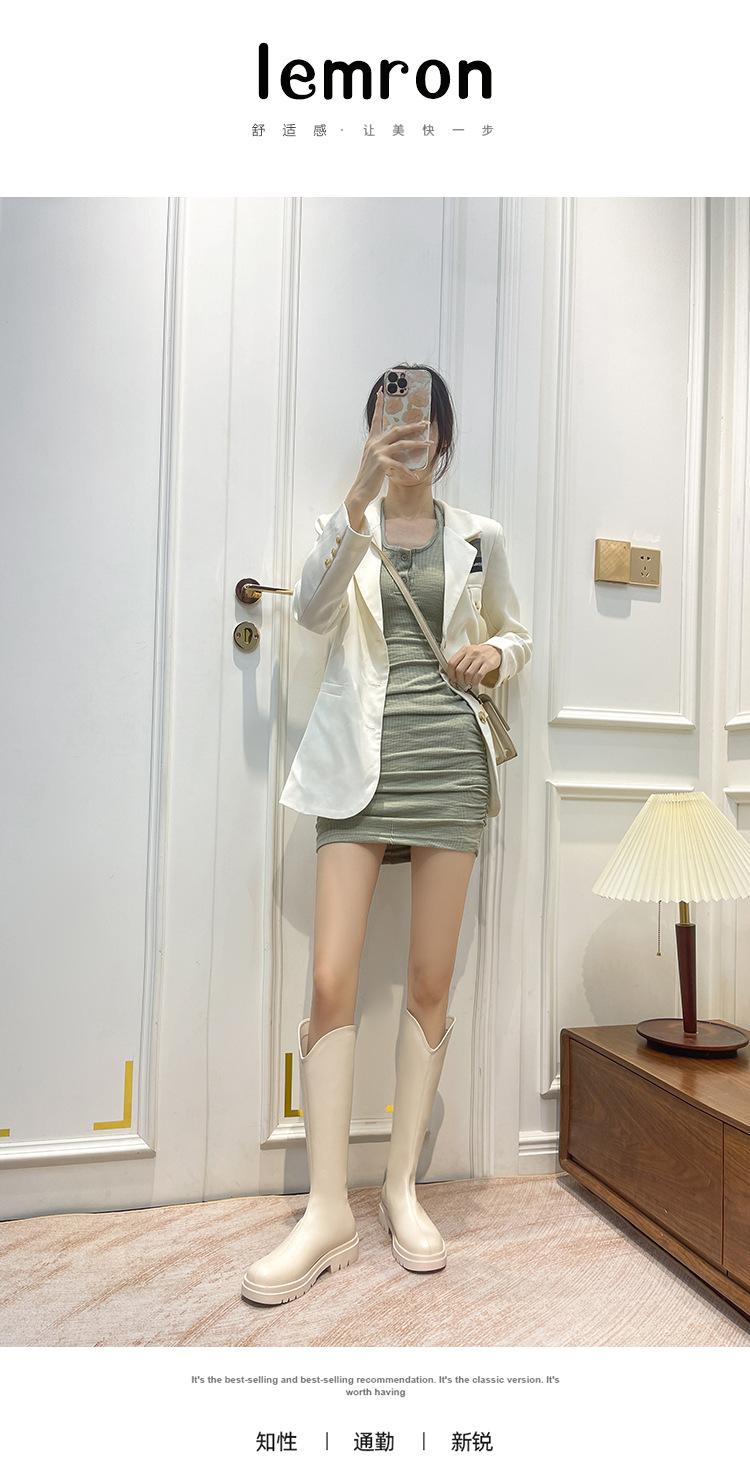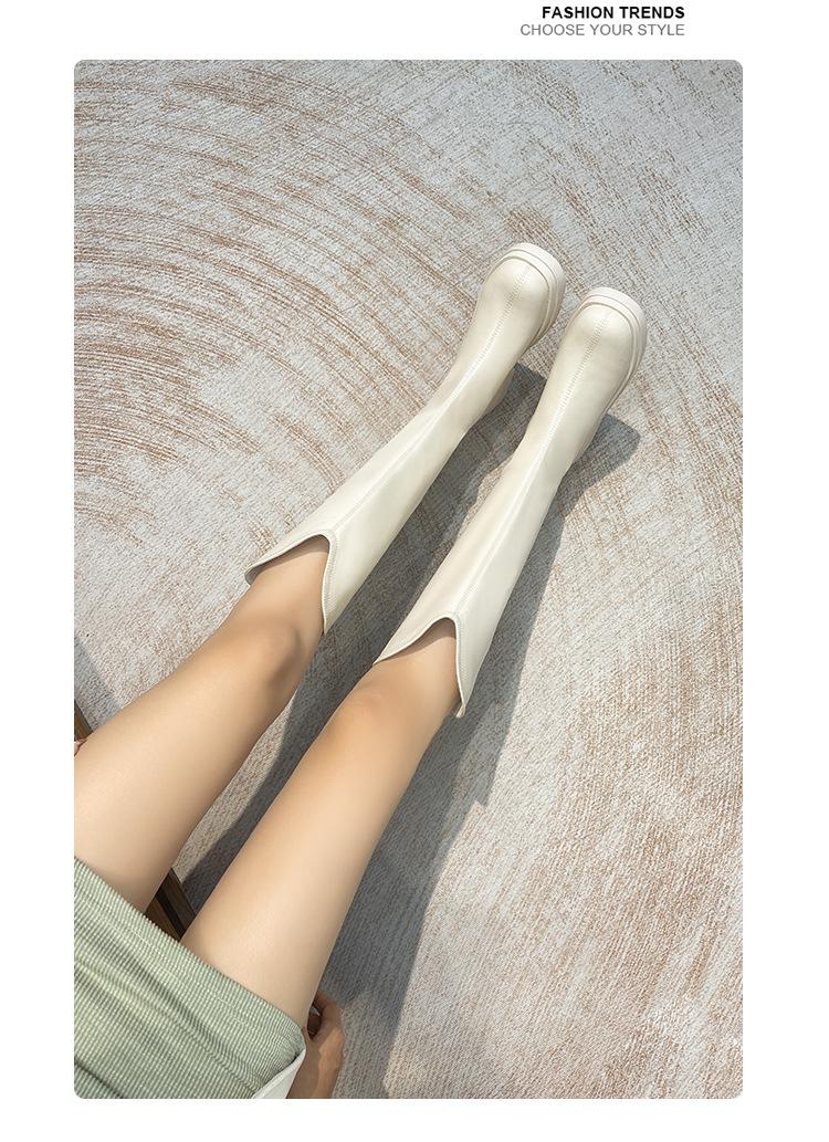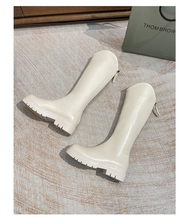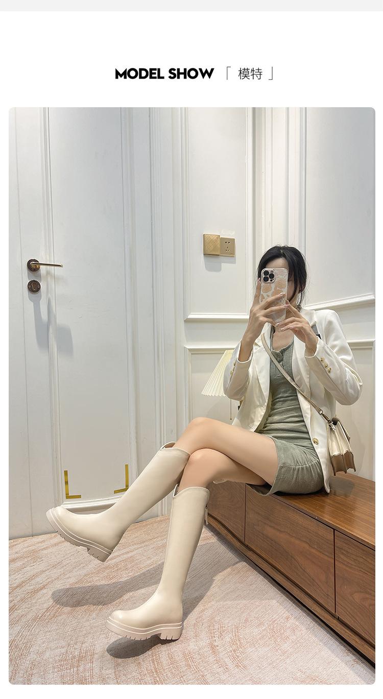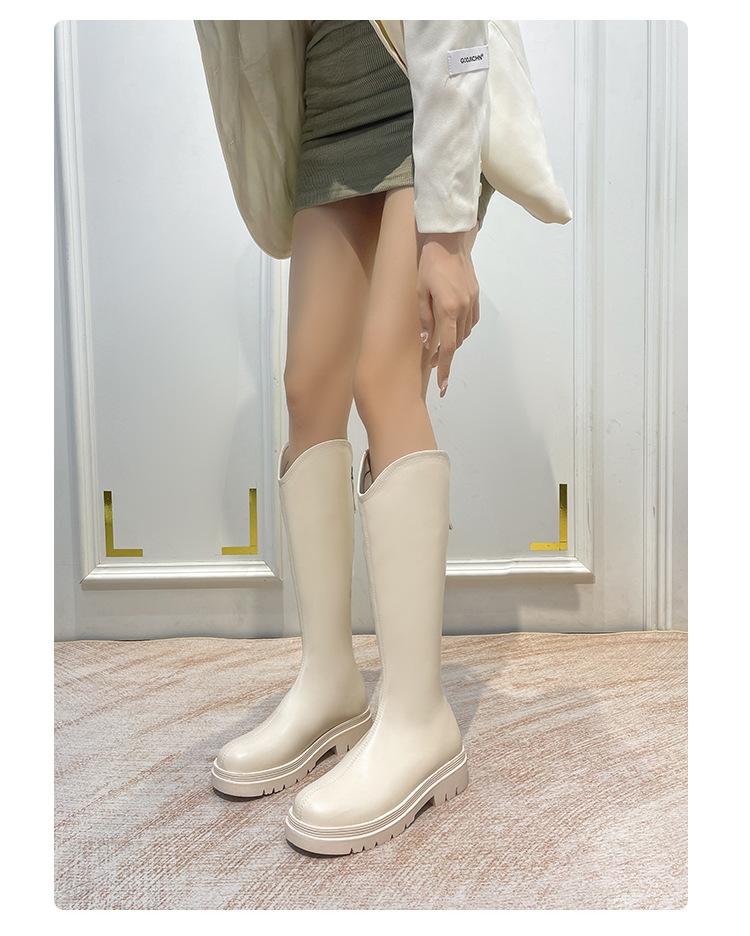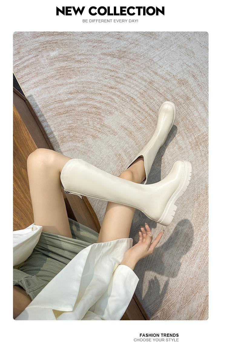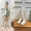 Moda Otoño e Invierno 2025 Nuevas Botas Chimenea Estilo Británico Blanco Roto Suela Gruesa Botas de Caballero Talla Grande 41-43 Botas para Mujer