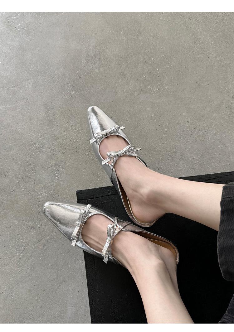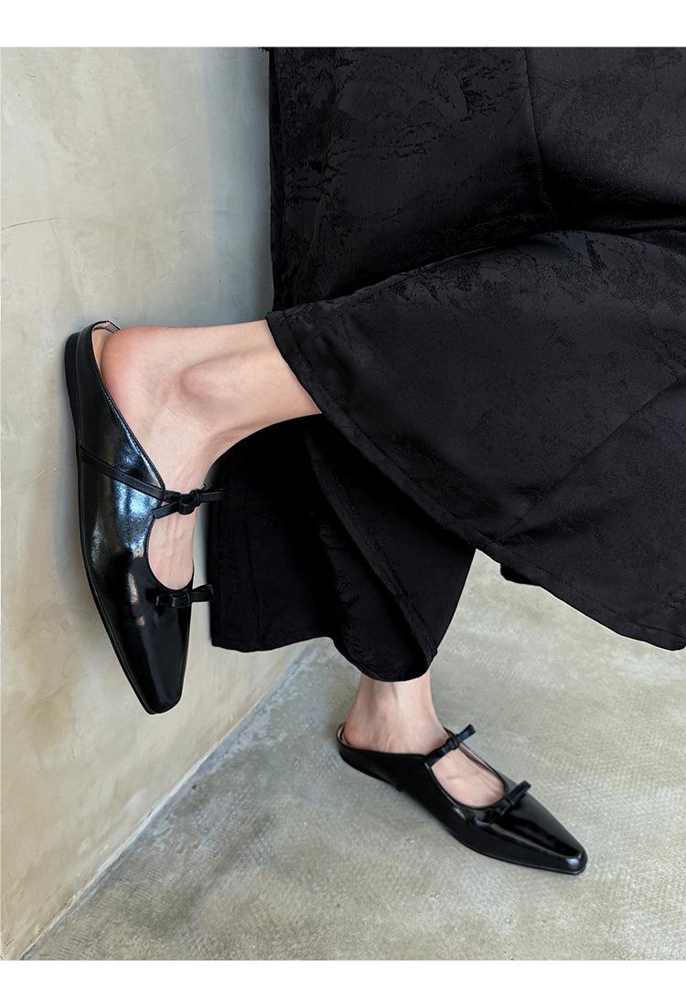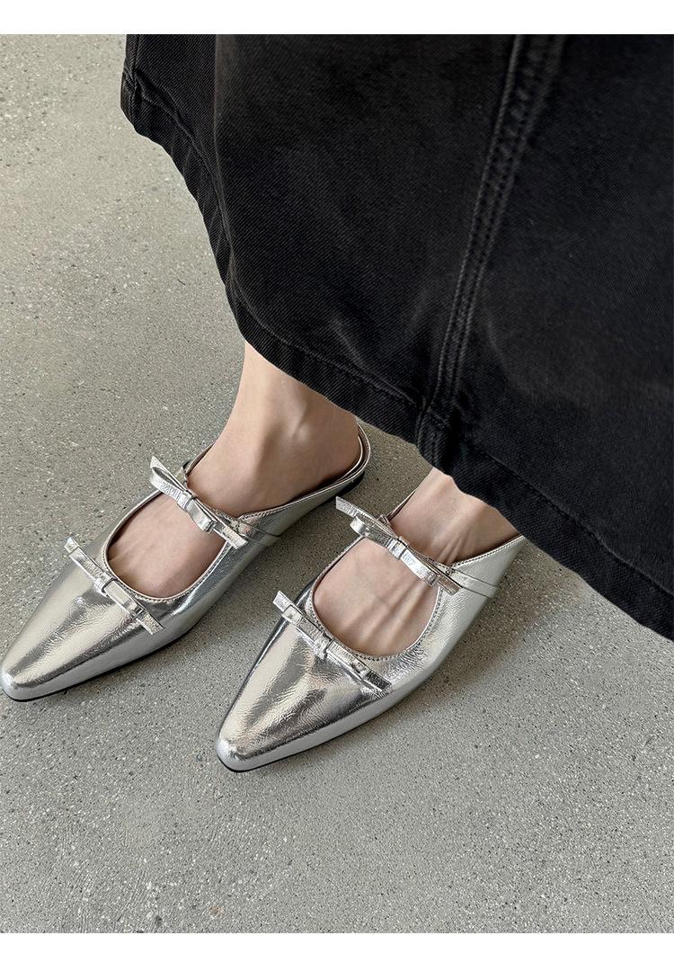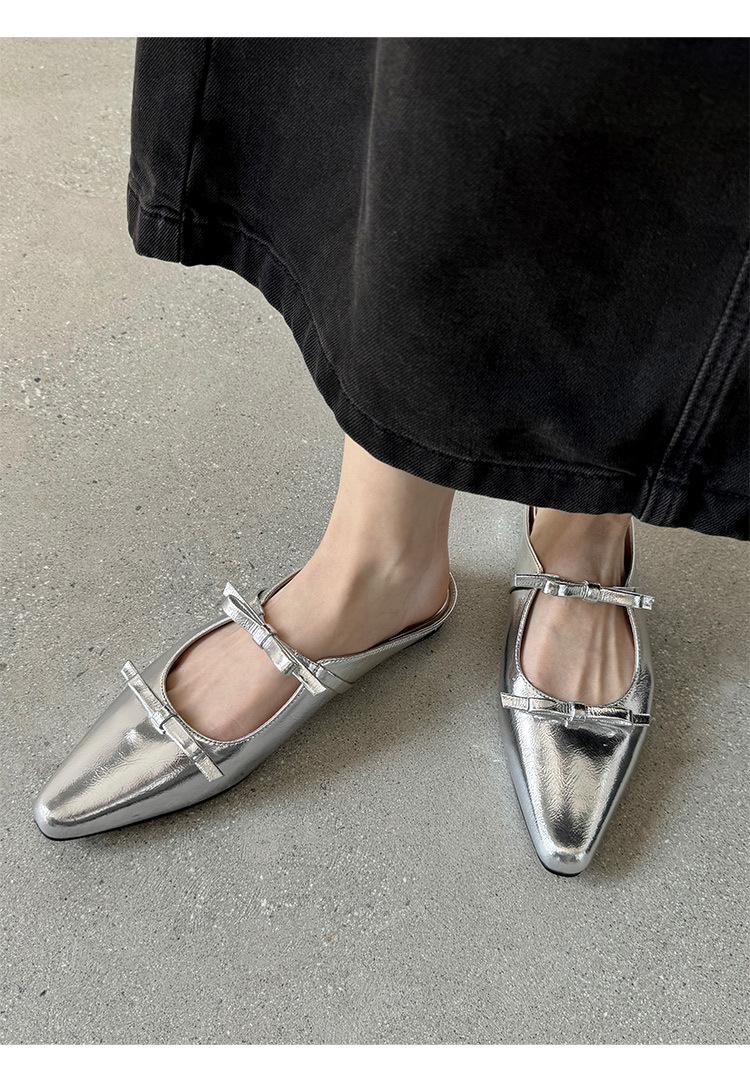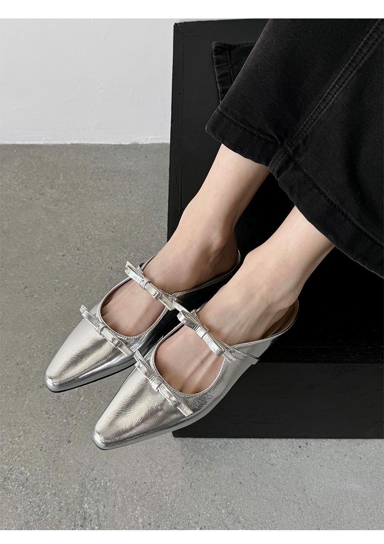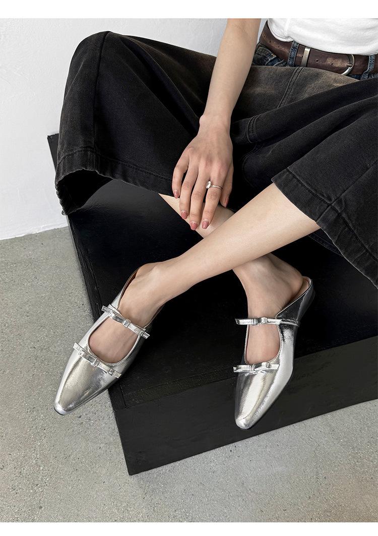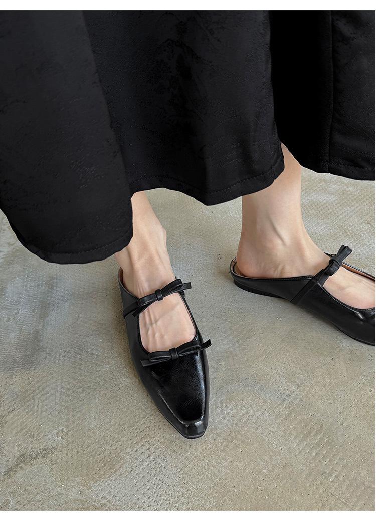 Pantuflas de Punta Cerrada con Lazo para Mujer, Verano 2025 Estilo Coreano de Moda, Pantuflas Planas de Punta para Uso Exterior, Sandalias para Mujer de Talla Grande