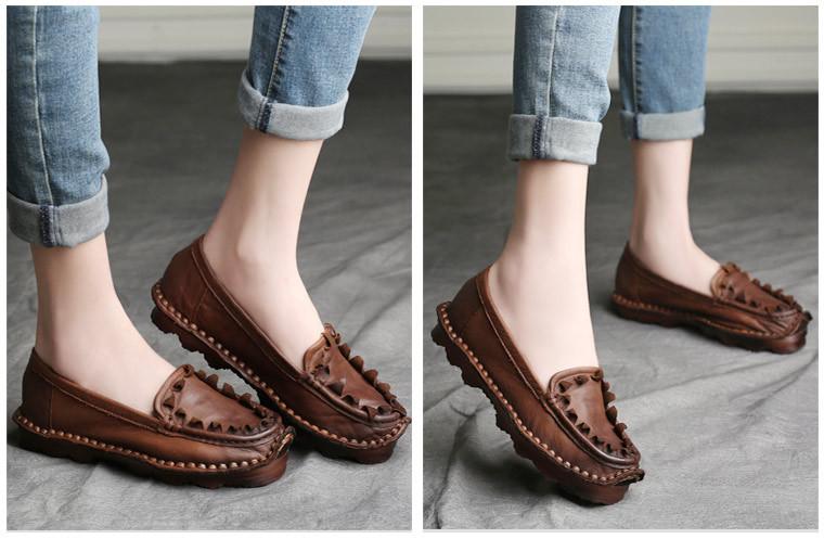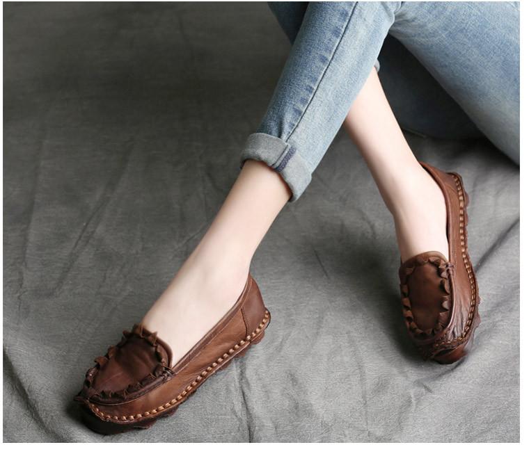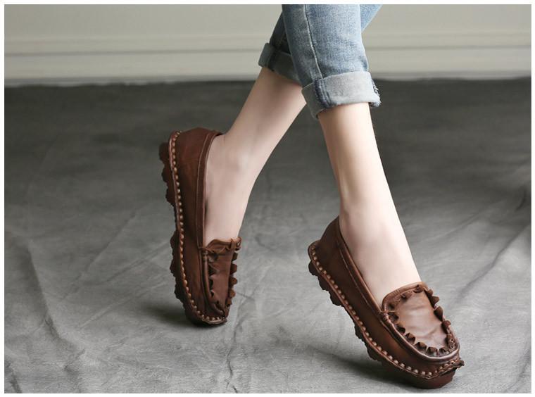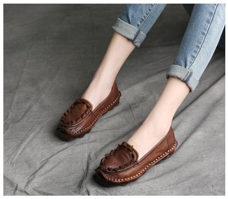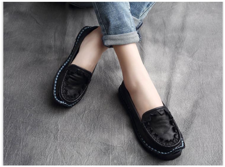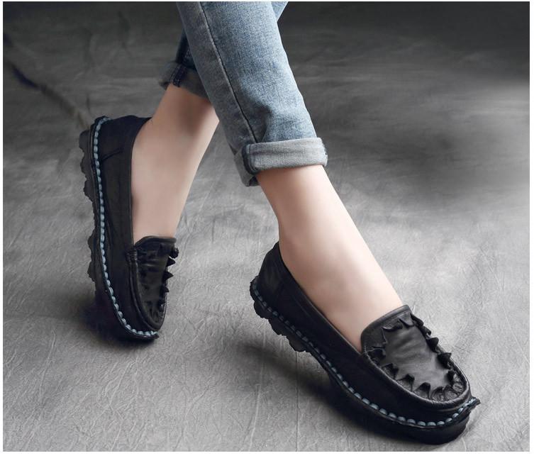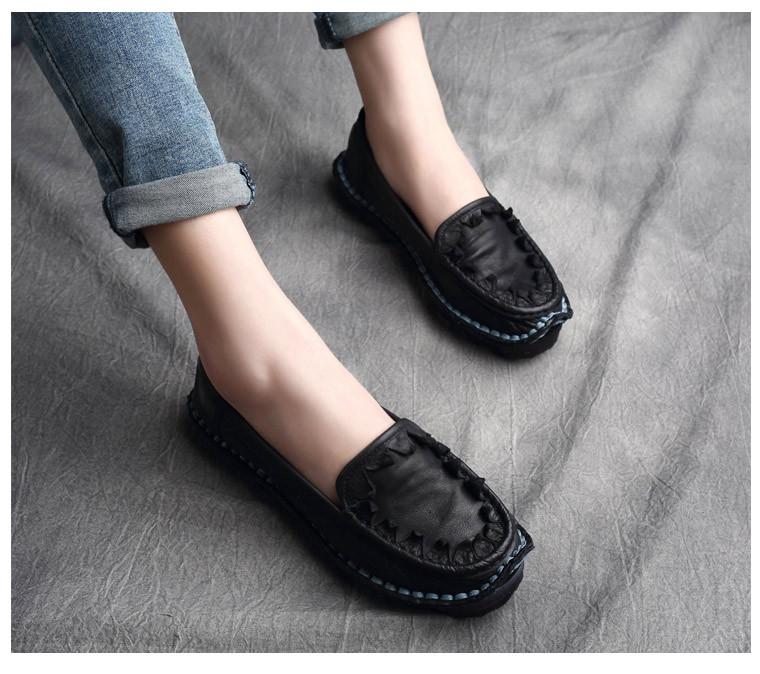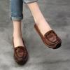 Zapatos de Mujer Casuales Holgazanes de Cuero Vacuno Suave con Suela Blanda de Estilo Étnico Retro Primavera 2025