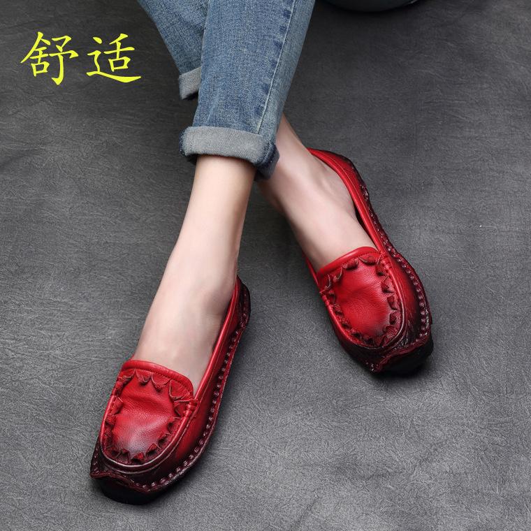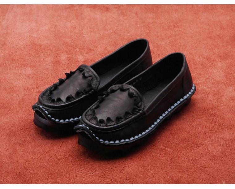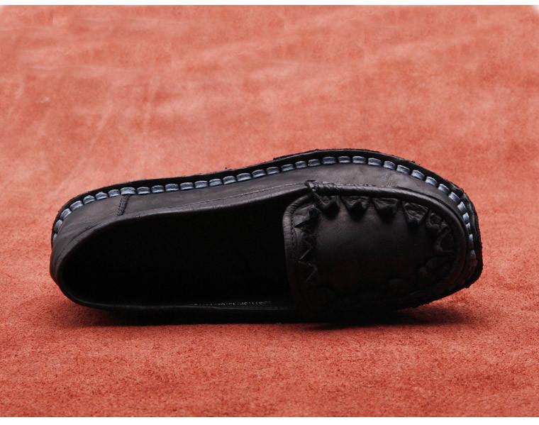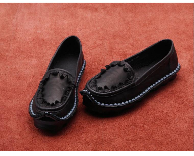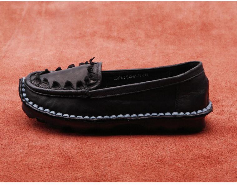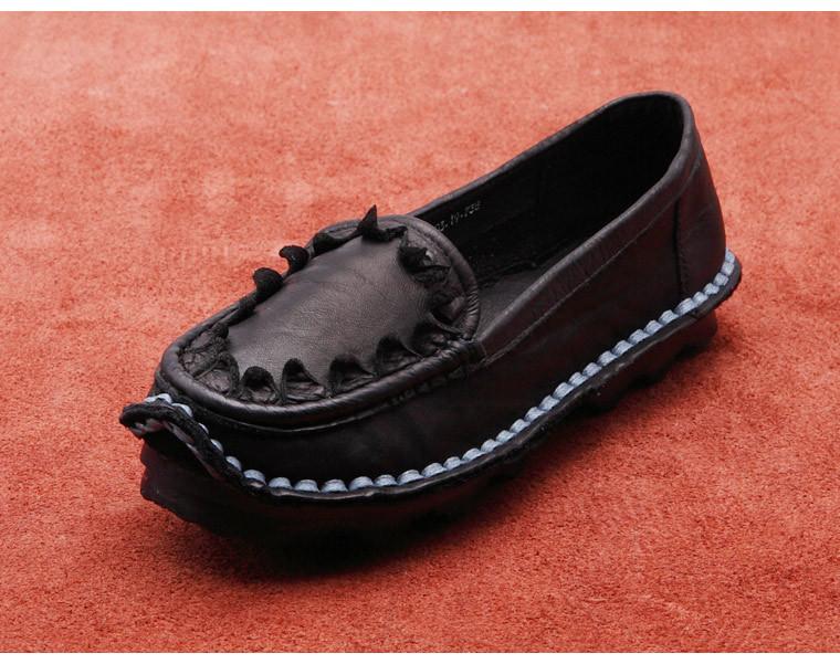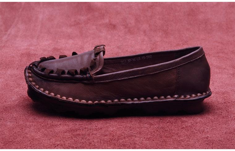 Zapatos de Mujer Casuales Holgazanes de Cuero Vacuno Suave con Suela Blanda de Estilo Étnico Retro Primavera 2025