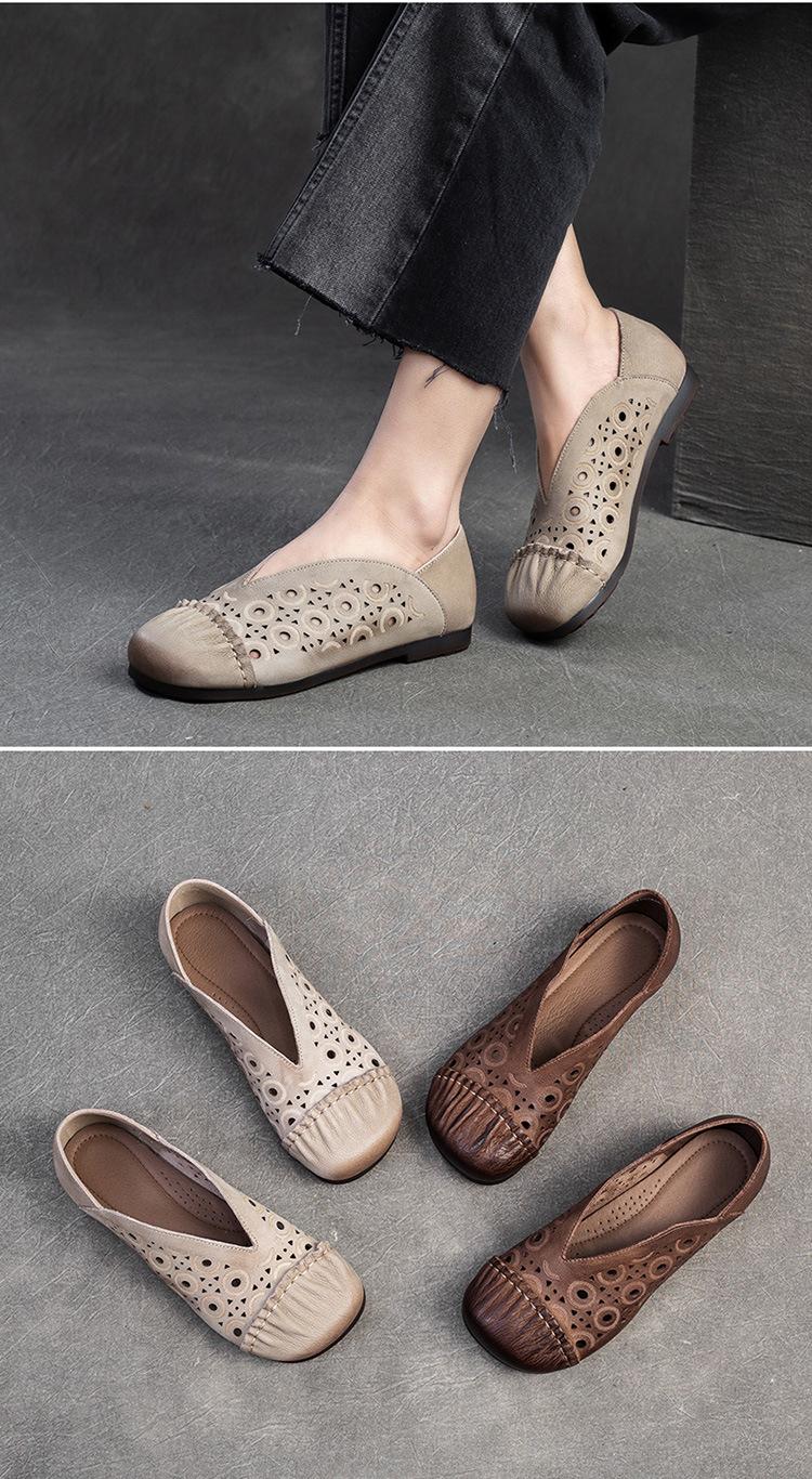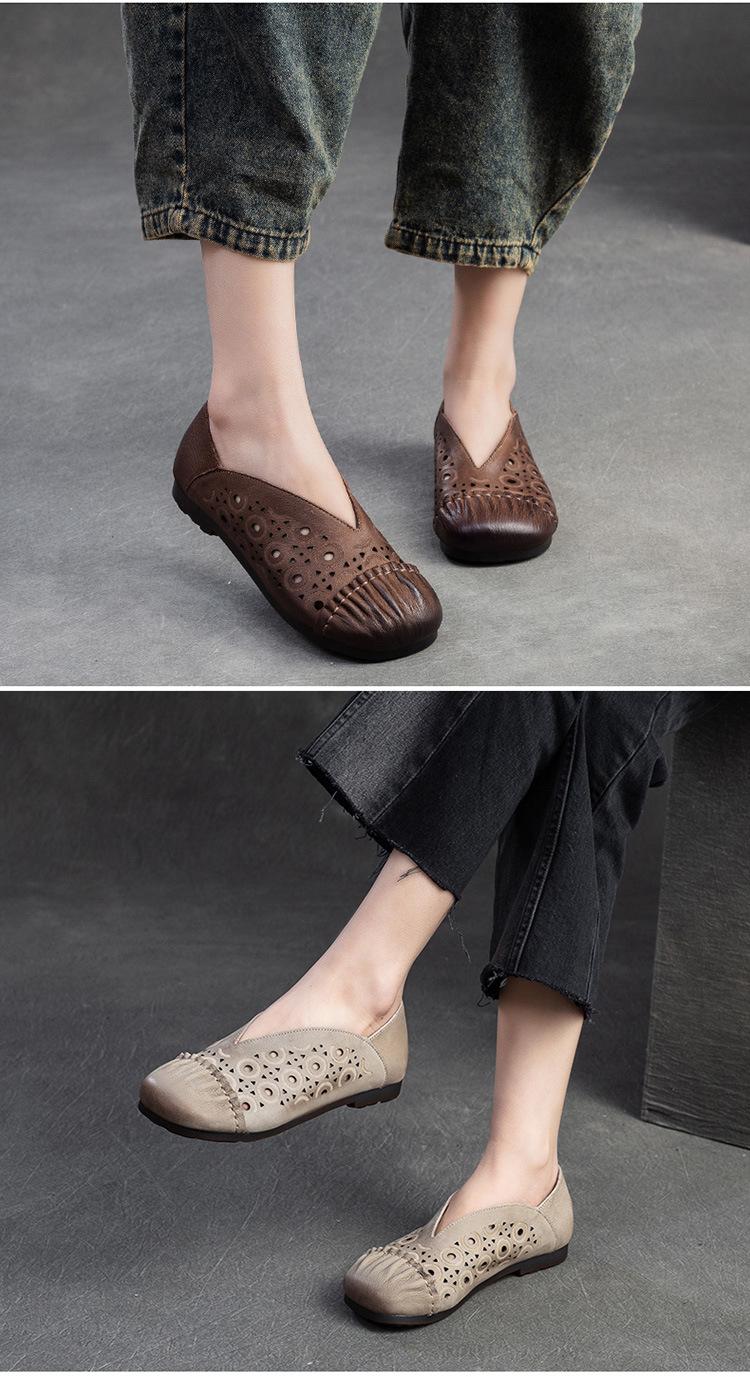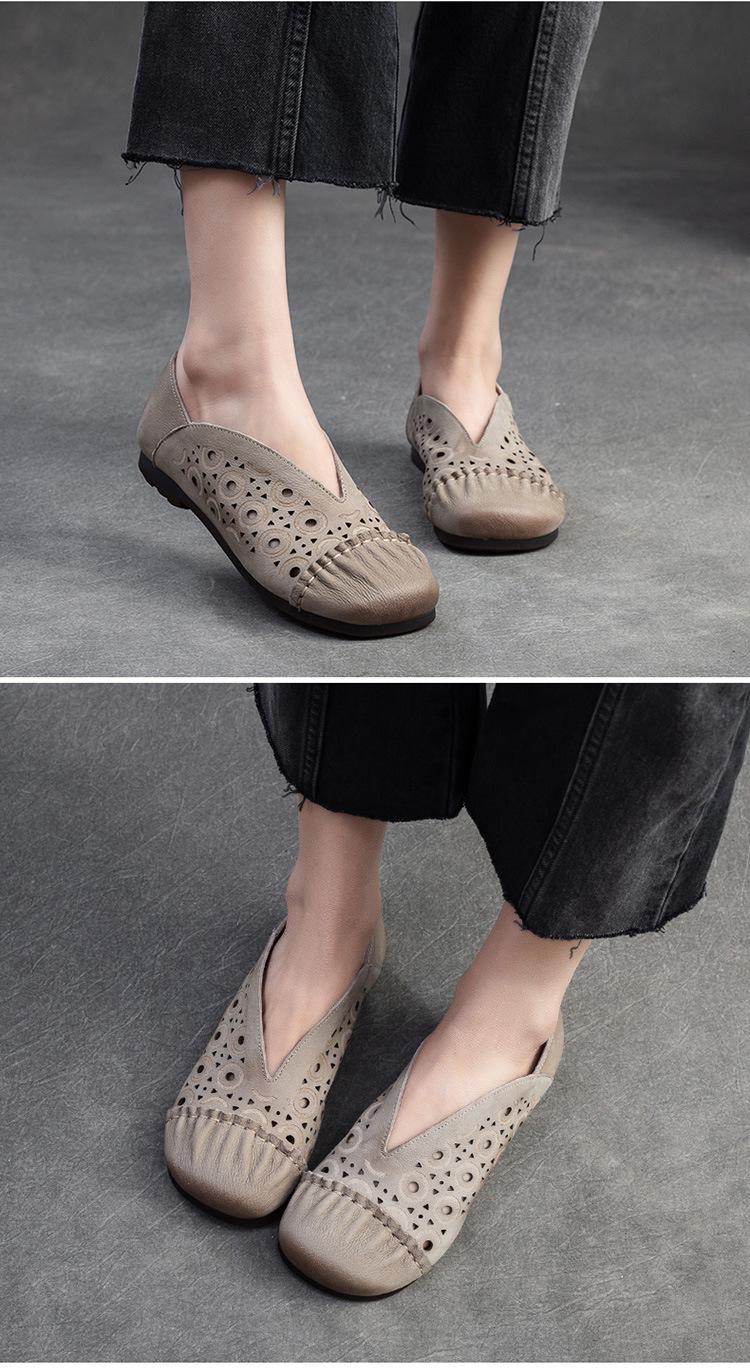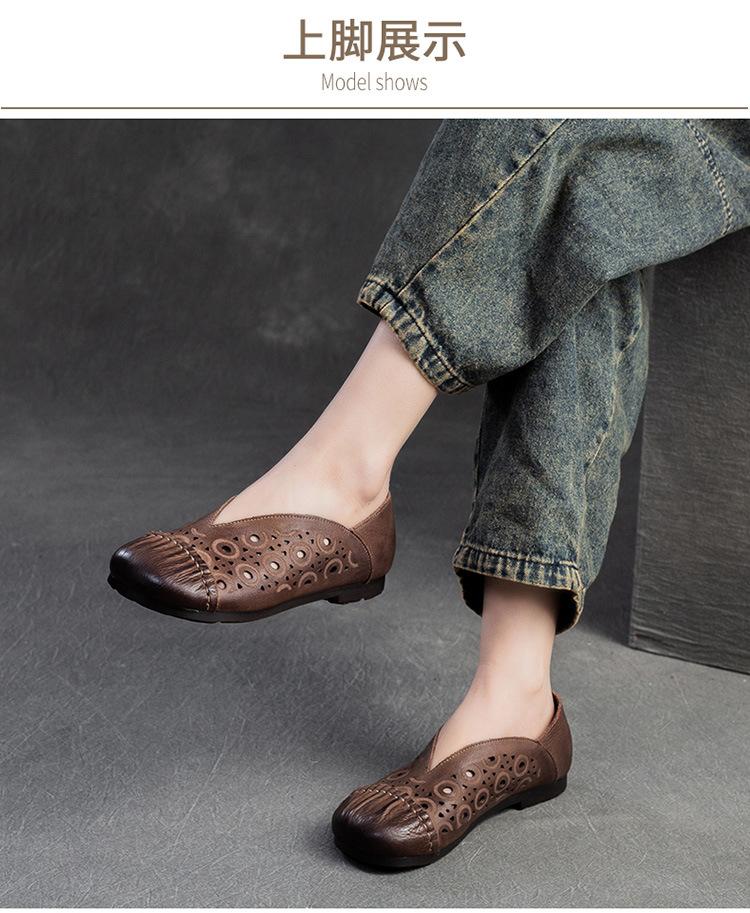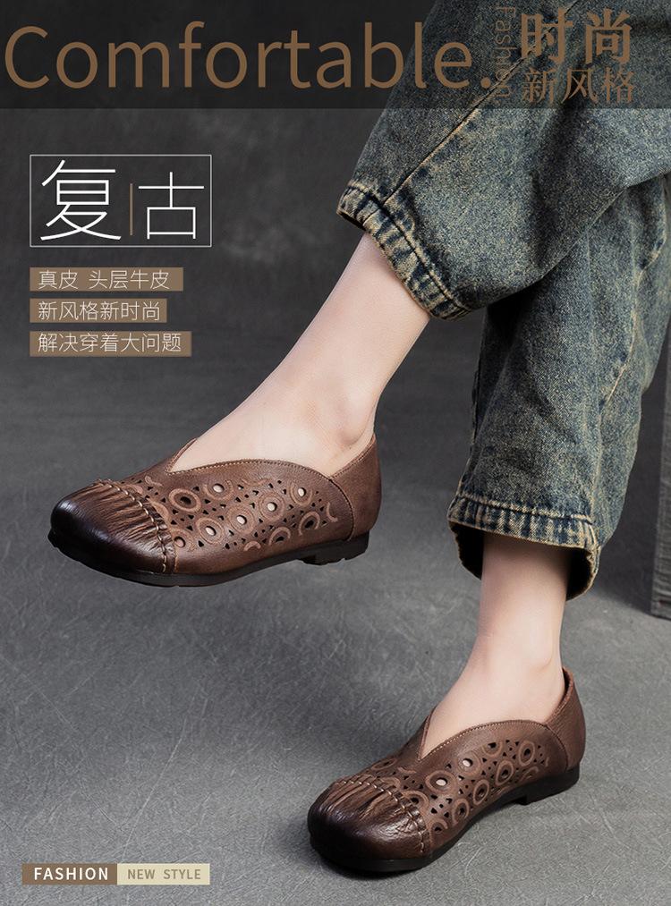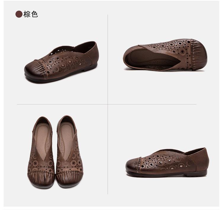 Shanghai Jie Shu 2024 primavera nuevo retro cómodo sin cordones zapatos de mamá artísticos zapatos planos de punta redonda simples para mujer