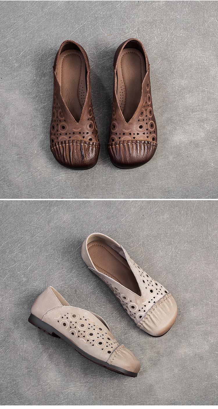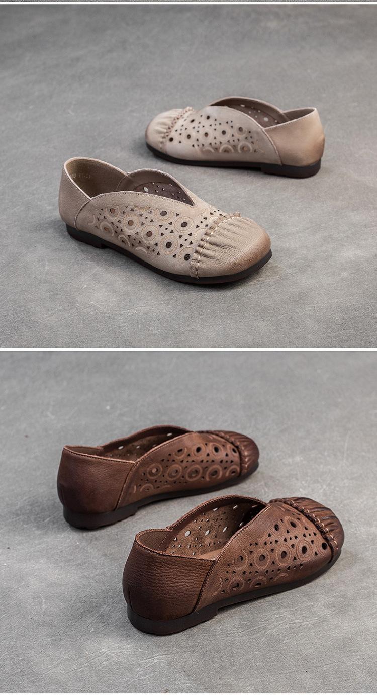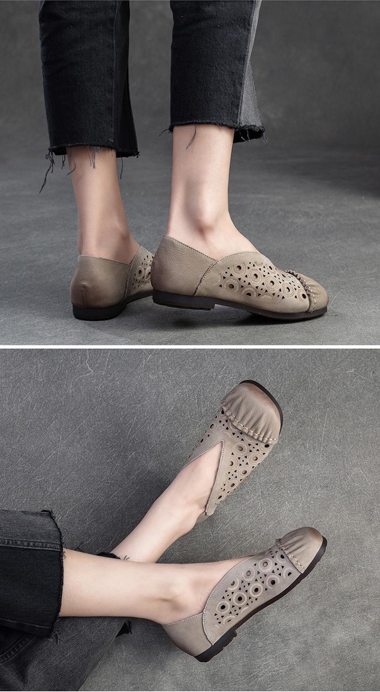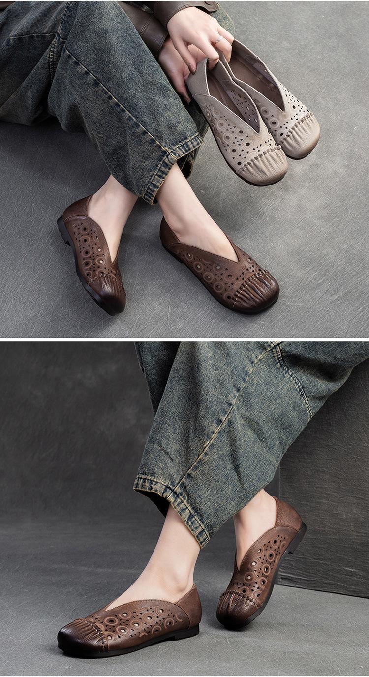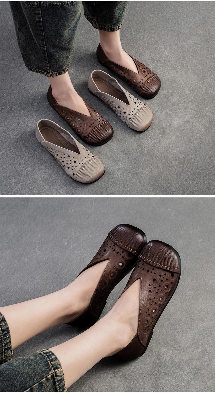 Shanghai Jie Shu 2024 primavera nuevo retro cómodo sin cordones zapatos de mamá artísticos zapatos planos de punta redonda simples para mujer