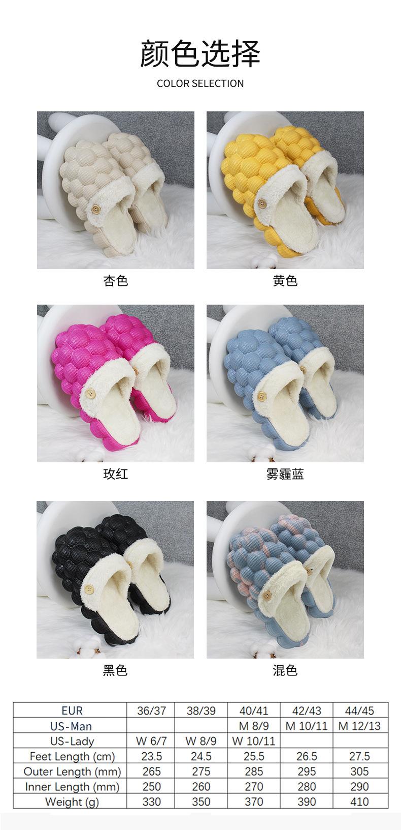 Zapatos de algodón desmontables para otoño e invierno, para el hogar, para parejas, con burbujas, antideslizantes, cálidos, de moda.