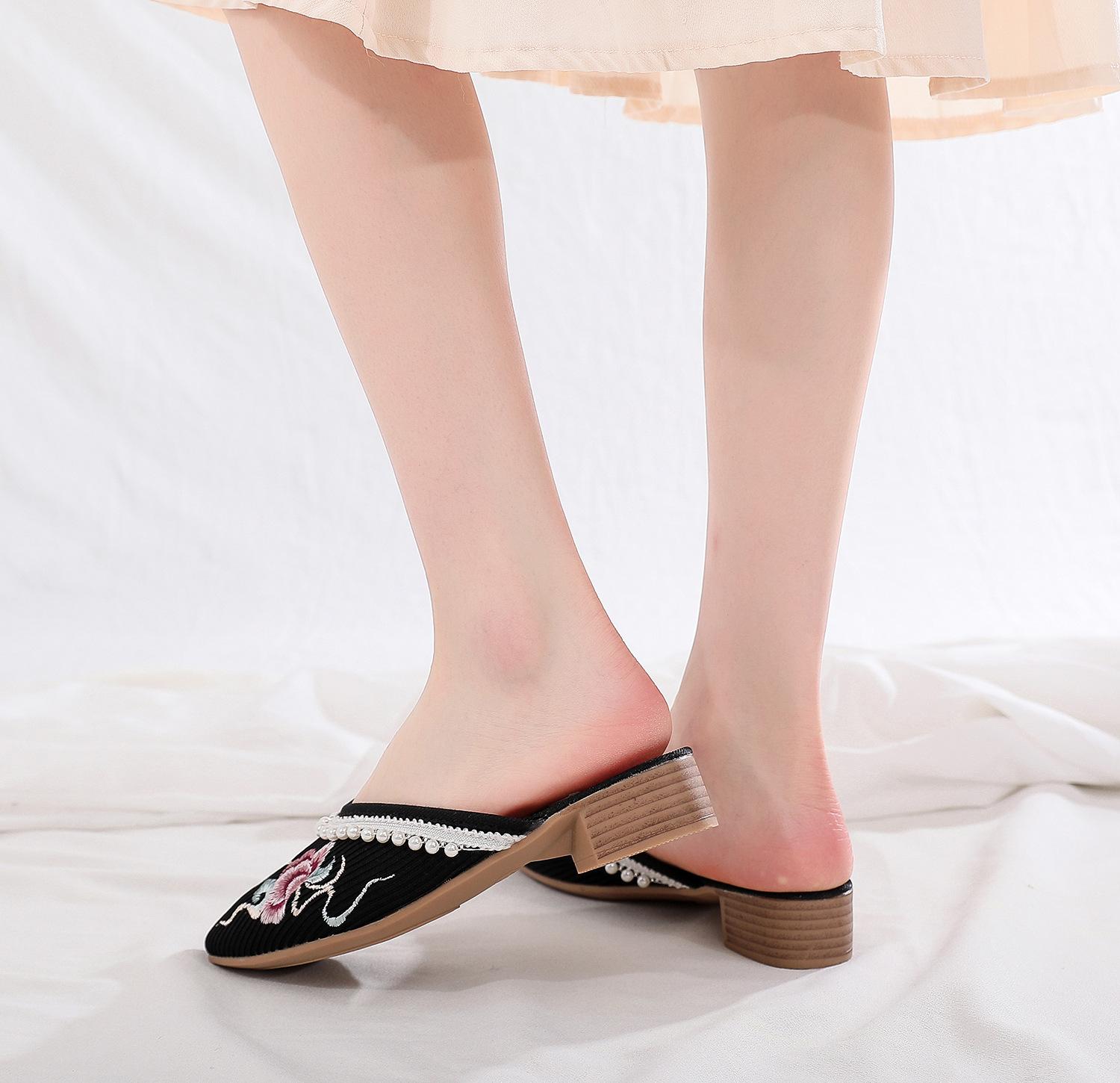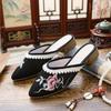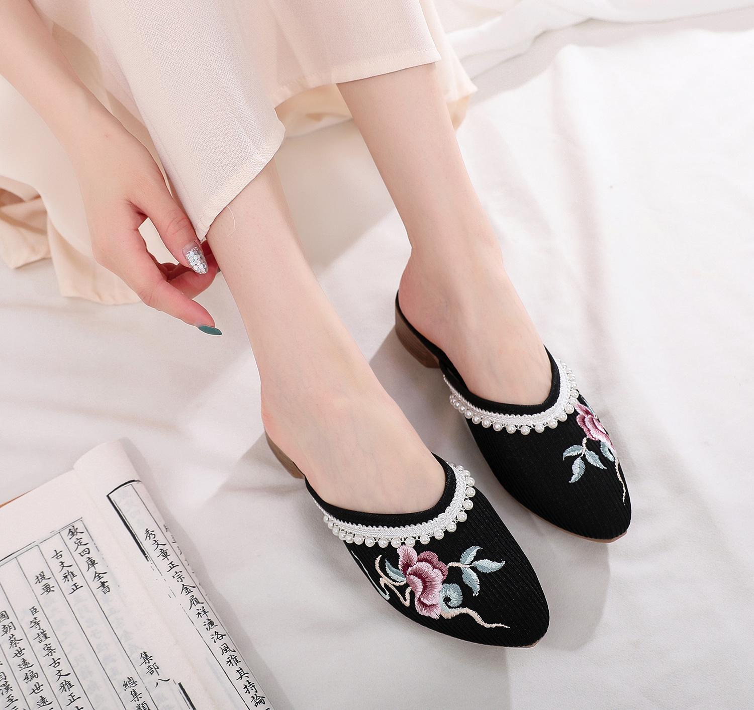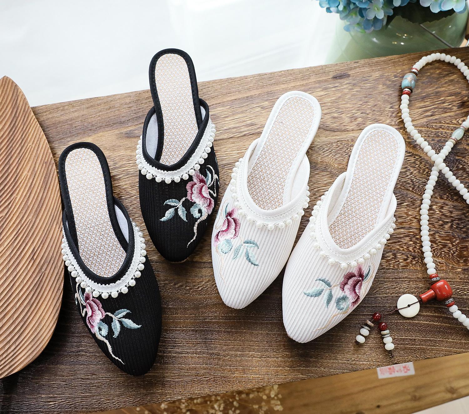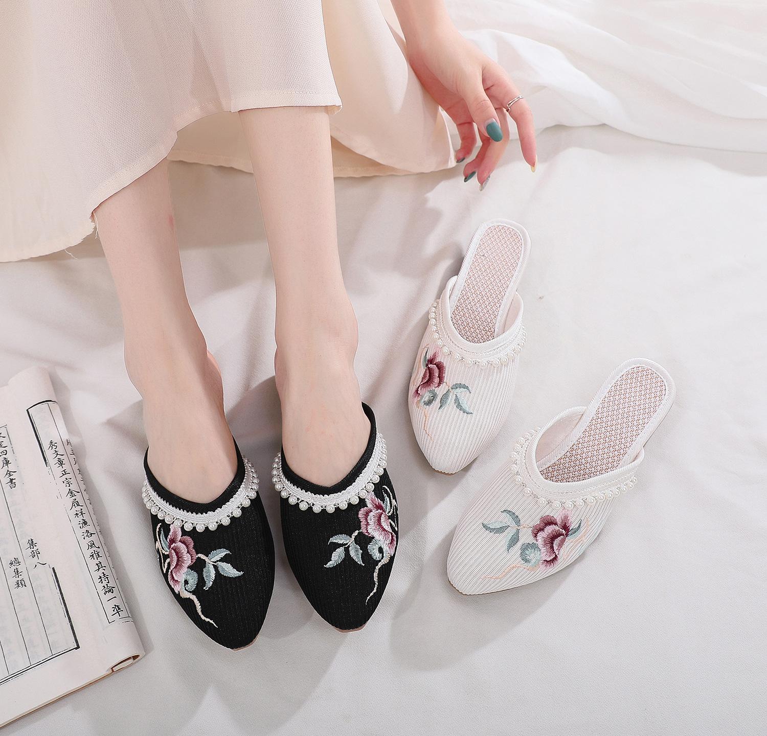 Zapatillas de tela bordadas para mujer, zapatos de moda, con puntera, para exteriores, de verano, nuevas