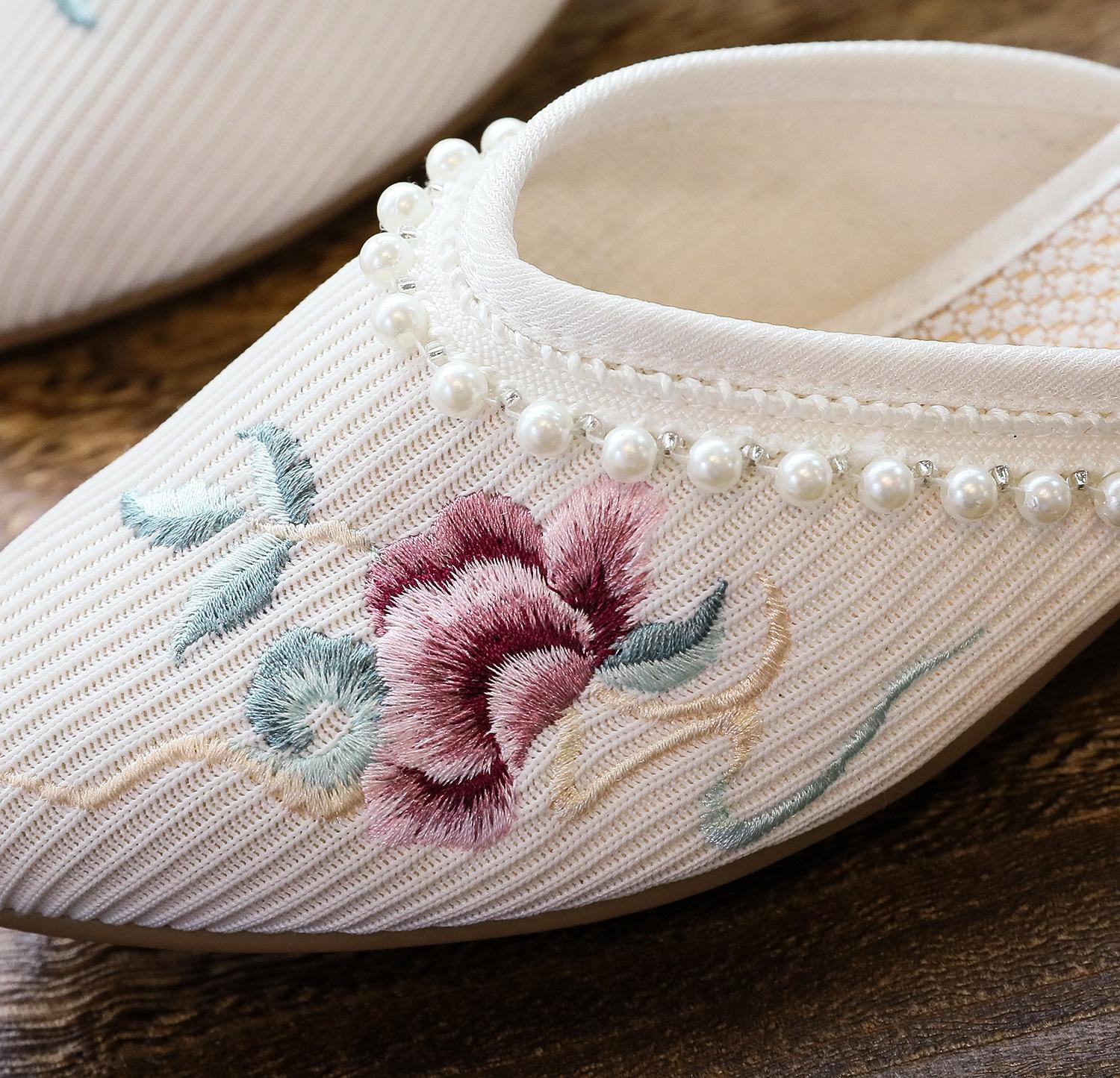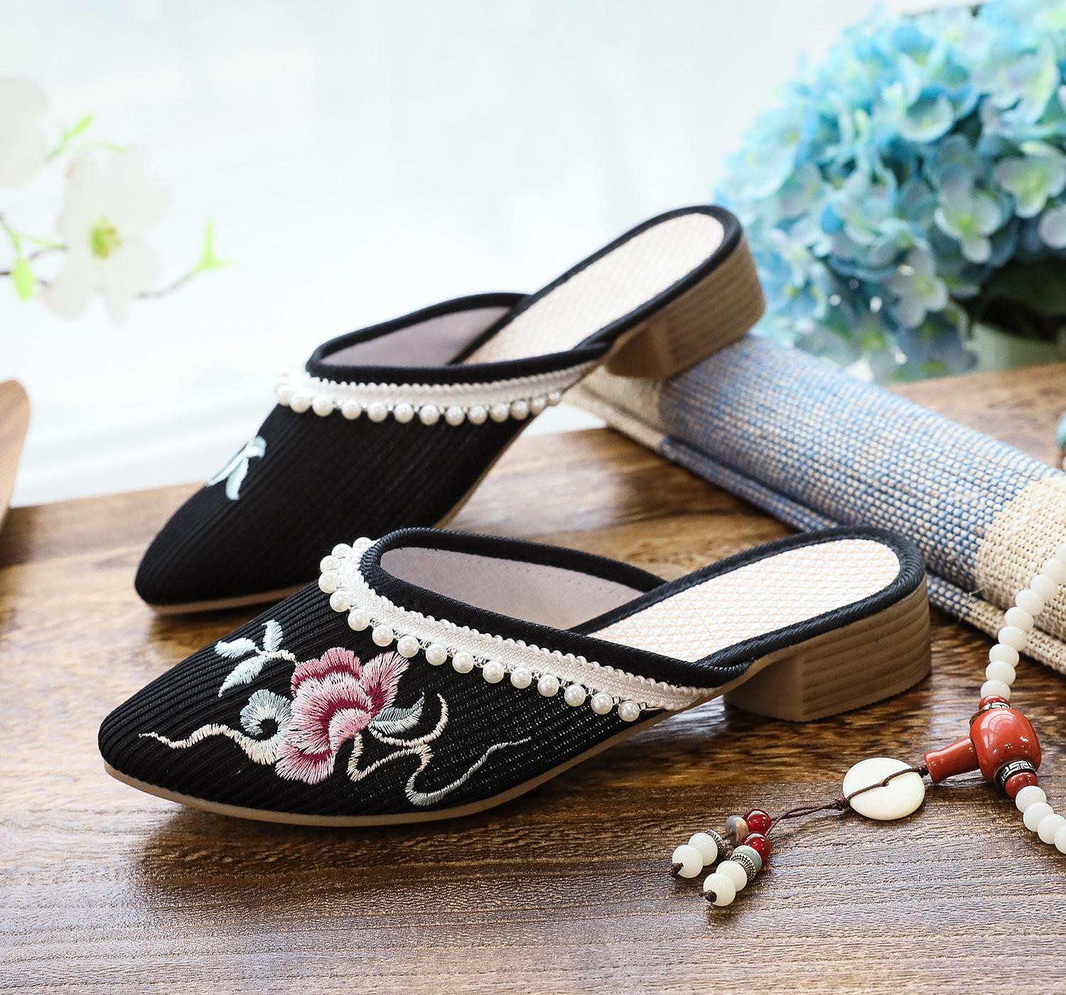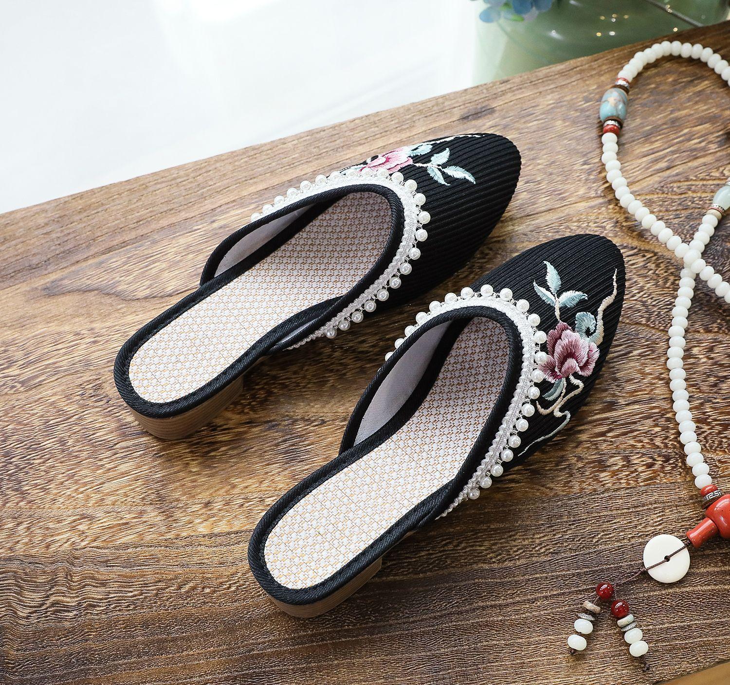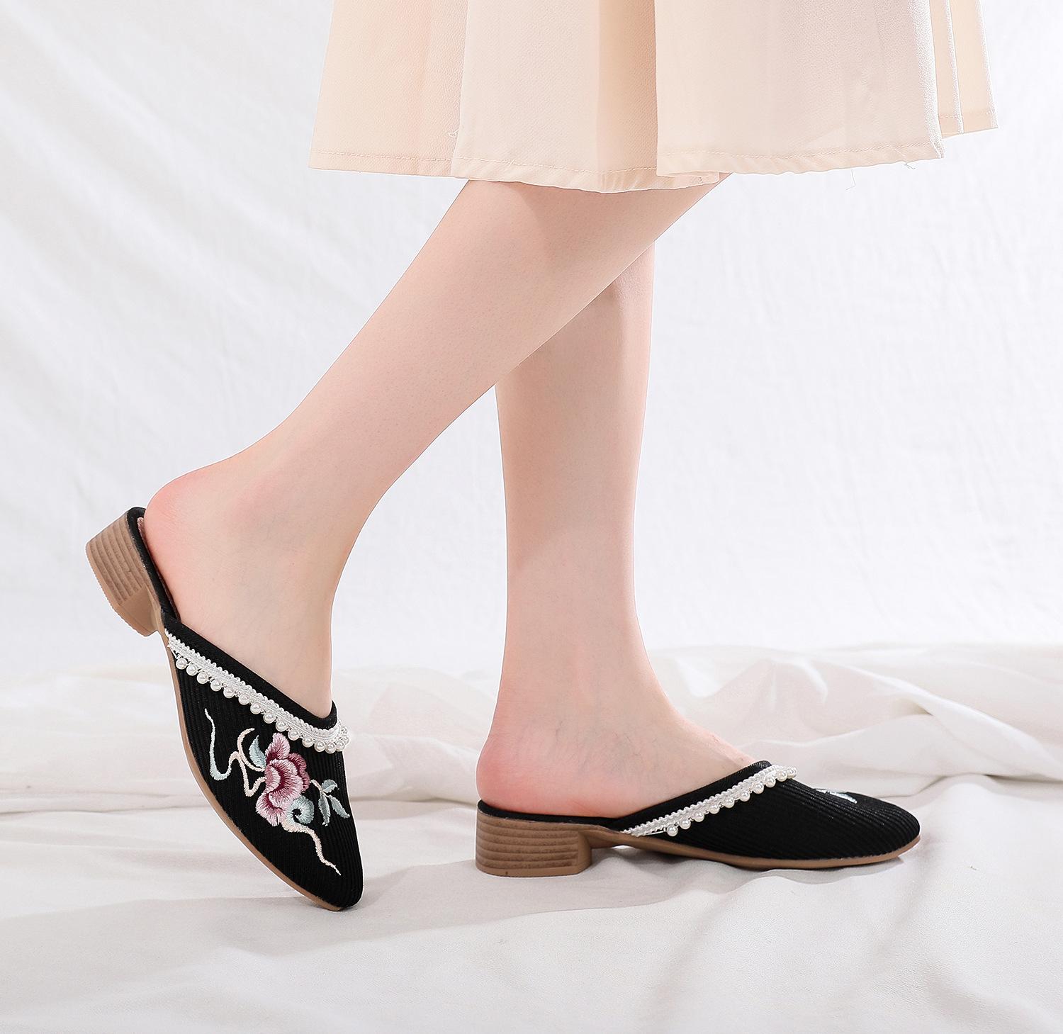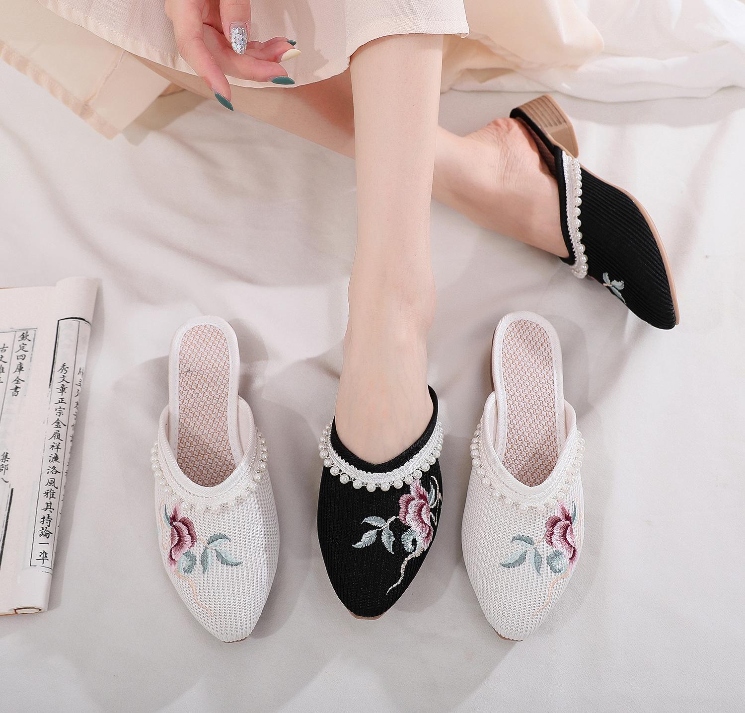 Zapatillas de tela bordadas para mujer, zapatos de moda, con puntera, para exteriores, de verano, nuevas