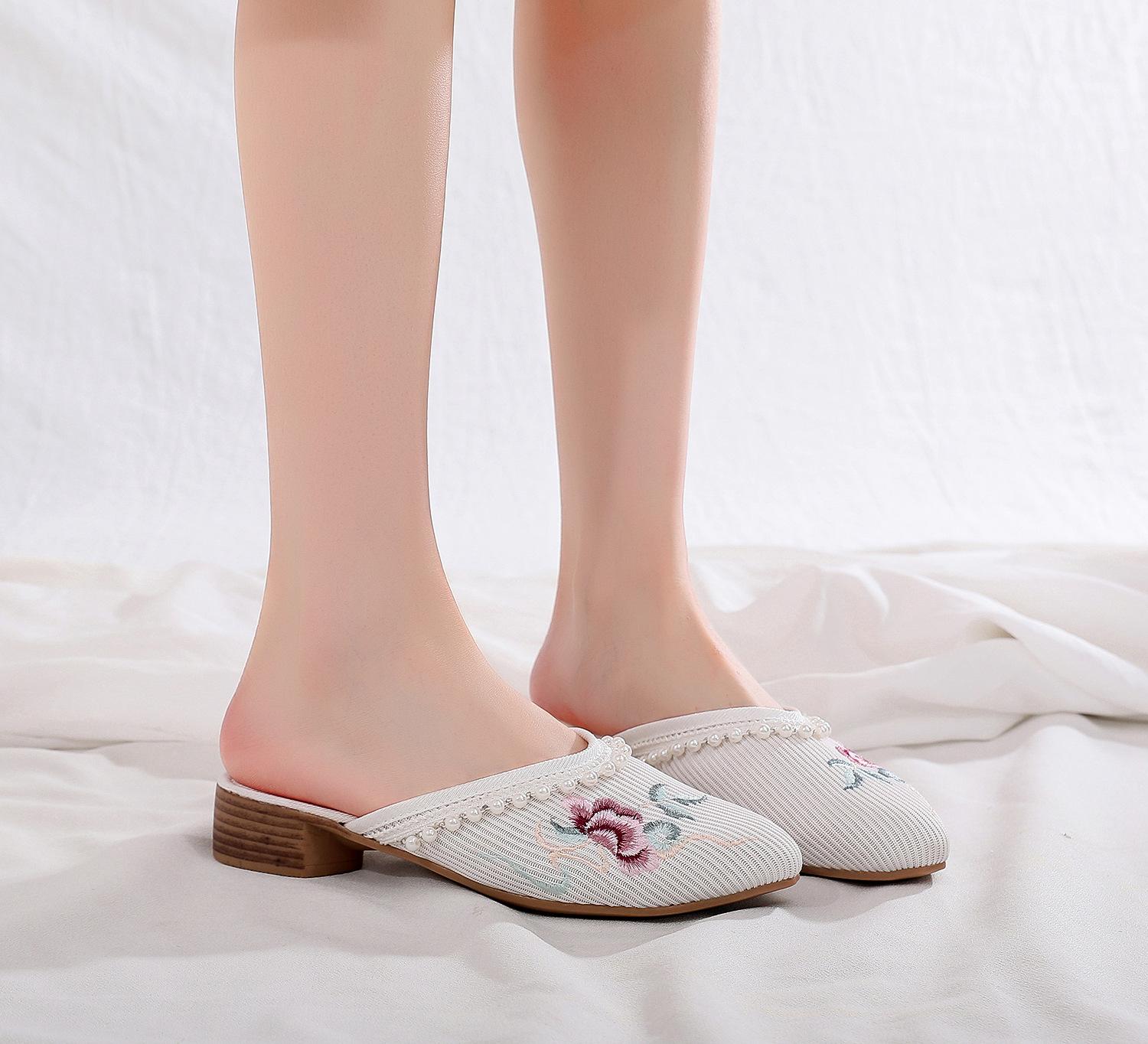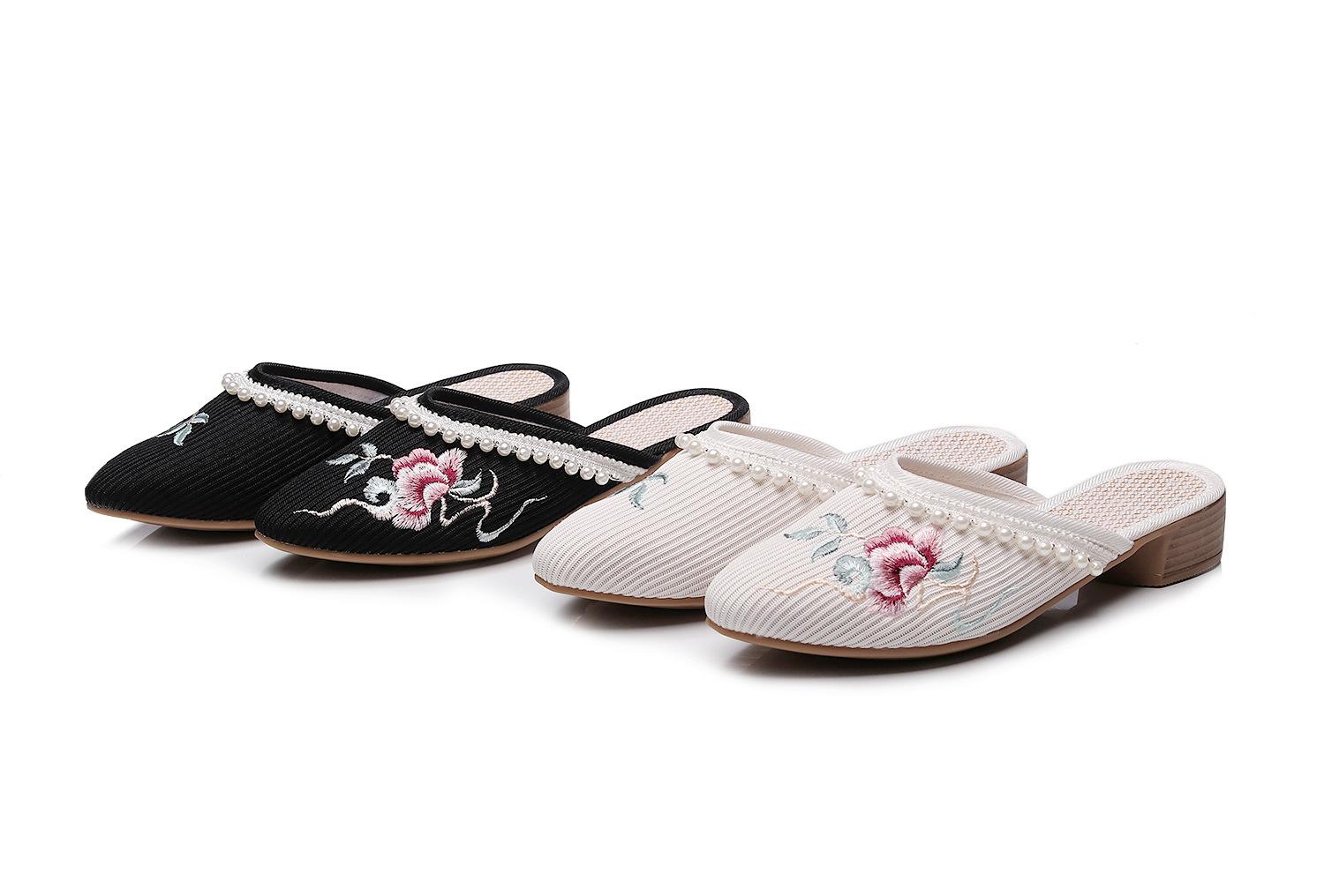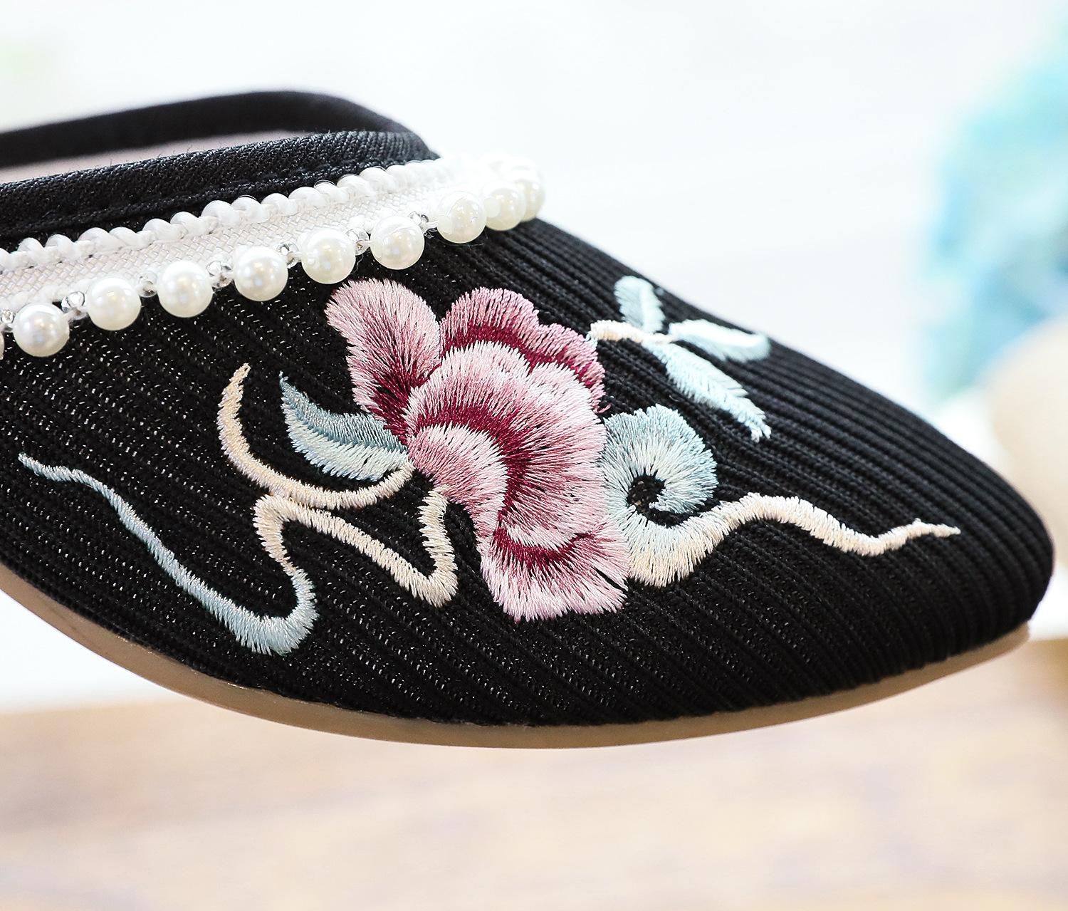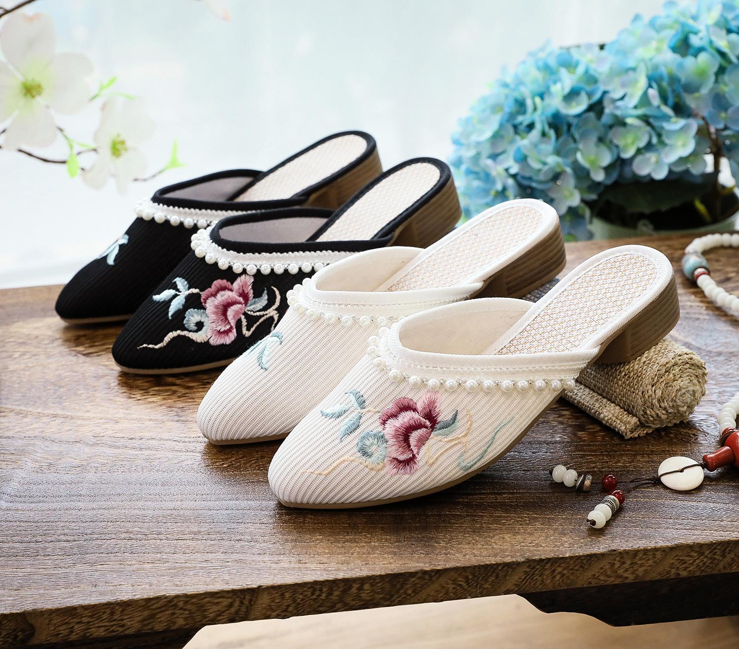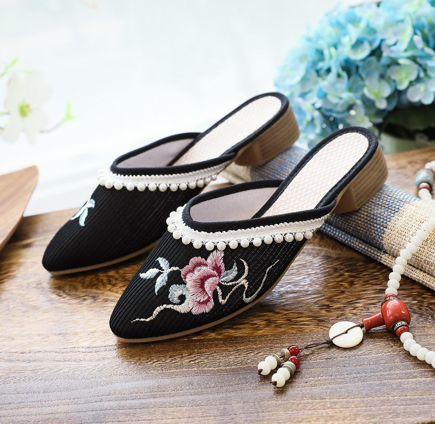 Zapatillas de tela bordadas para mujer, zapatos de moda, con puntera, para exteriores, de verano, nuevas
