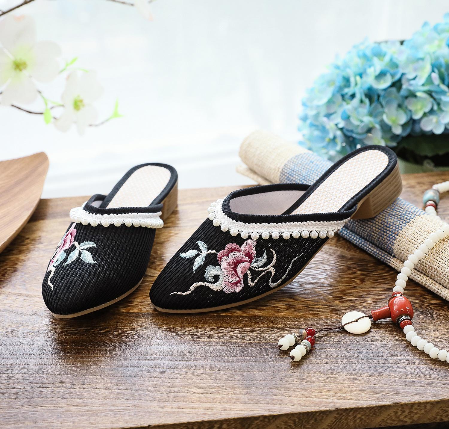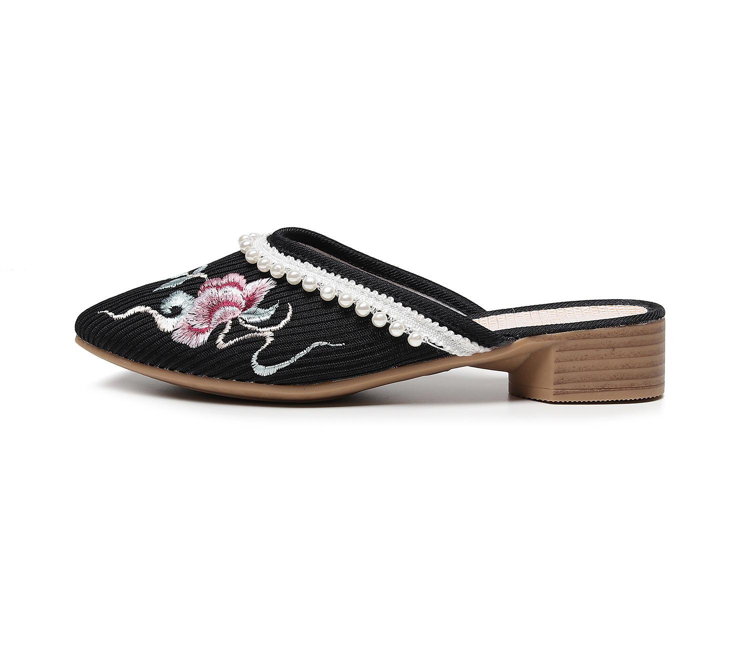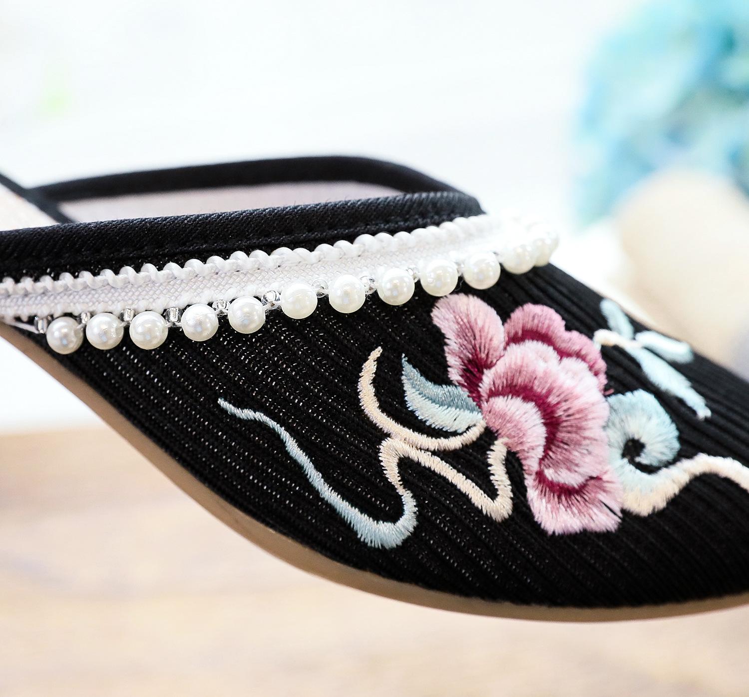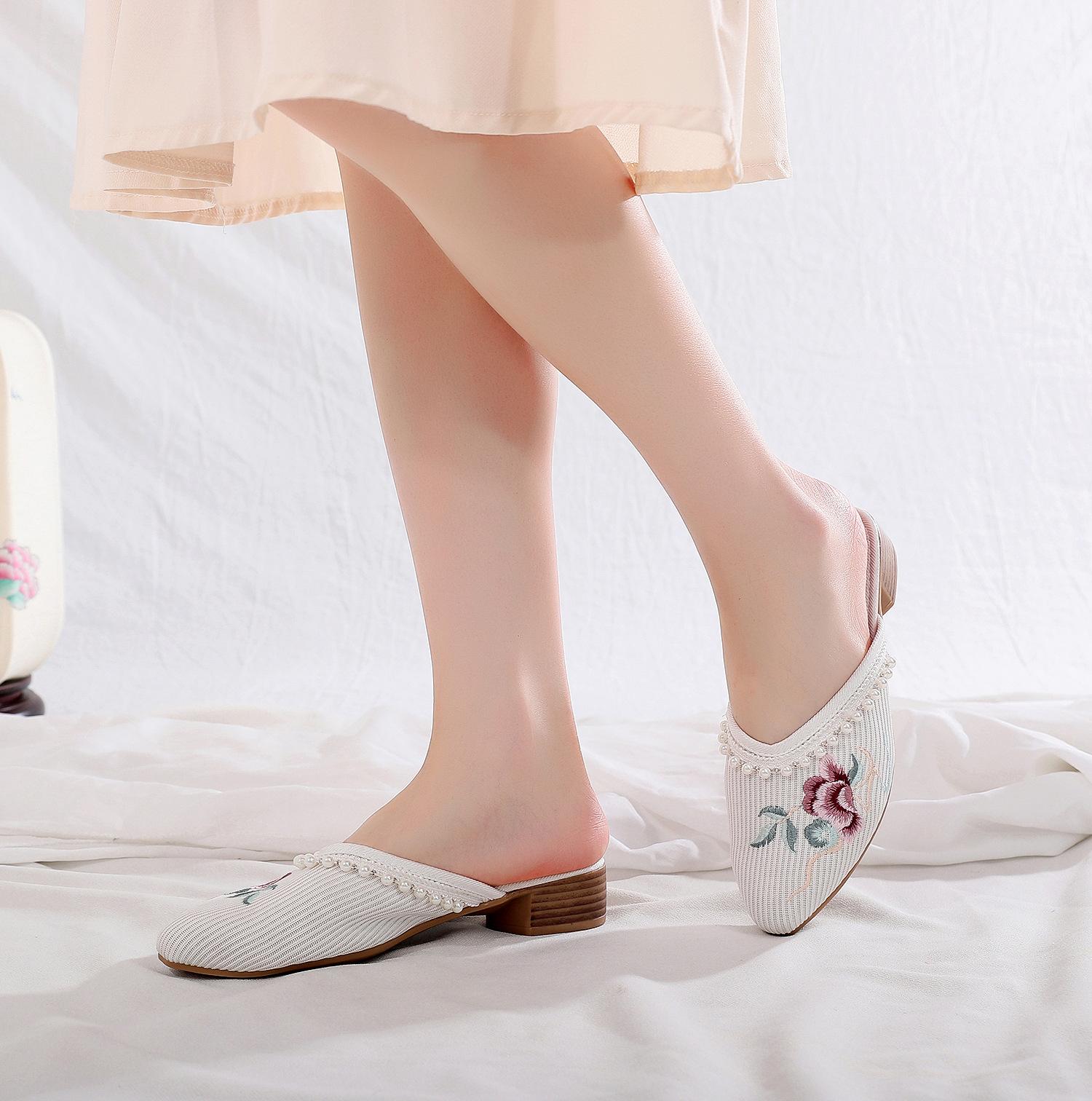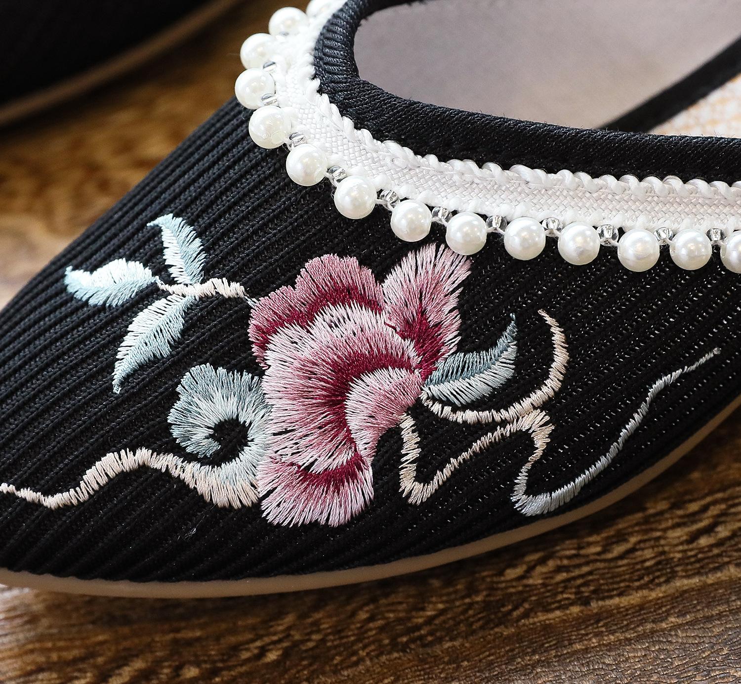 Zapatillas de tela bordadas para mujer, zapatos de moda, con puntera, para exteriores, de verano, nuevas