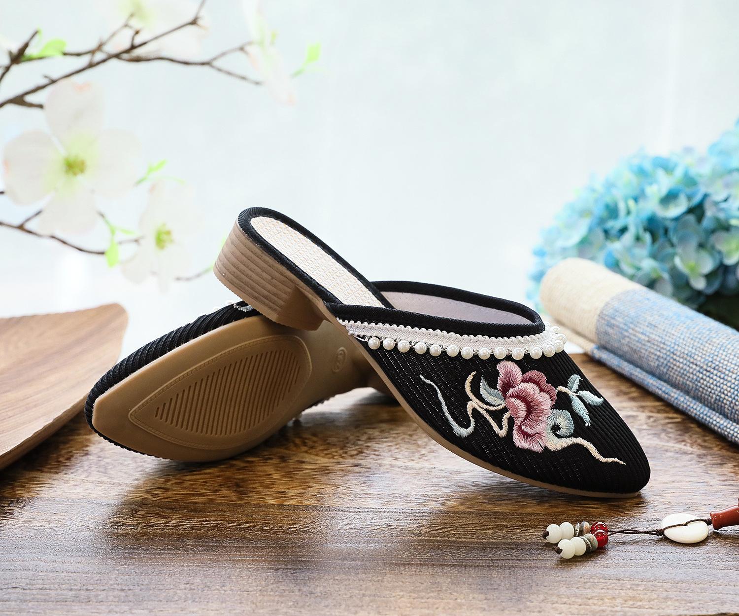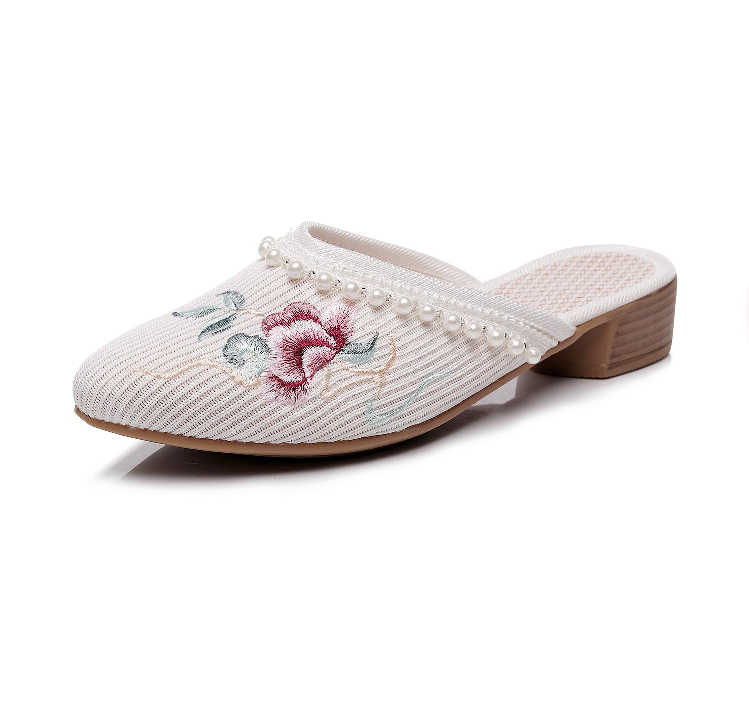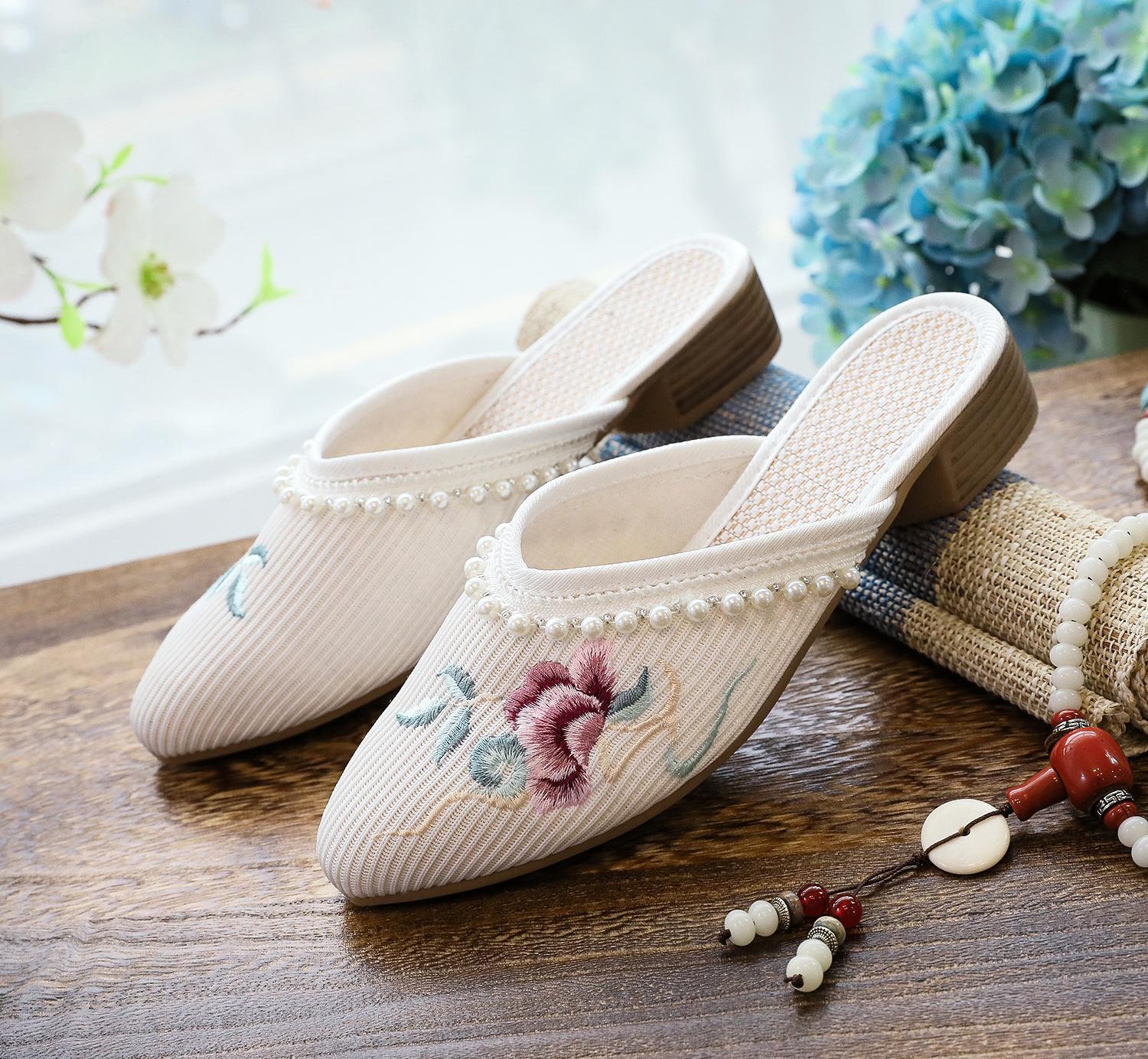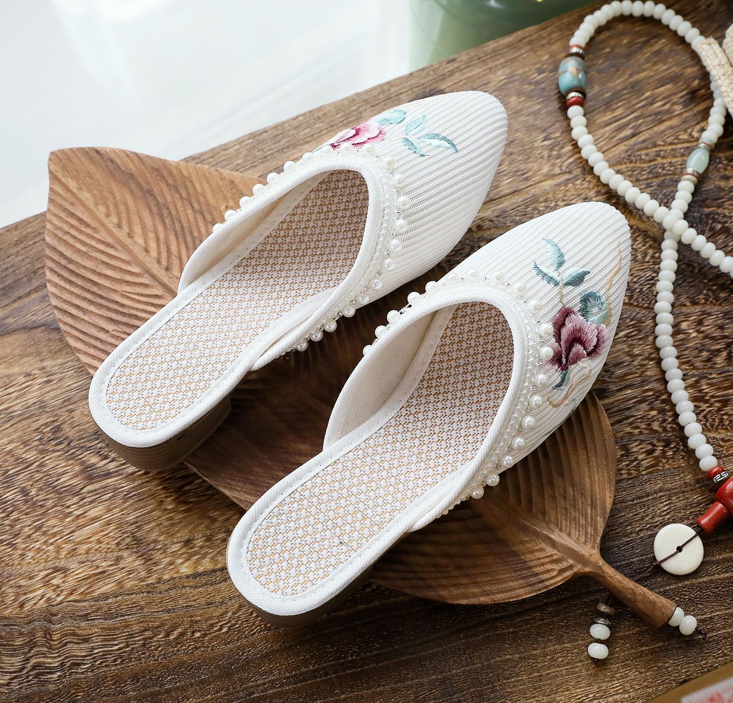 Zapatillas de tela bordadas para mujer, zapatos de moda, con puntera, para exteriores, de verano, nuevas