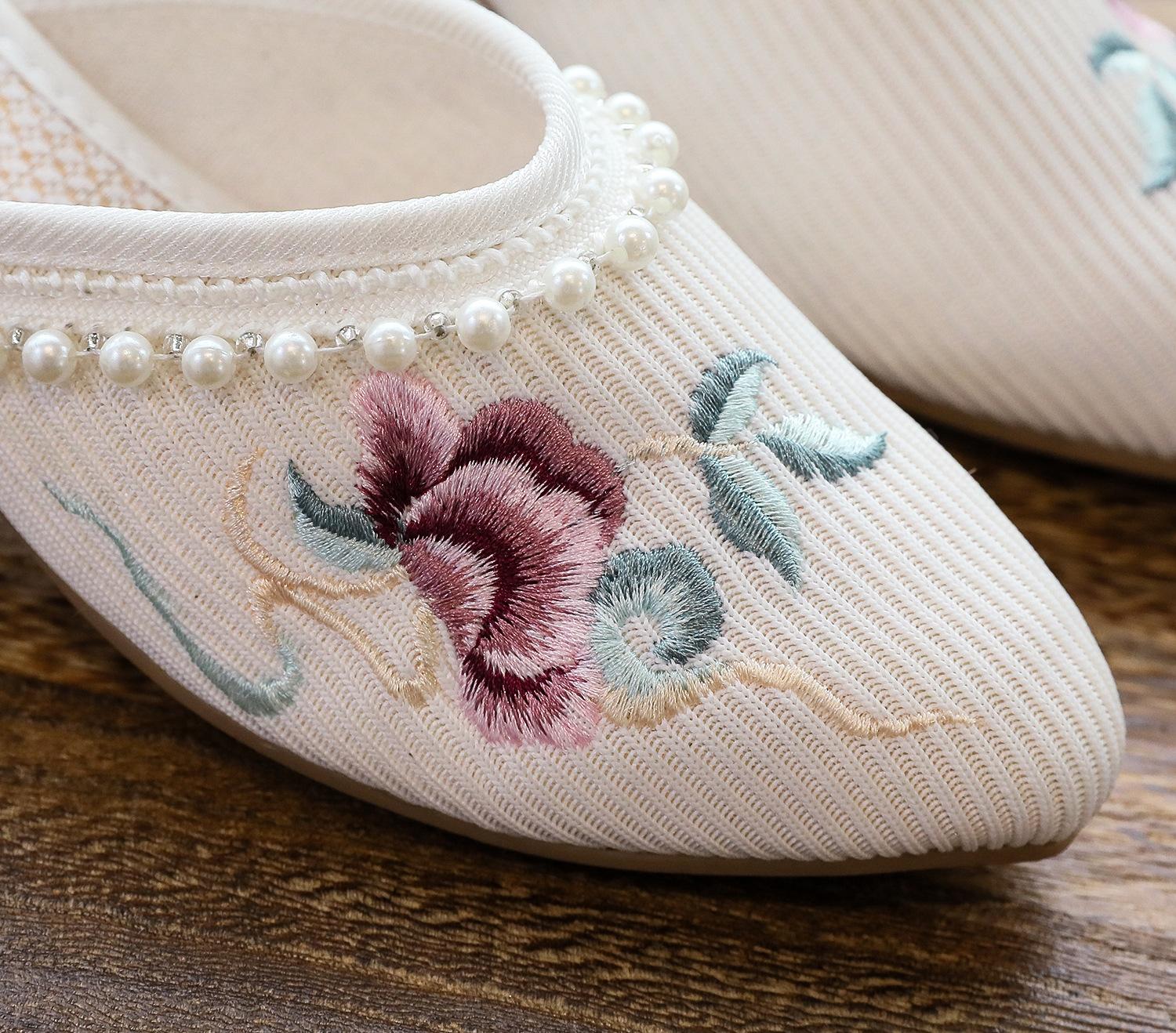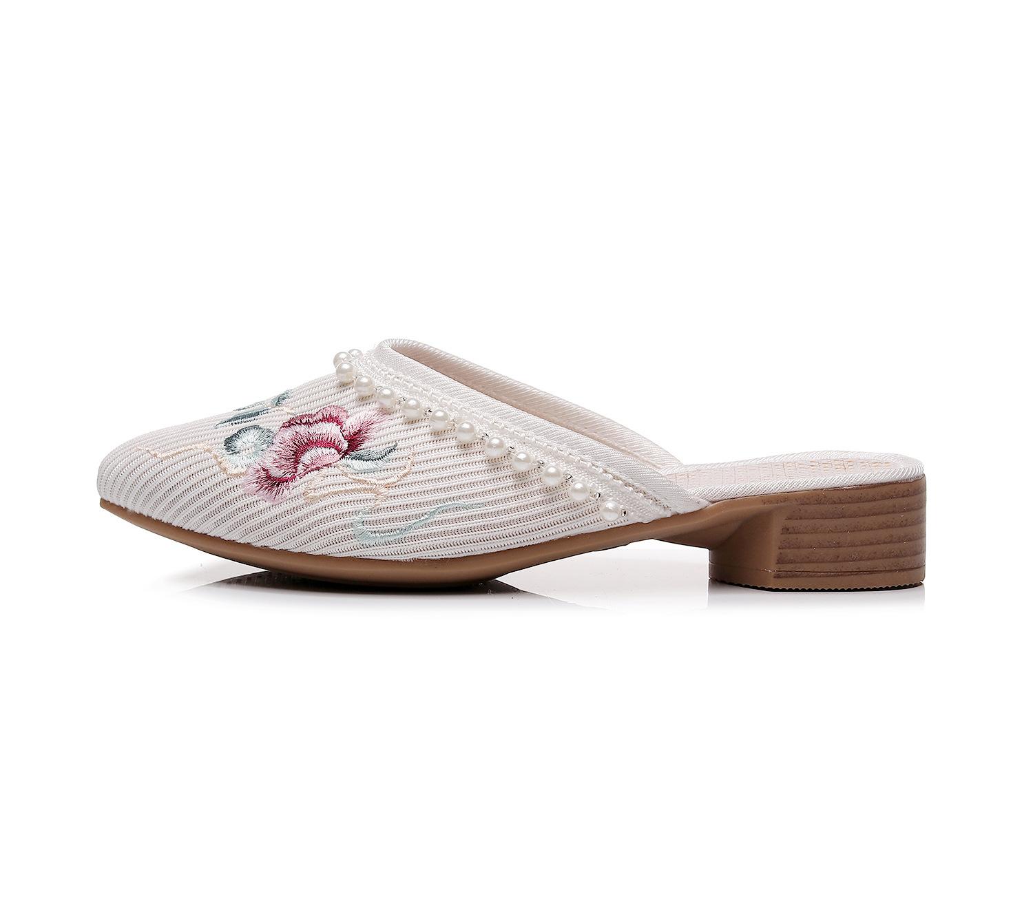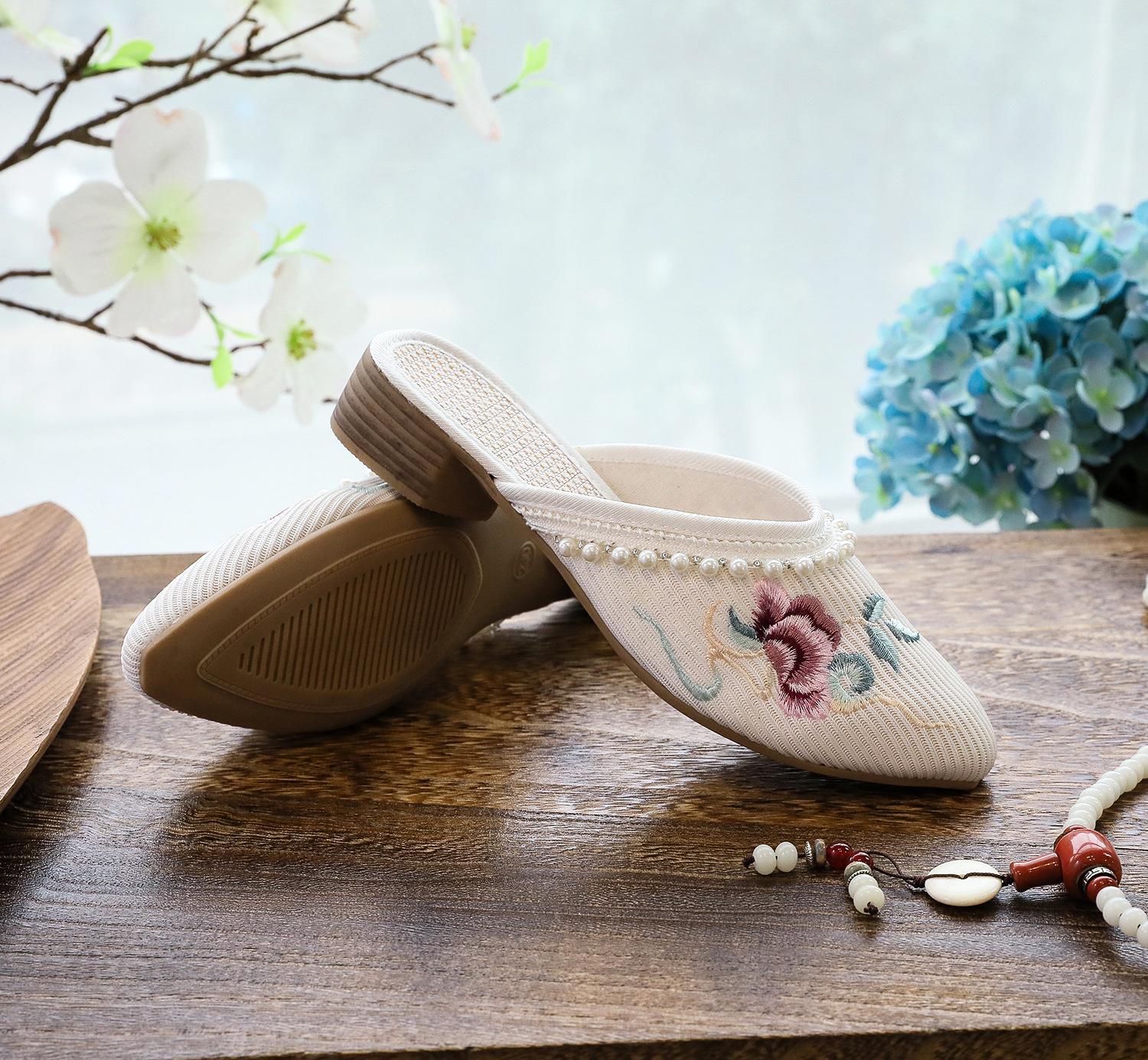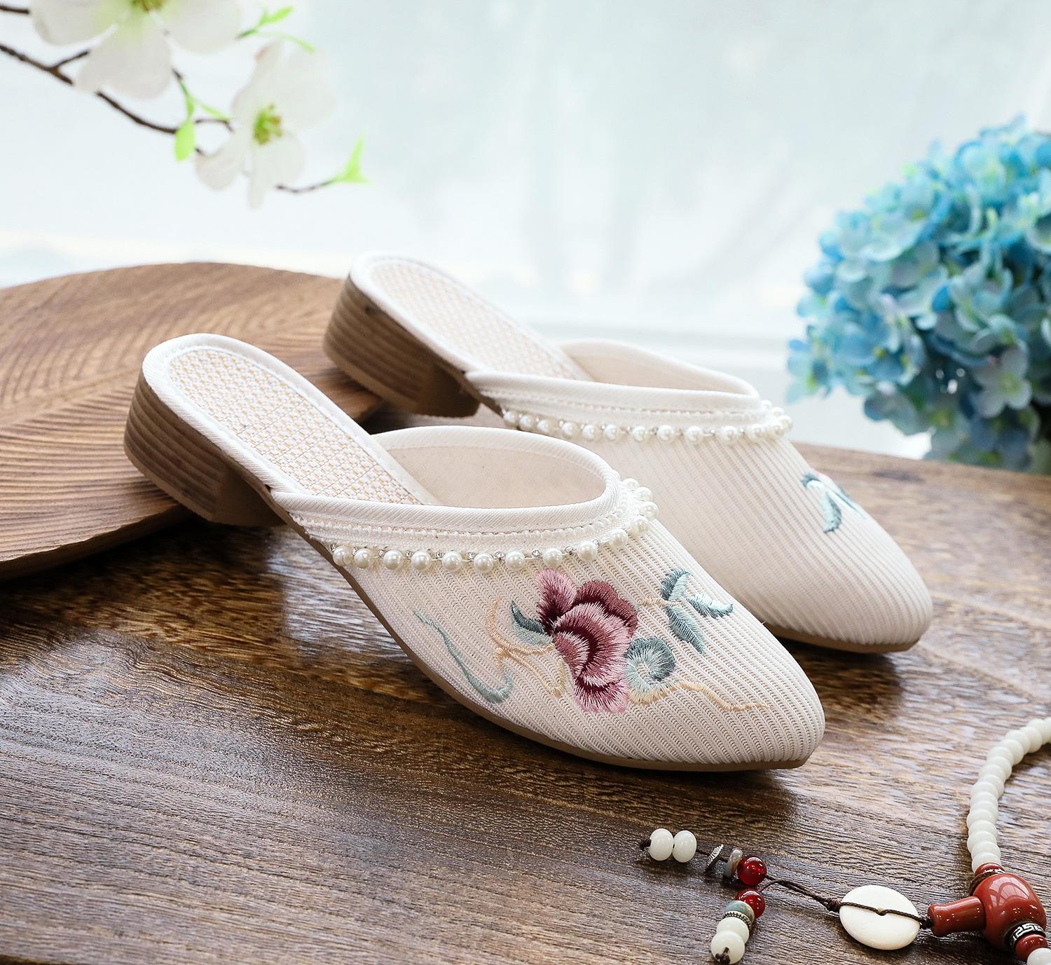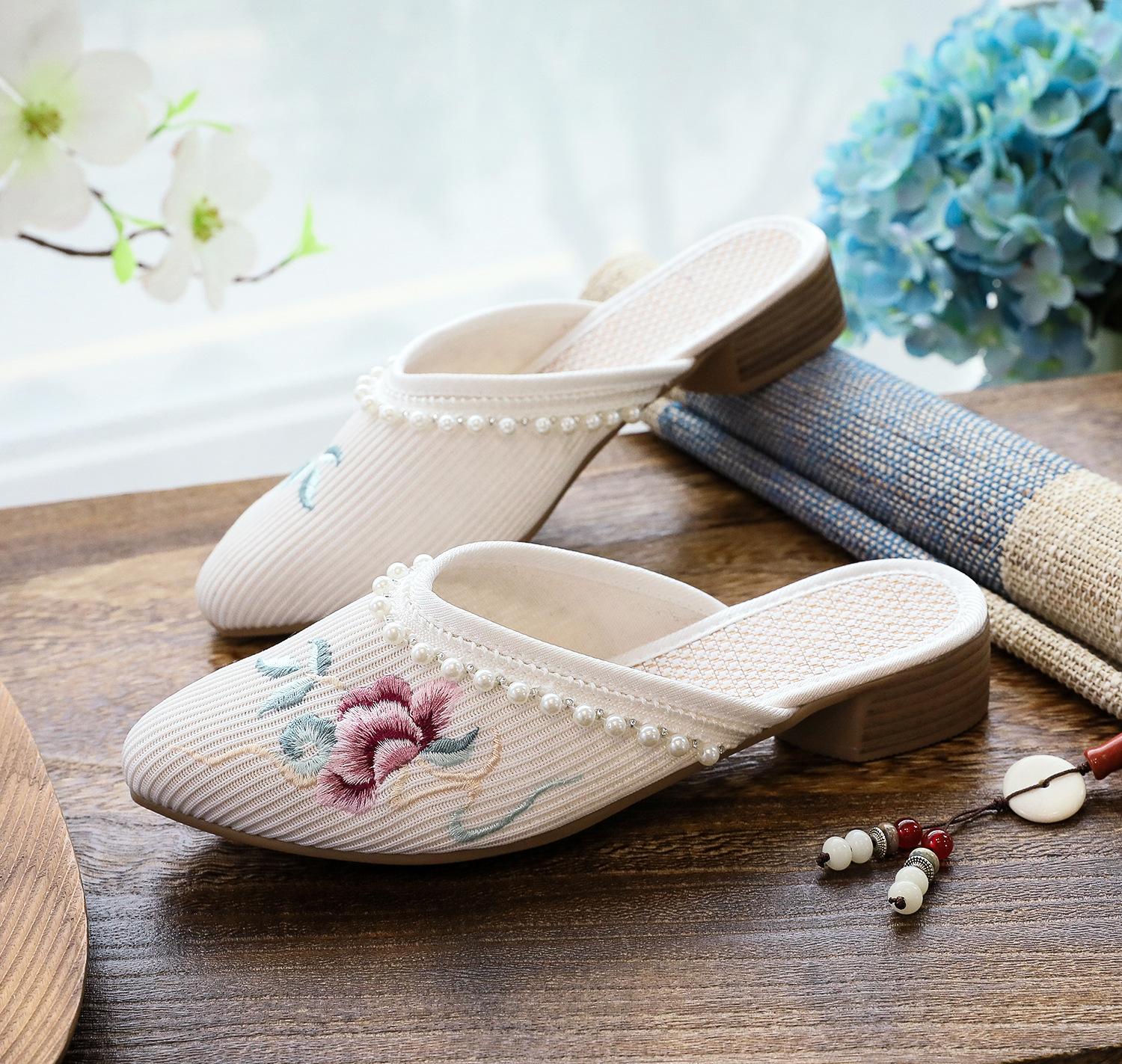 Zapatillas de tela bordadas para mujer, zapatos de moda, con puntera, para exteriores, de verano, nuevas