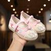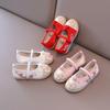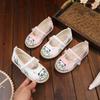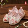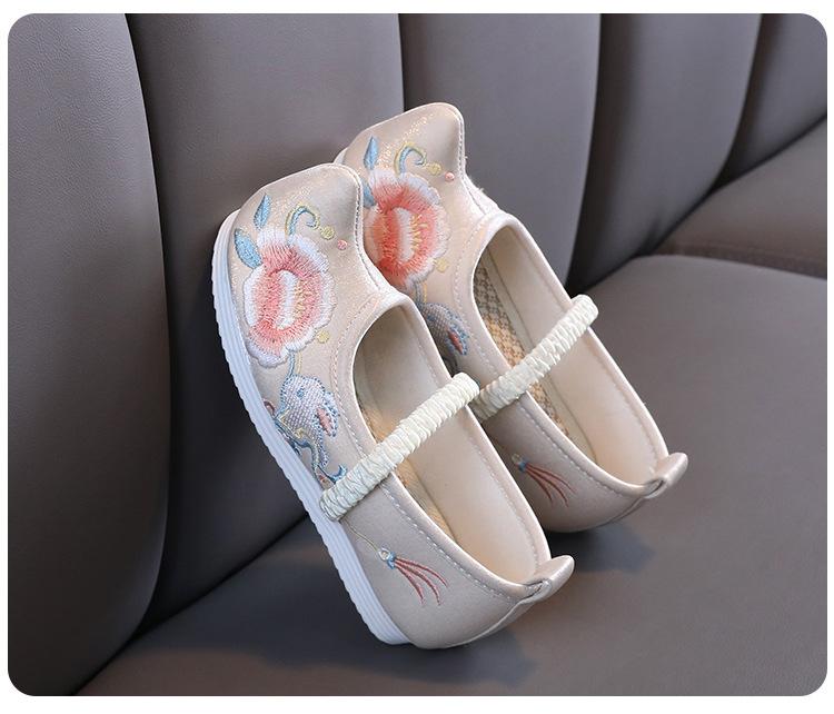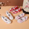 Zapatos bordados Hanfu, zapatos de tela para niñas, estilo étnico, suela de res, zapatos para niños, zapatos de baile de estilo chino, ropa antigua, zapatos bordados a mano