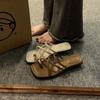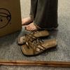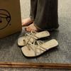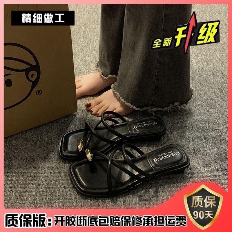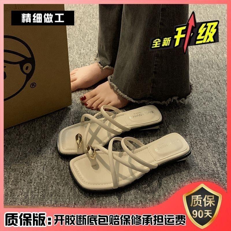 Zapatillas de exterior para mujer, verano 2023, nuevas, estilo hada, tacón grueso, moda, combinables, con puntera sencilla