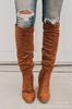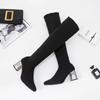 2021 Otoño e Invierno Nuevos Zapatos de Mujer de Comercio Exterior Botas Martins Botas de Gamuza para Mujer Tacón Grueso Tacón Alto Cremallera Lateral Botas por Encima de la Rodilla para Mujer