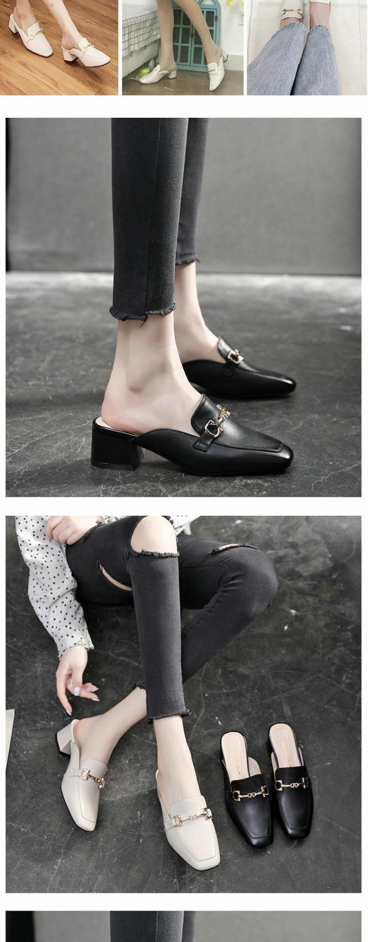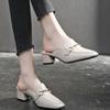 Pantuflas Baotou para Mujer para Exterior Tacón Grueso Combinan con Todo 2022 Verano Nuevo Antideslizantes Zapatos de Tacón Alto Cuadrado Sandalias de Moda