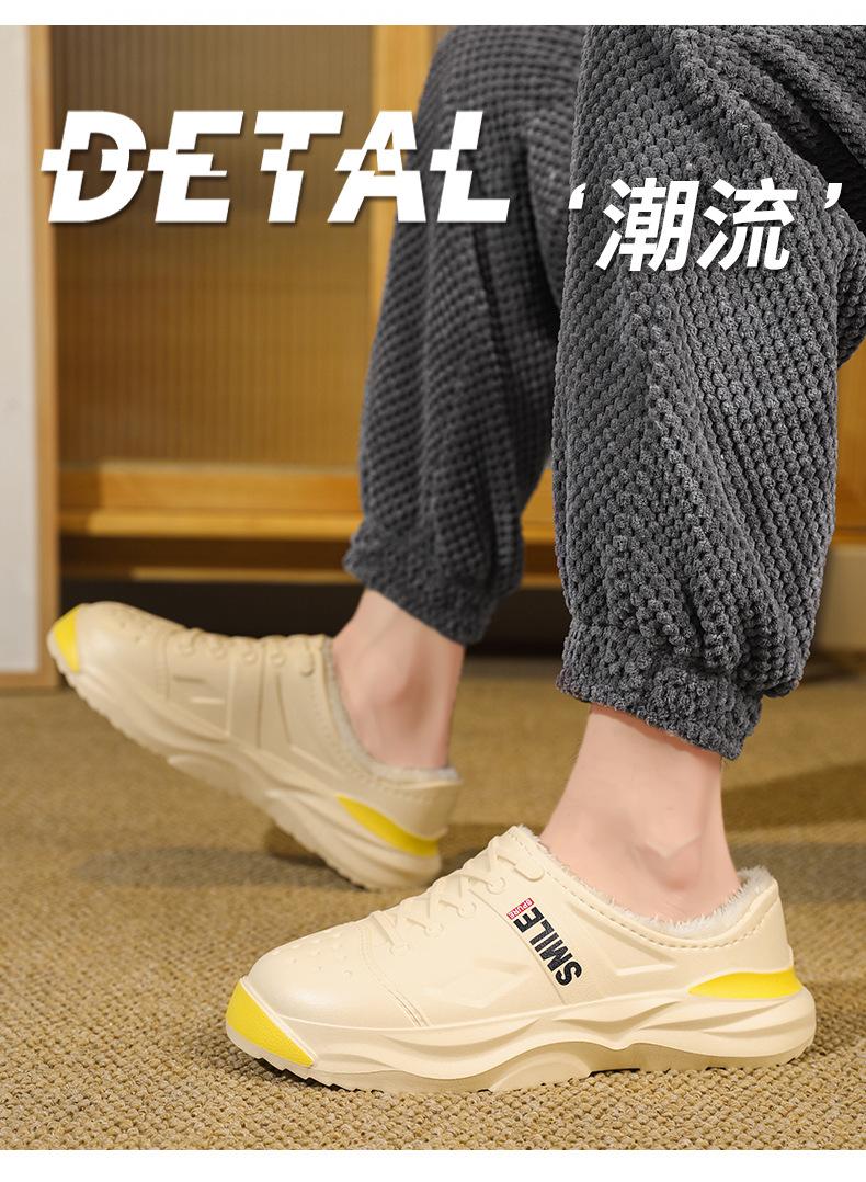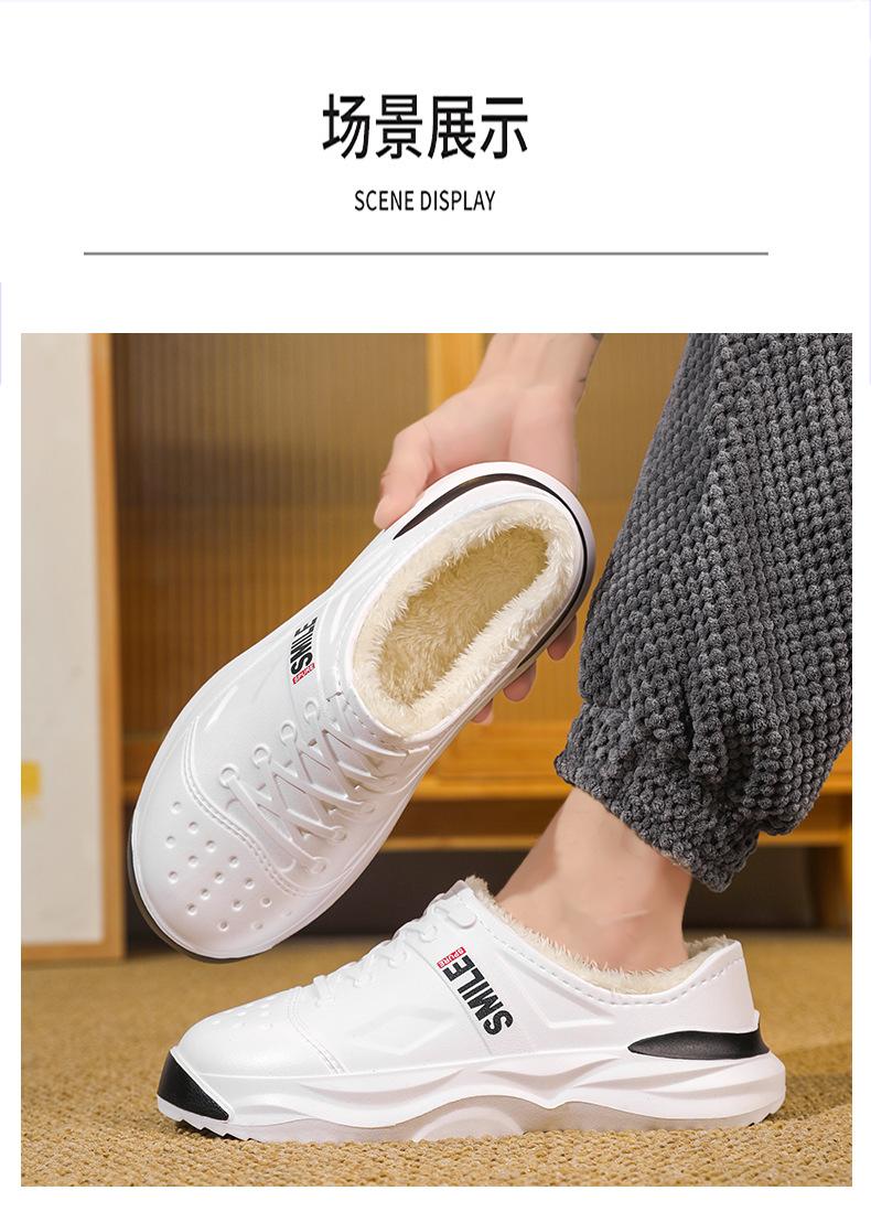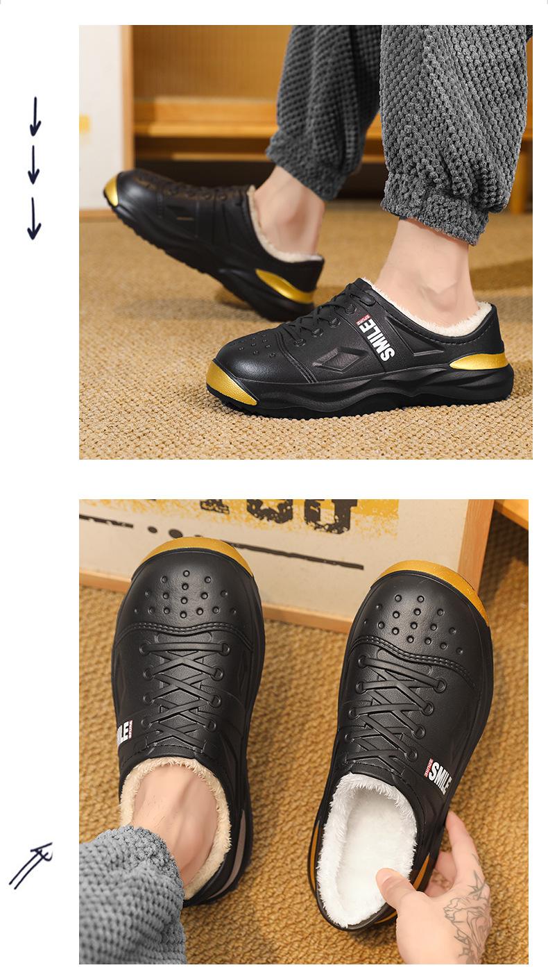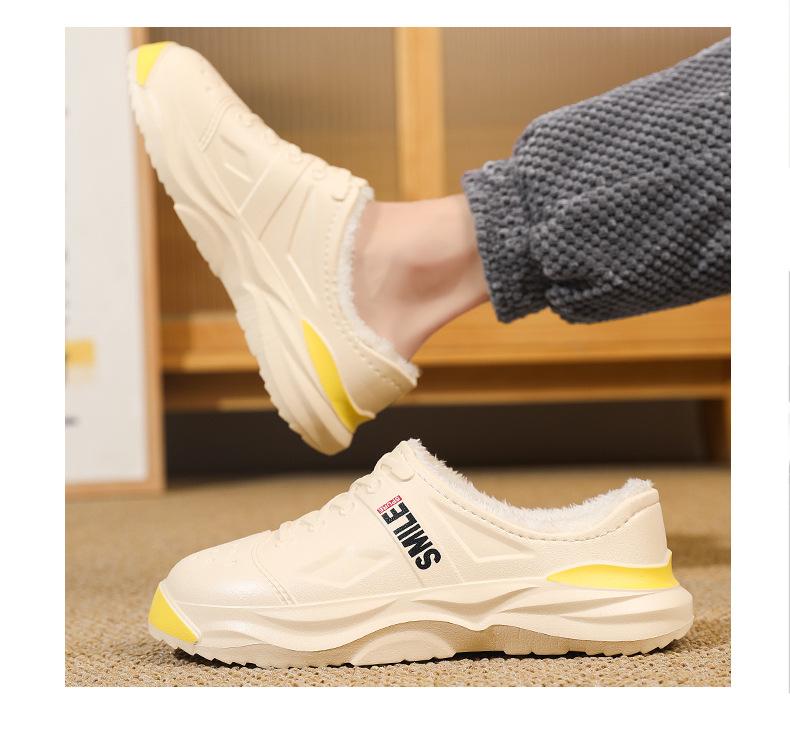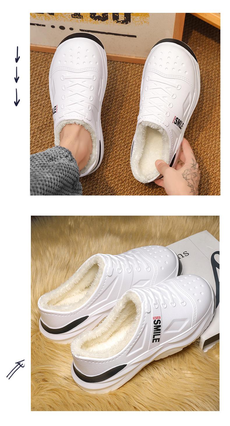 Pantuflas de algodón de invierno para hombre, invierno, para pareja, con talón tipo bolsa, sensación de mierda, forro polar, cálidas, impermeables, zapatos de casa para mujer, pantuflas de lana para interior