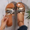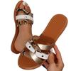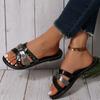 Sandalias de playa con punta redonda y remaches con estampado de serpiente transfronterizo para mujer, de talla grande, planas y a juego, de comercio exterior europeo y americano