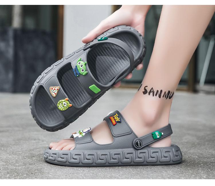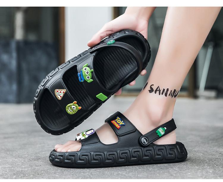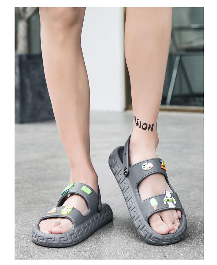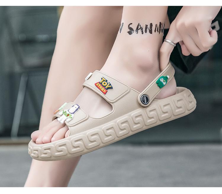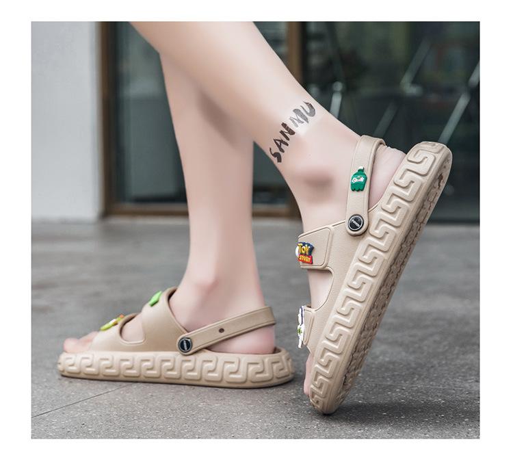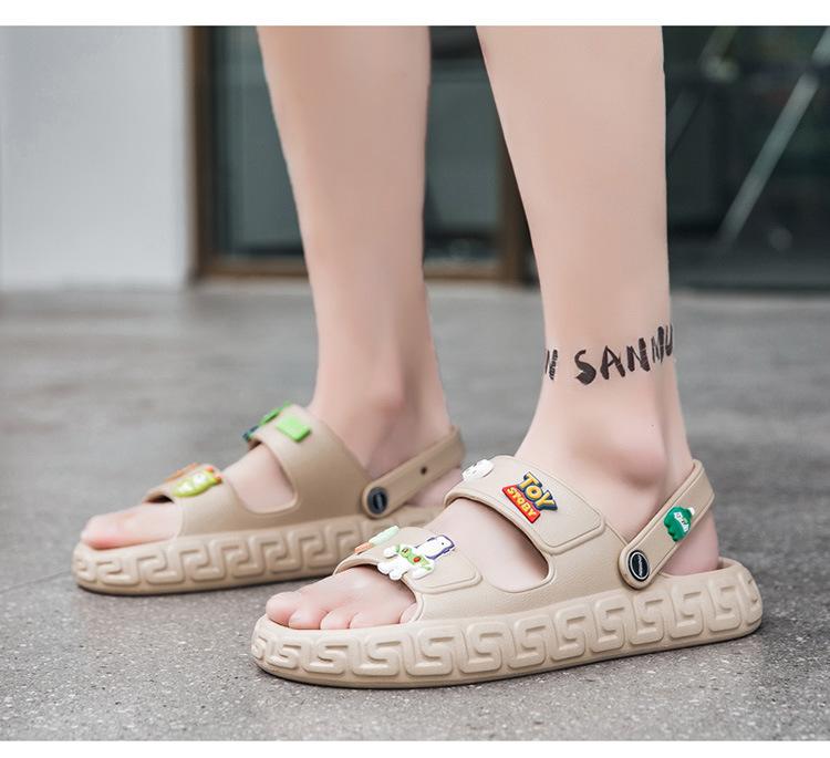 Amantes de verano transfronterizos pisan excrementos sintiendo EVA de una palabra arrastre exterior Zapatillas de suela gruesa de doble uso zapatos de playa ligeros para el cabello