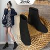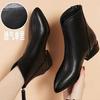 Mocasines de punta cuadrada para mujer, de otoño e invierno, con forro polar, tacón medio grueso, boca profunda, de felpa de una sola capa, 2023