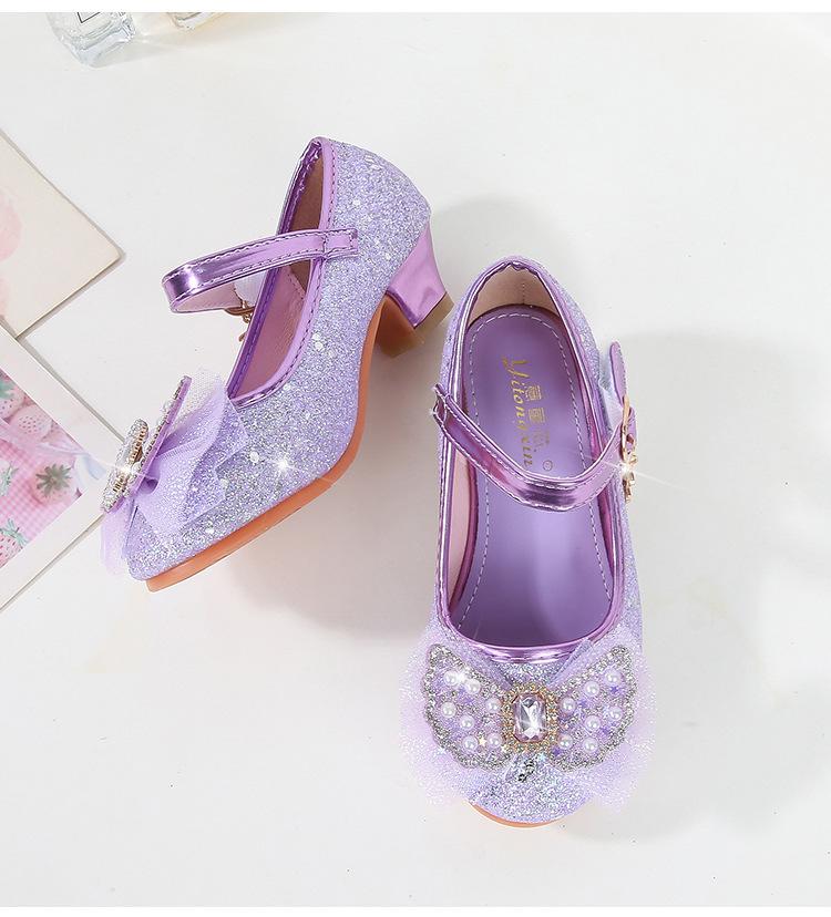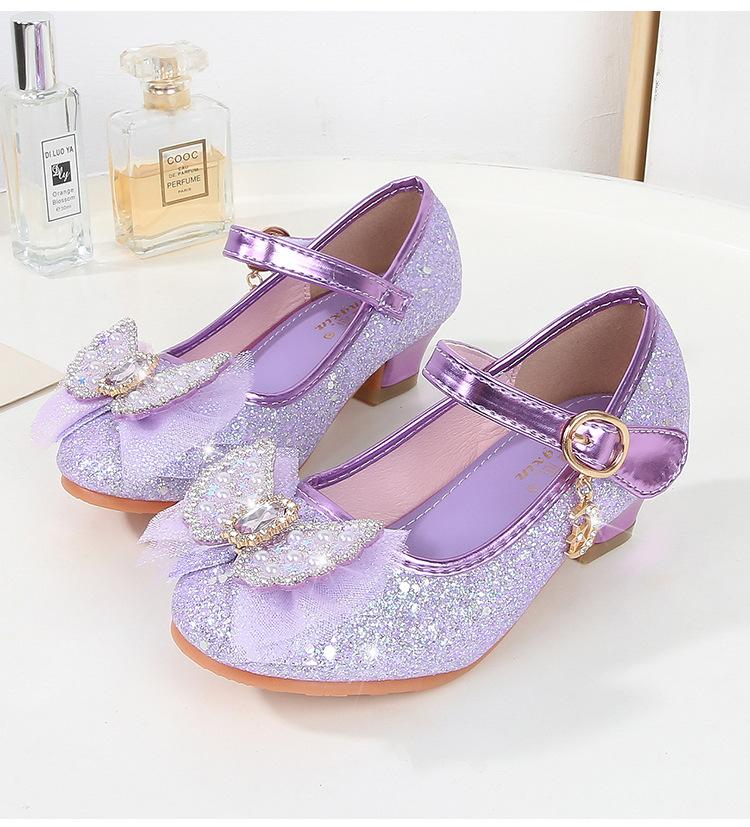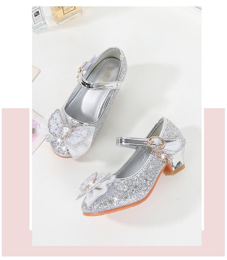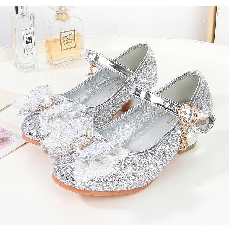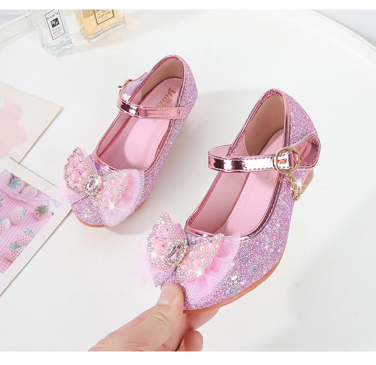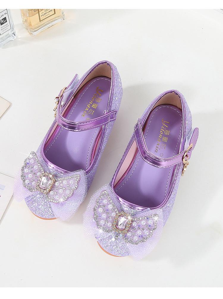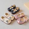 Tacones Altos para Niños Primavera y Otoño Nuevos Zapatos de Princesa para Niñas Zapatos Planos con Lazo de Pedrería para Niñitas Zapatos de Cuero para Bebé