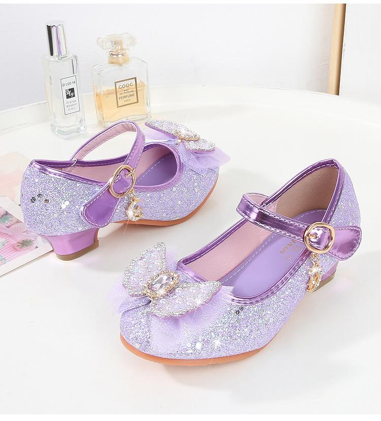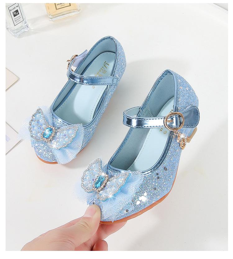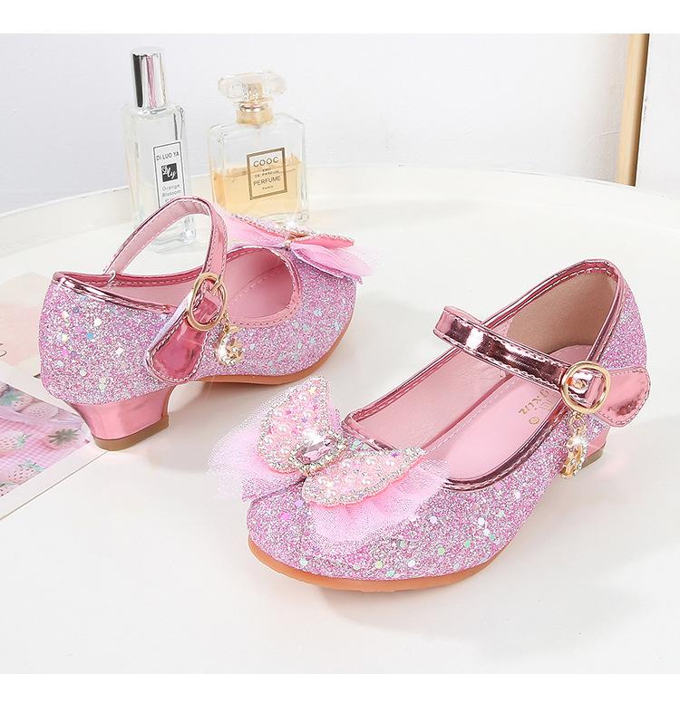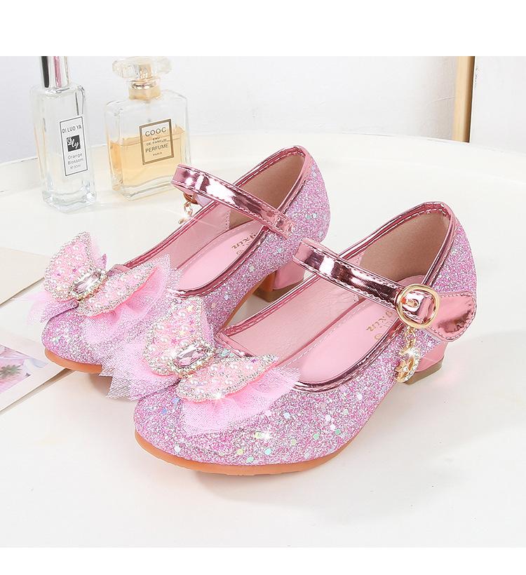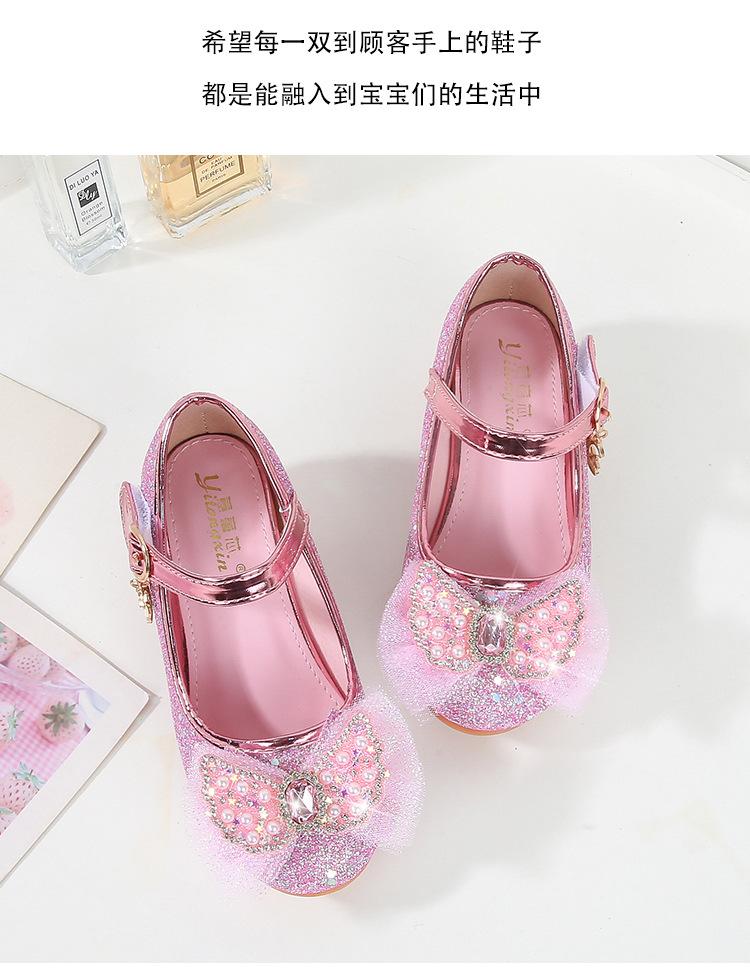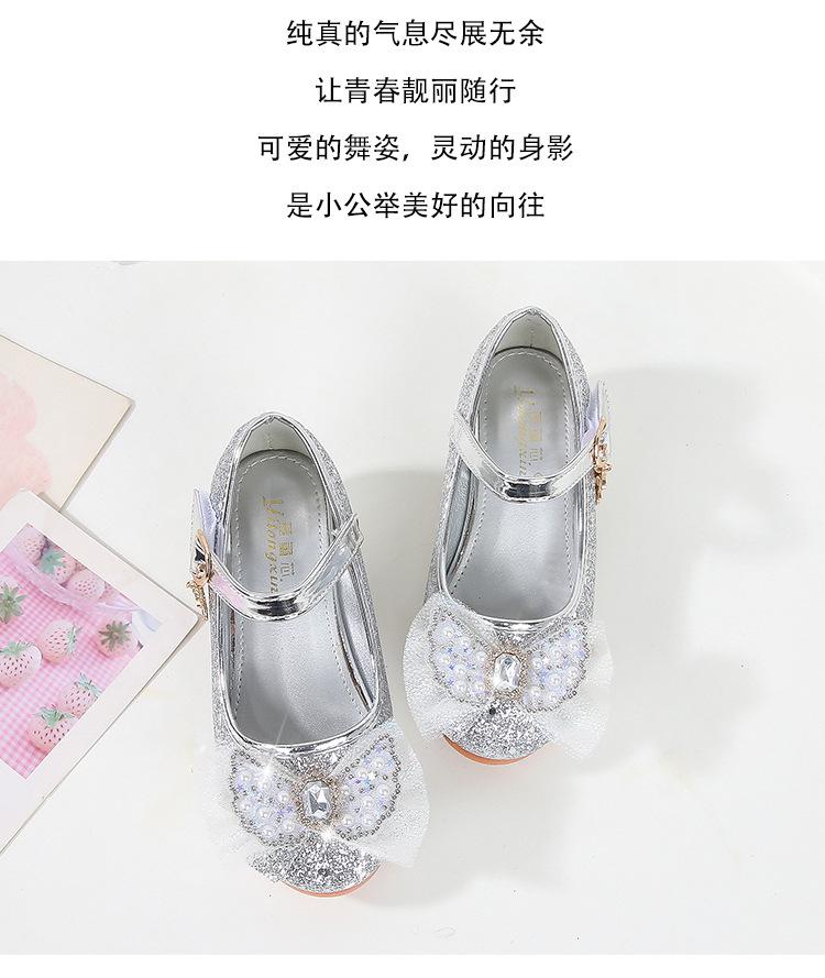 Tacones Altos para Niños Primavera y Otoño Nuevos Zapatos de Princesa para Niñas Zapatos Planos con Lazo de Pedrería para Niñitas Zapatos de Cuero para Bebé