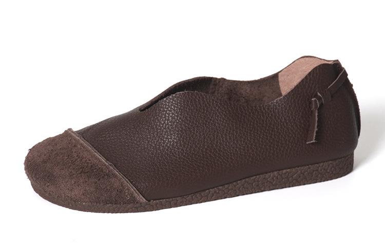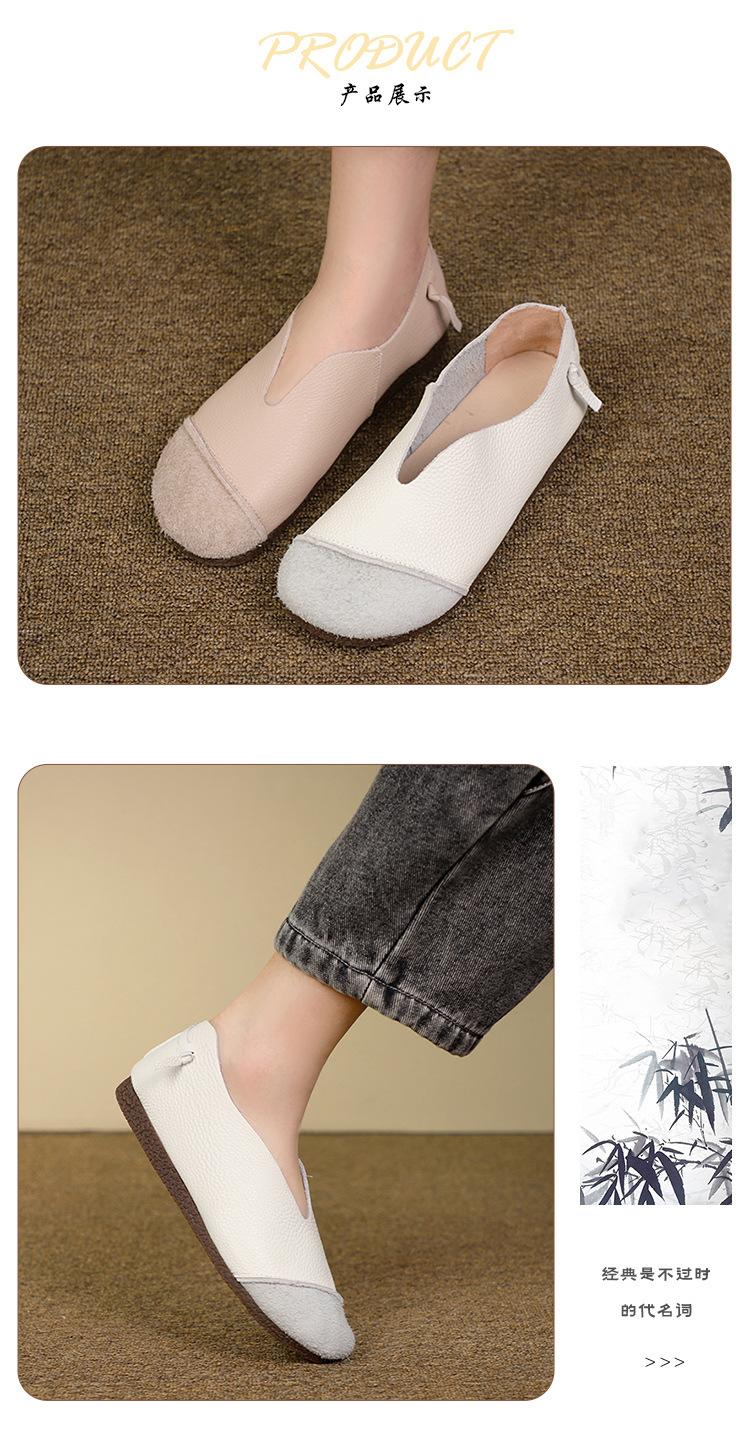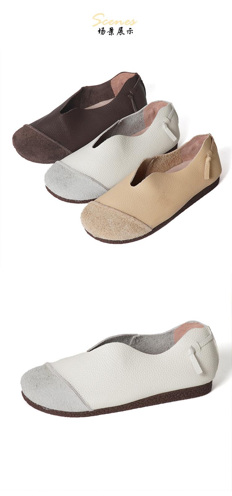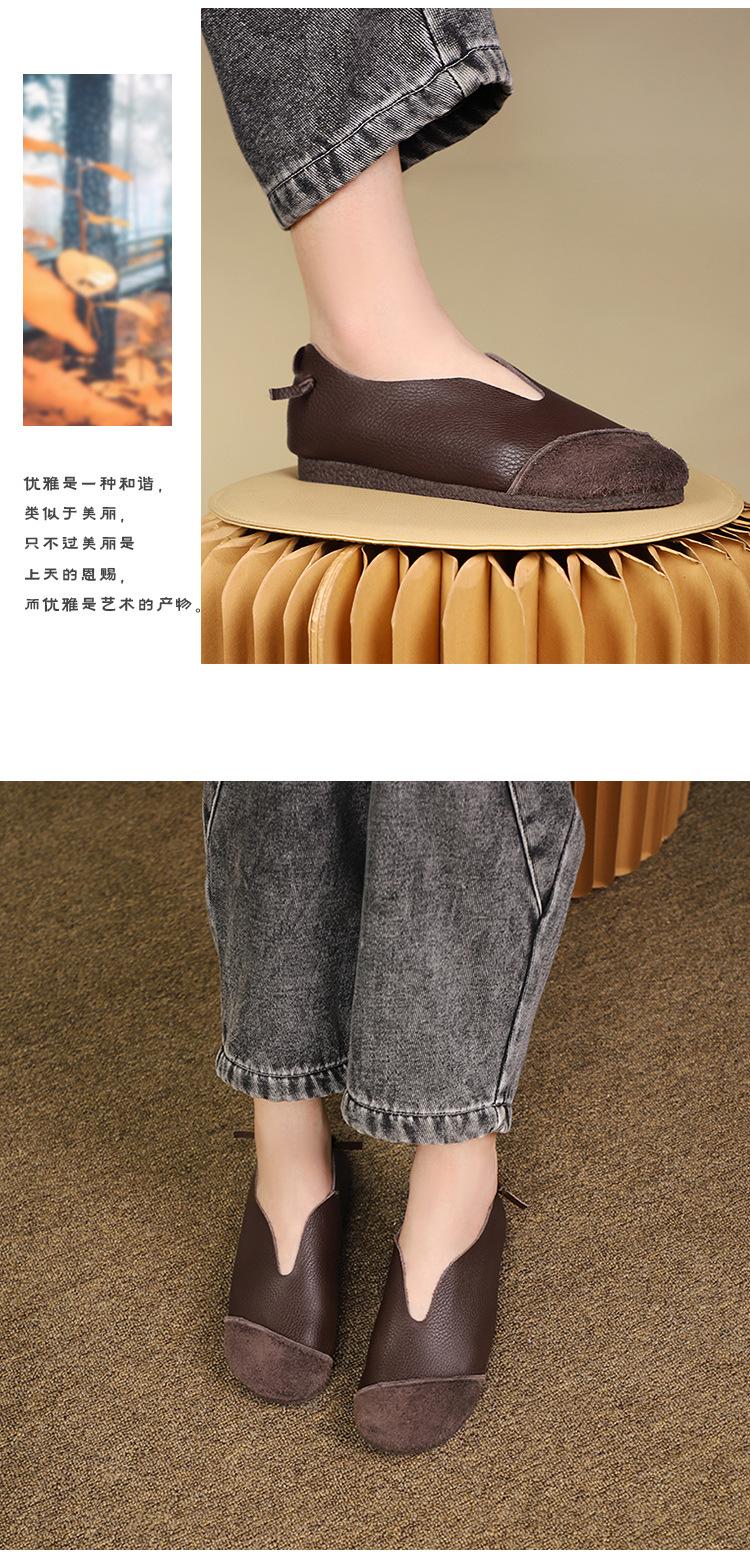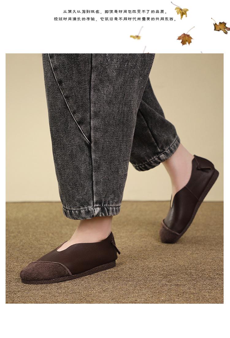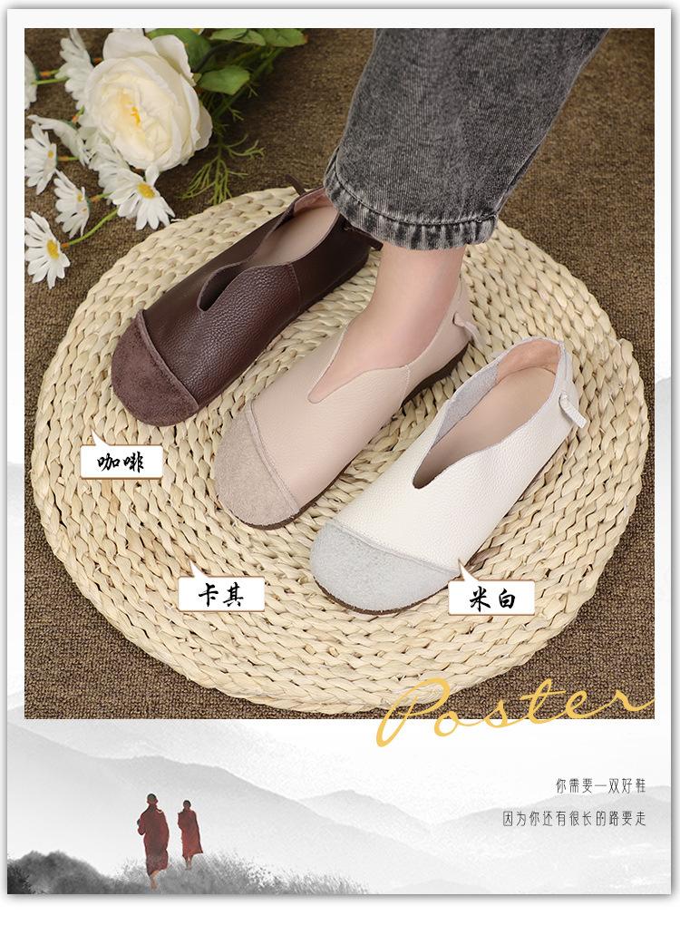 Zapatos de Cuero Genuino Huizumei para Mujer, Zapatos Planos Estilo Retro Bosque, Zapatos Casuales Transpirables Lazy Versátiles Fabricante Venta al por Mayor