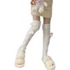 Calcetines hasta la rodilla de otoño e invierno, medias de punto con bolas de pelo, calcetines de diamantes, otoño e invierno, cálidos y lindos calcetines de pelo blanco JK